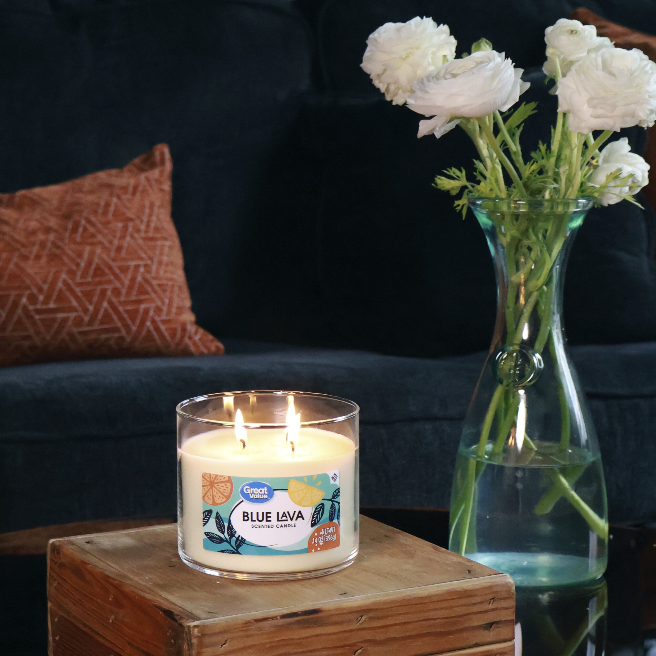 • Great Value Scented Candle, 3 Wick, Blue Lava, 14.5 oz