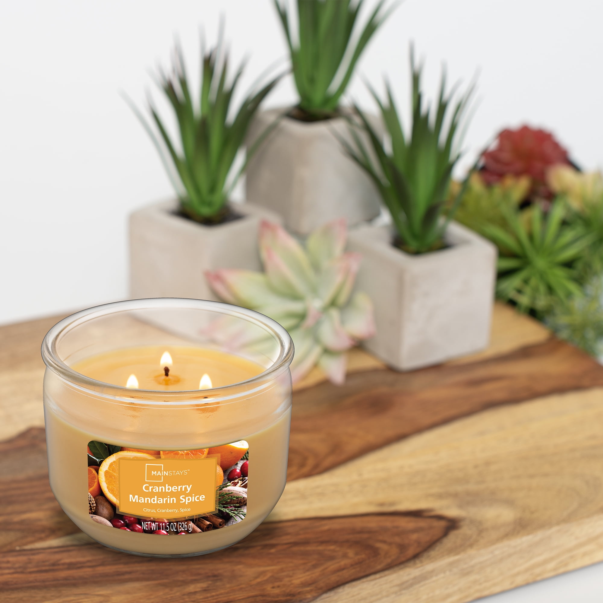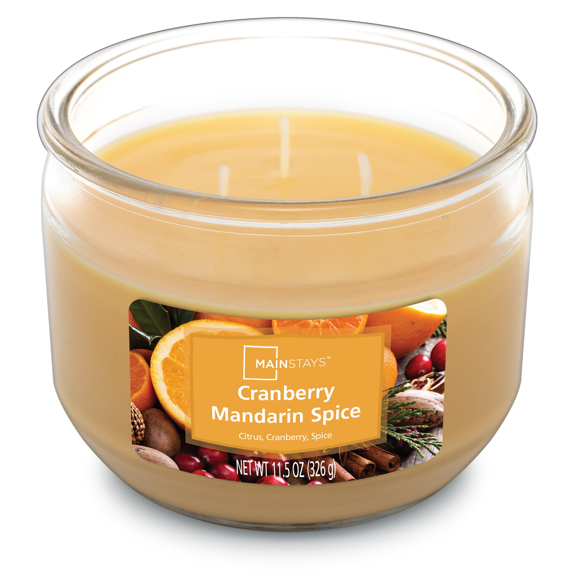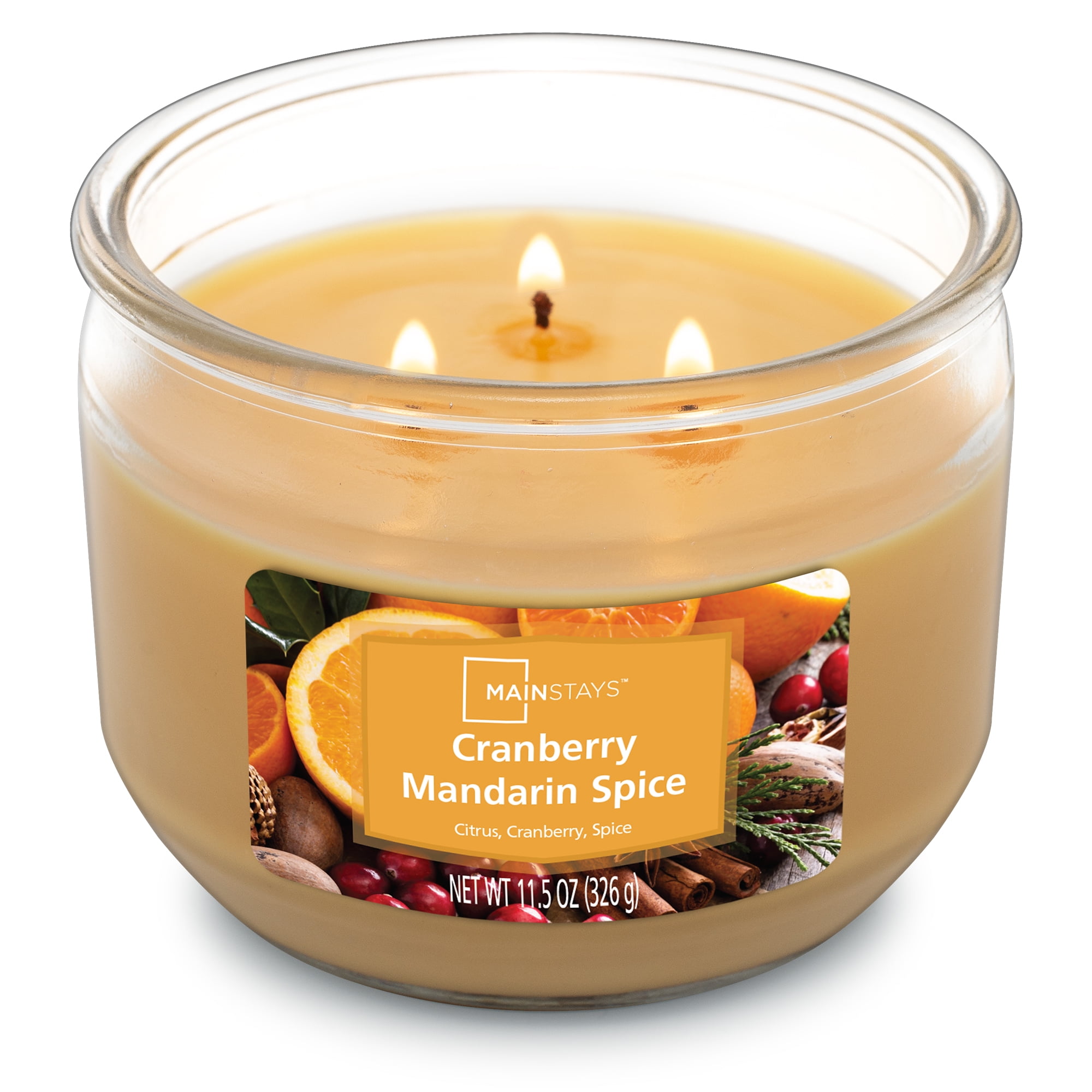 Cranberry Mandarin Spice – This scented 3-wick wrapped candle from Mainstays is a highly fragranced candle that is poured with a premium wax blend that allows for a smooth, consistent burn. These Mainstays scented candles are packaged in a decorative glass jar in a variety of fragrances and designs that will go well with all your current home decor. The candles have a lead-free wick and are poured in the USA.