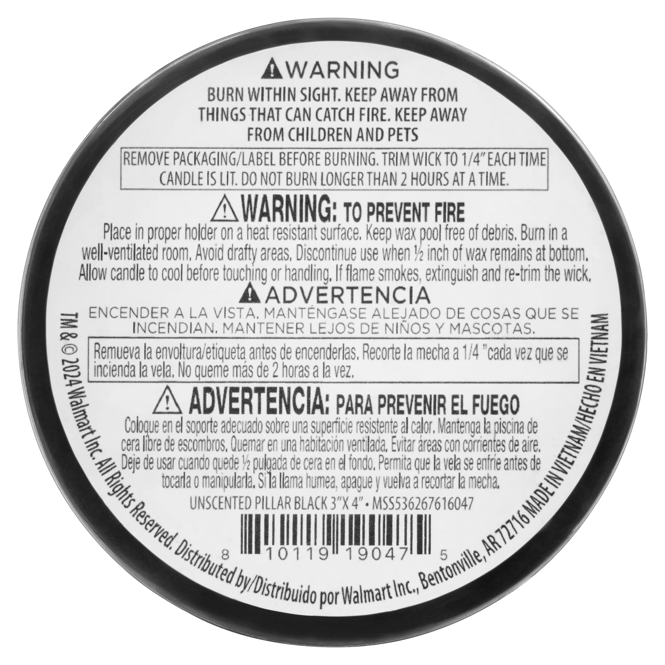 (2 pack) Mainstays Unscented Decorative Pillar Candle 3×4 Black