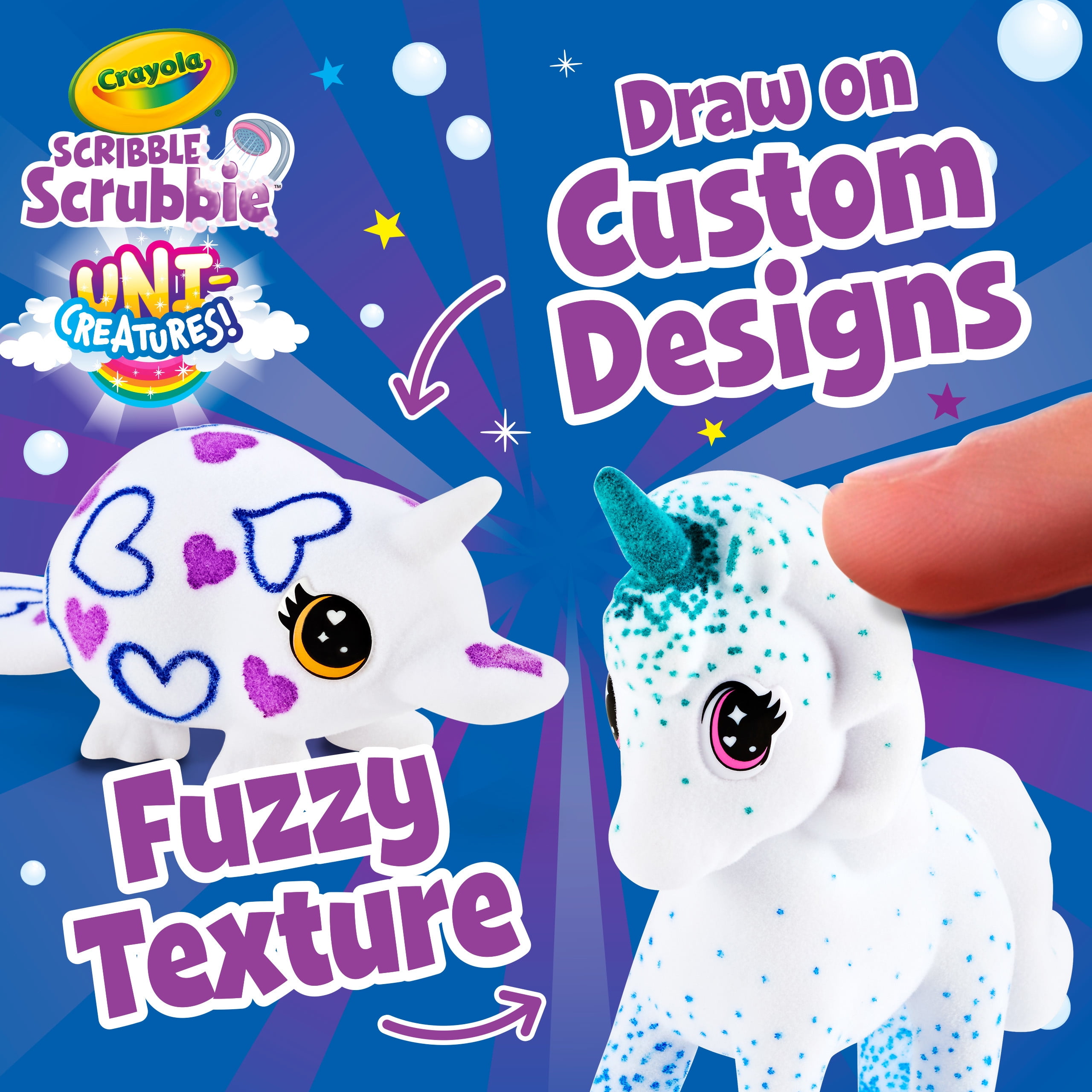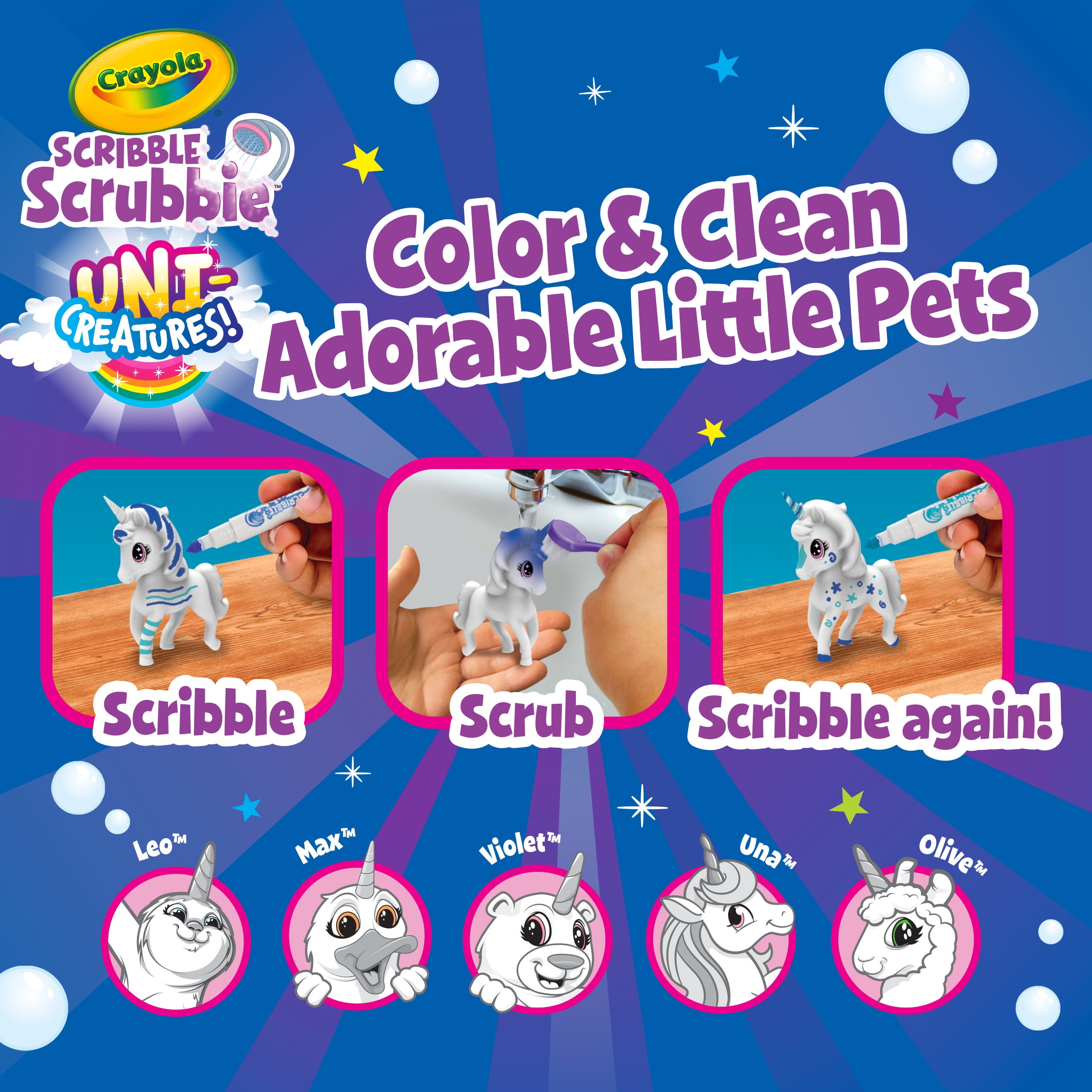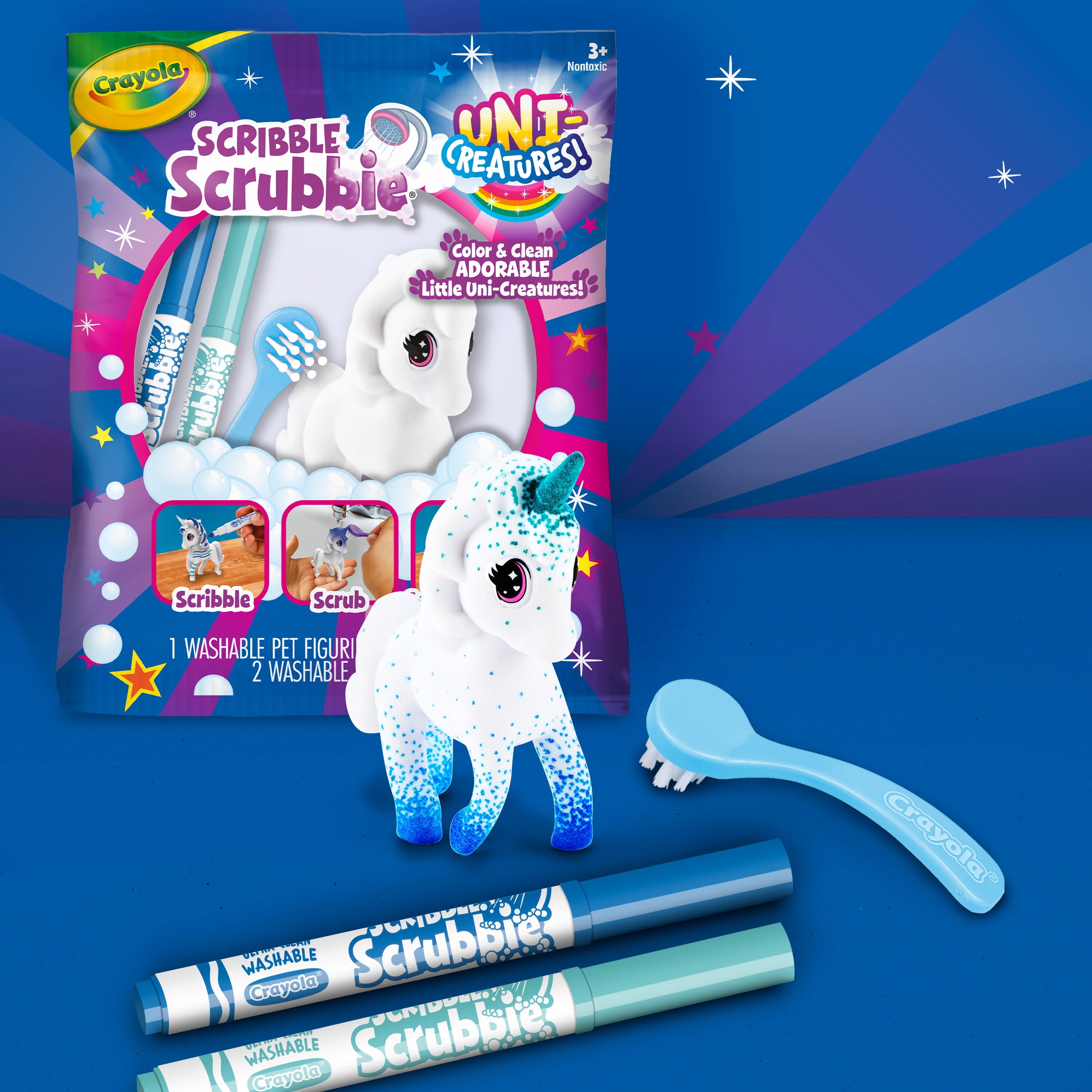- Creative Playtime: This 3-pack includes three Uni-Creature pet figurines, six washable markers, and three scrub brushes for coloring and washing.