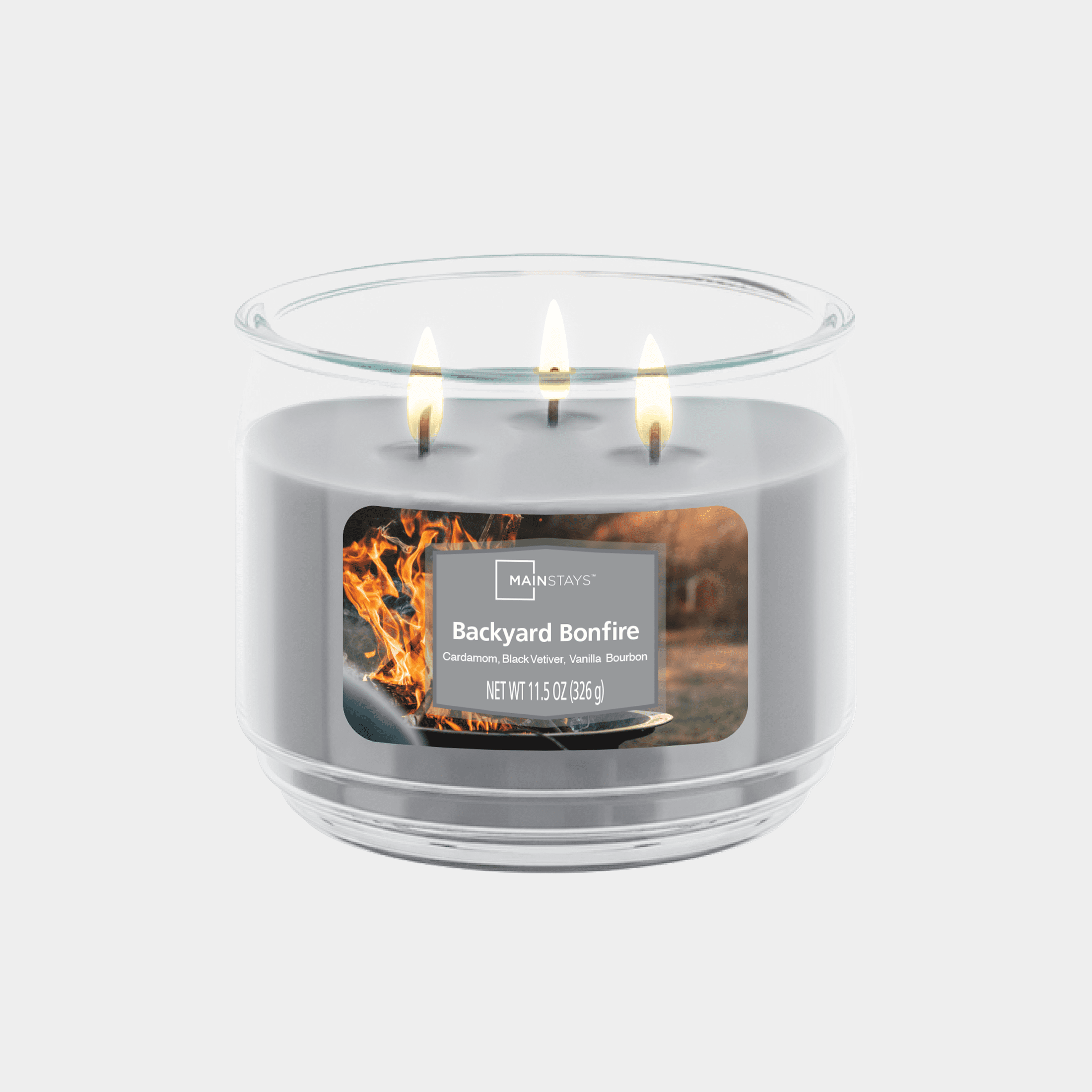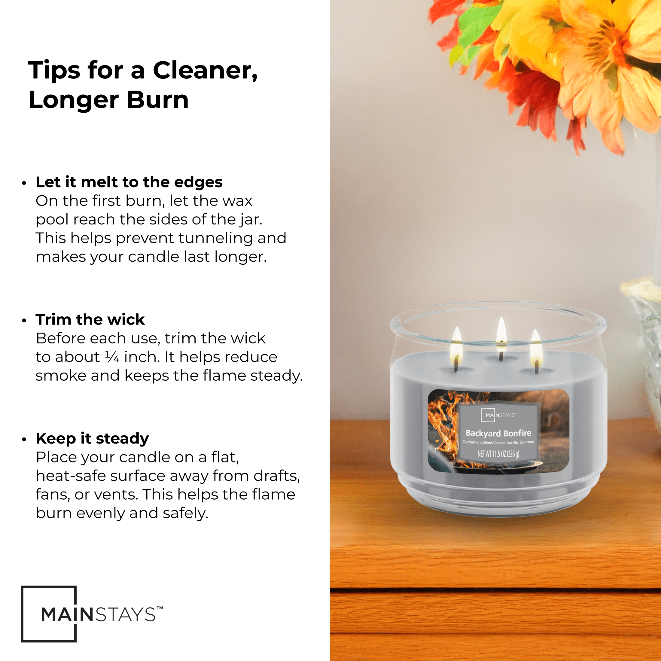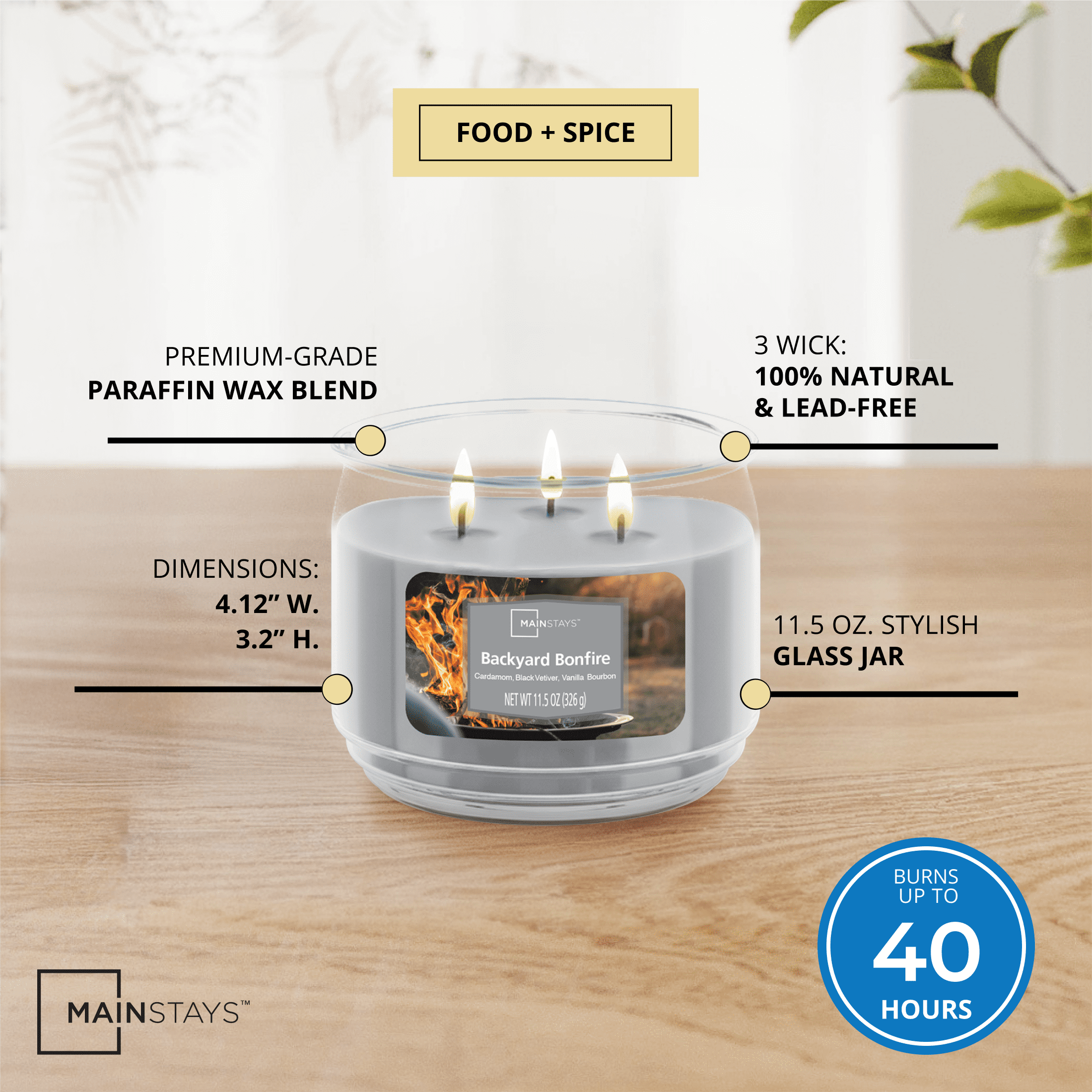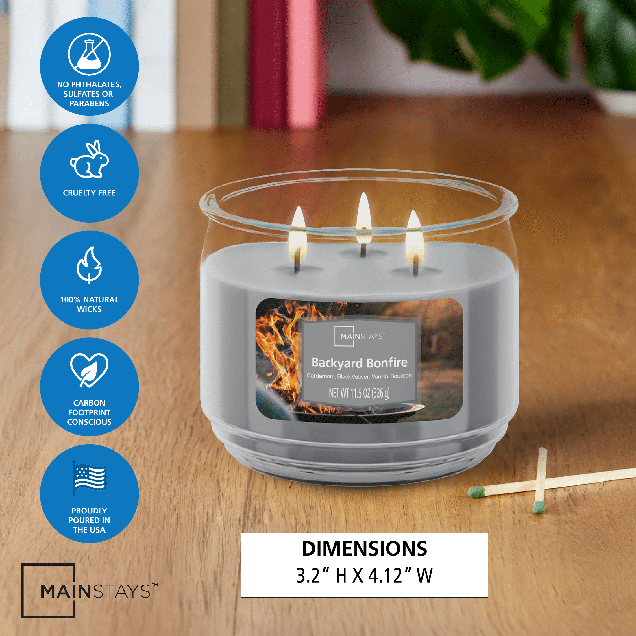 Mainstays Backyard Bonfire Scented 3-Wick Glass Jar Candle, 11.5 oz