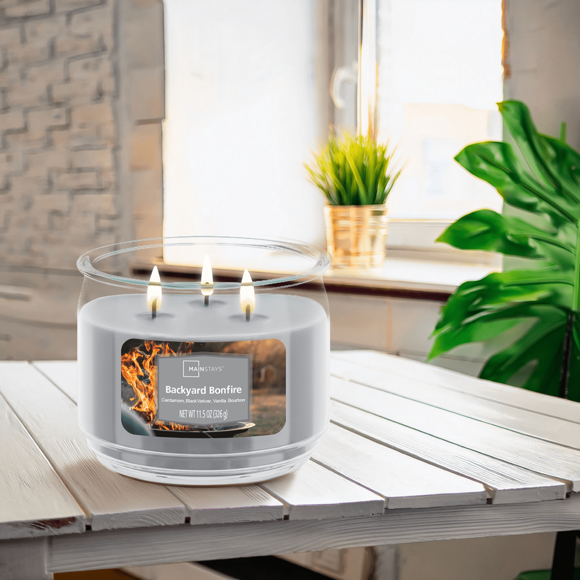 Capture the warm, smoky essence of a cozy evening with the Mainstays Backyard Bonfire Scented 3-Wick Glass Jar Candle, 11.5 oz—a comforting, woodsy fragrance that brings the outdoors inside. This soothing scented candle blends black peppercorn, mesquite wood, and cedar notes for a rich, layered aroma reminiscent of crackling fires and crisp nights. Whether you’re relaxing after a long day, entertaining guests, or adding a rustic, inviting touch to your home décor, this long-lasting scented candle provides a clean burn and a soft, ambient glow. Perfect for living rooms, bedrooms, or dining areas—and a thoughtful gift for anyone who loves warm, wood-inspired scents.