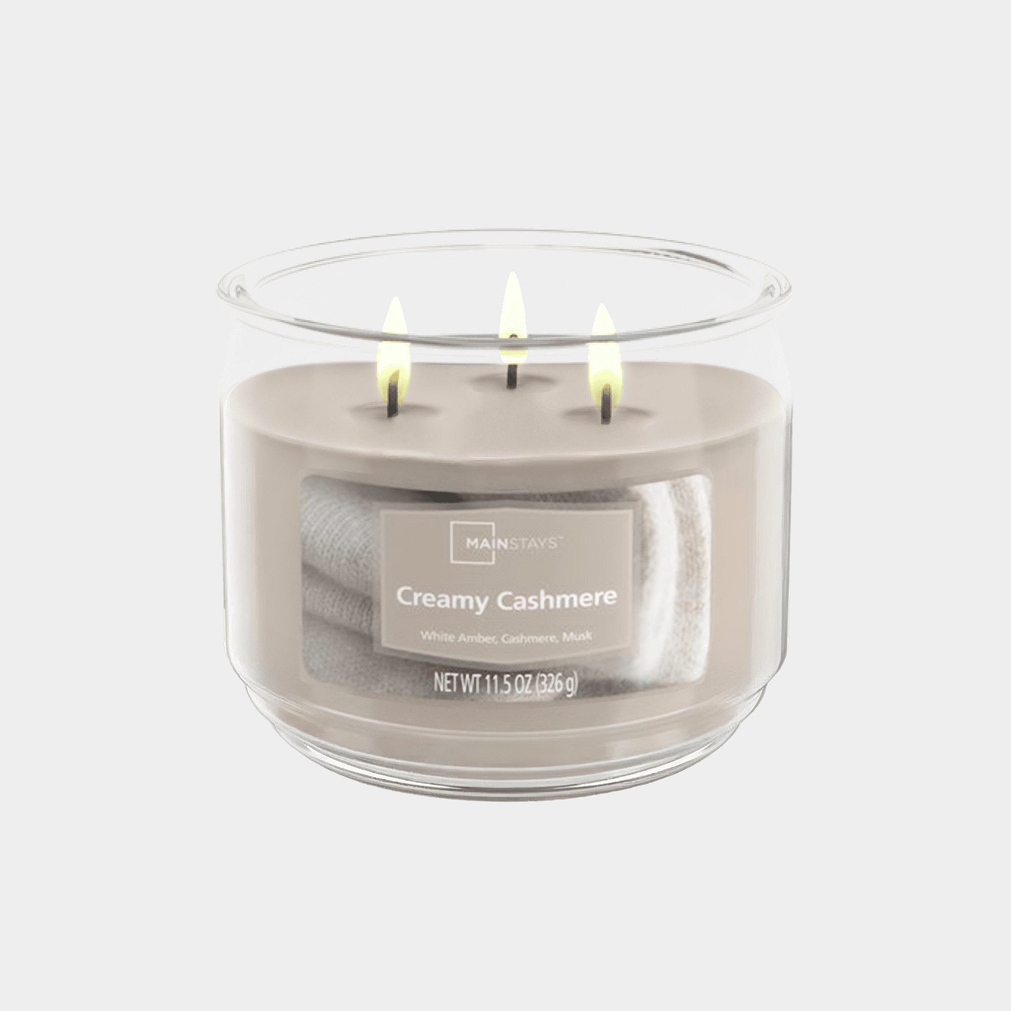 Mainstays Creamy Cashmere Scented 3-Wick Glass Jar Candle, 11.5 oz