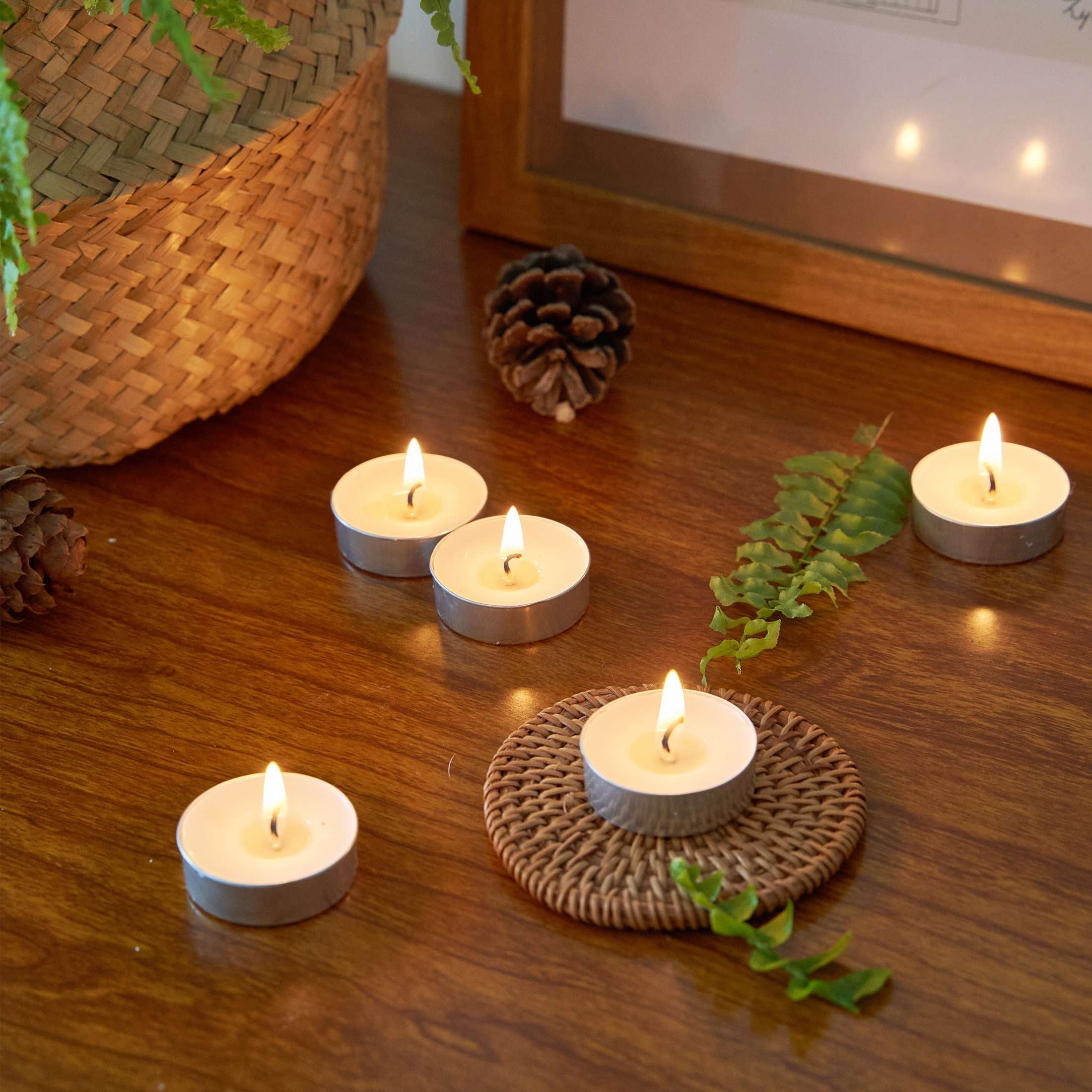 Long-Lasting: Each tealight provides a clean burn lasting between 3 to 5 hours.