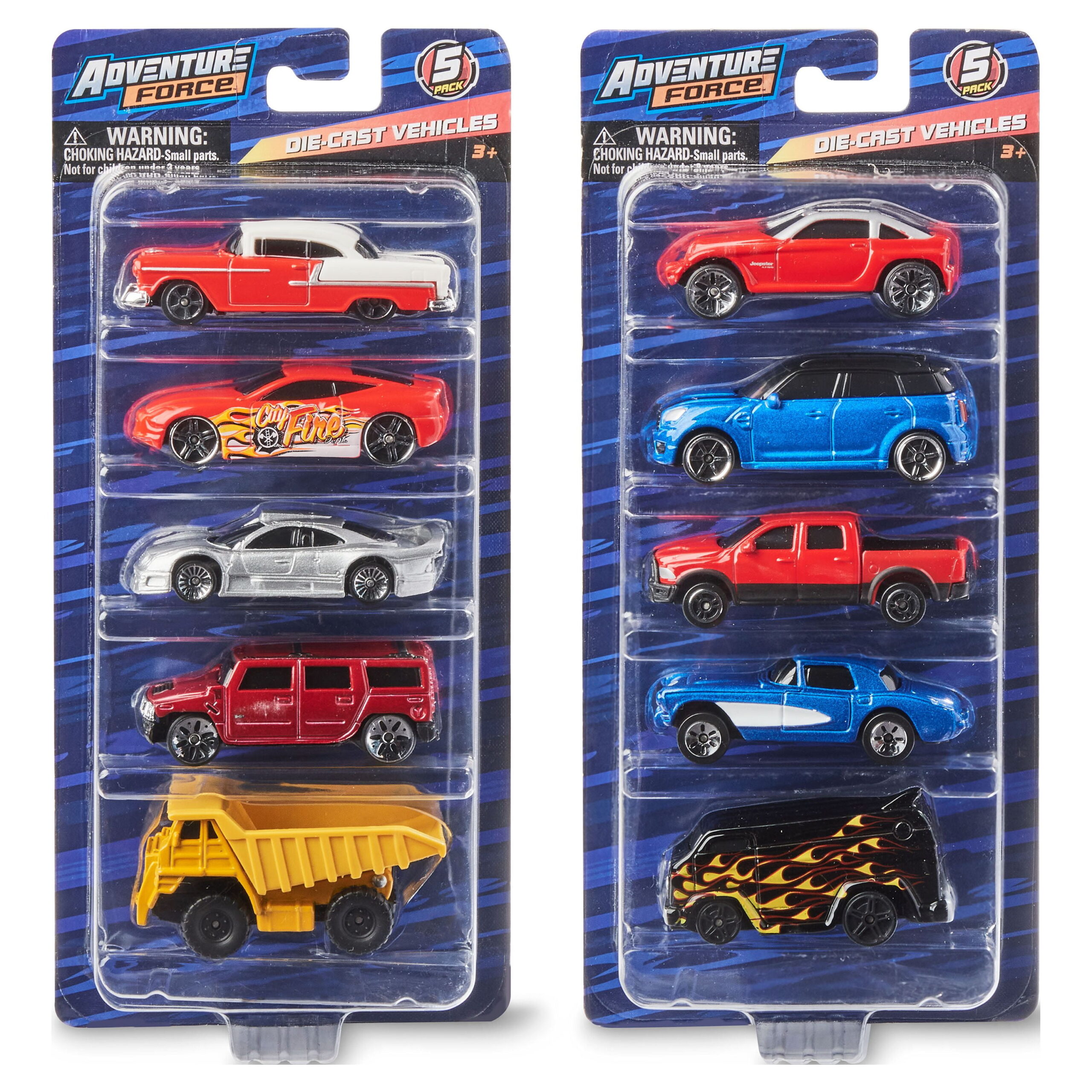 Your child will spend countless hours playing with the Adventure Force Die-Cast Vehicle Assortment. This toy assortment may include top licensed vehicles from Ford, Chevrolet, GMC, Nissan, Volkswagen, Jeep, Dodge and more. Measuring three-inches, these fast-rolling vehicles feature die-cast metal bodies with plastic parts. The actual styles and colors you receive may vary from the image. Bring this toy car set home for a birthday present, as a thoughtful gift to put under the tree, or as an amazing surprise that’s sure to bring a smile to anyone’s face. Your little one will love imagining all the places they’ll go with the Adventure Force Die-Cast Vehicle Assortment.