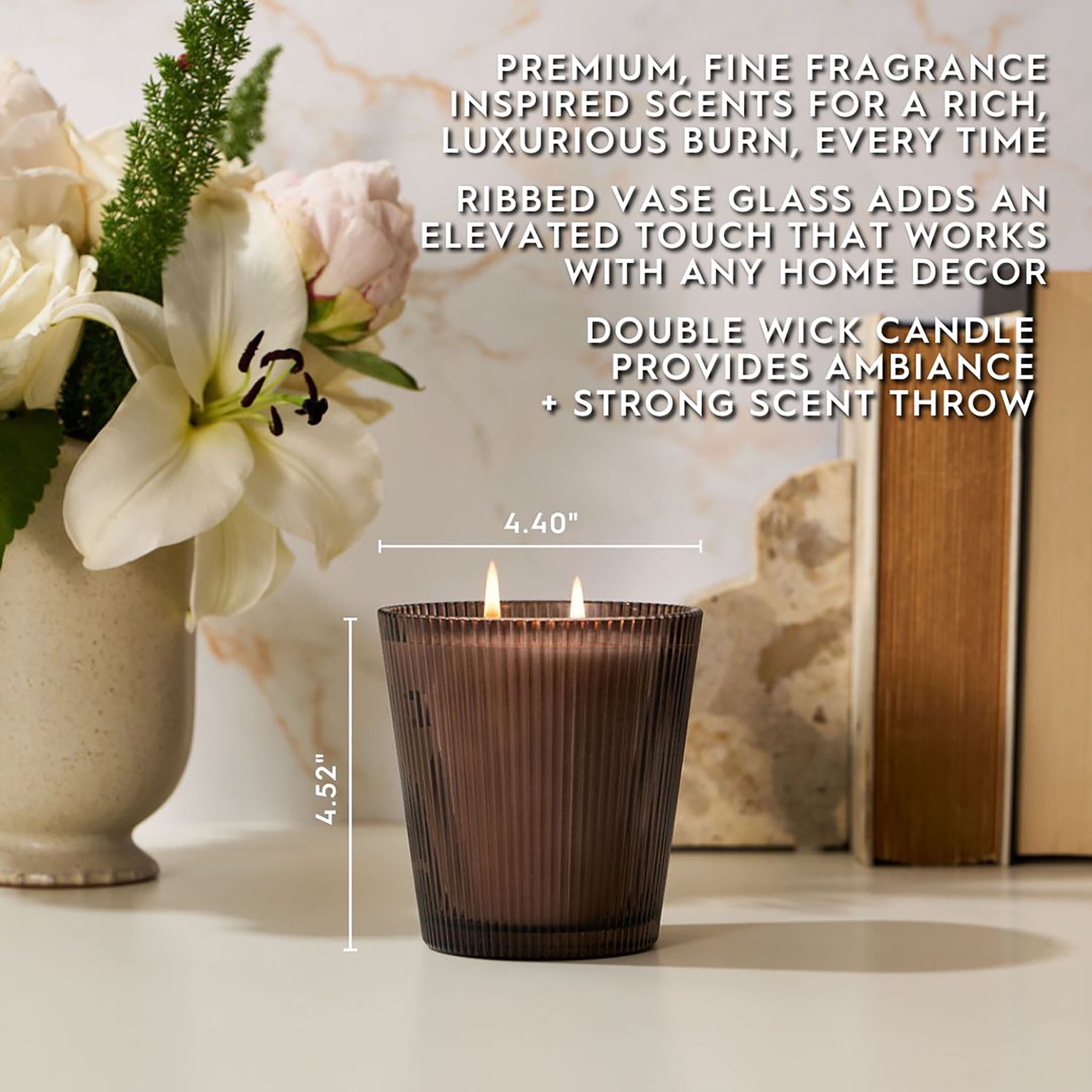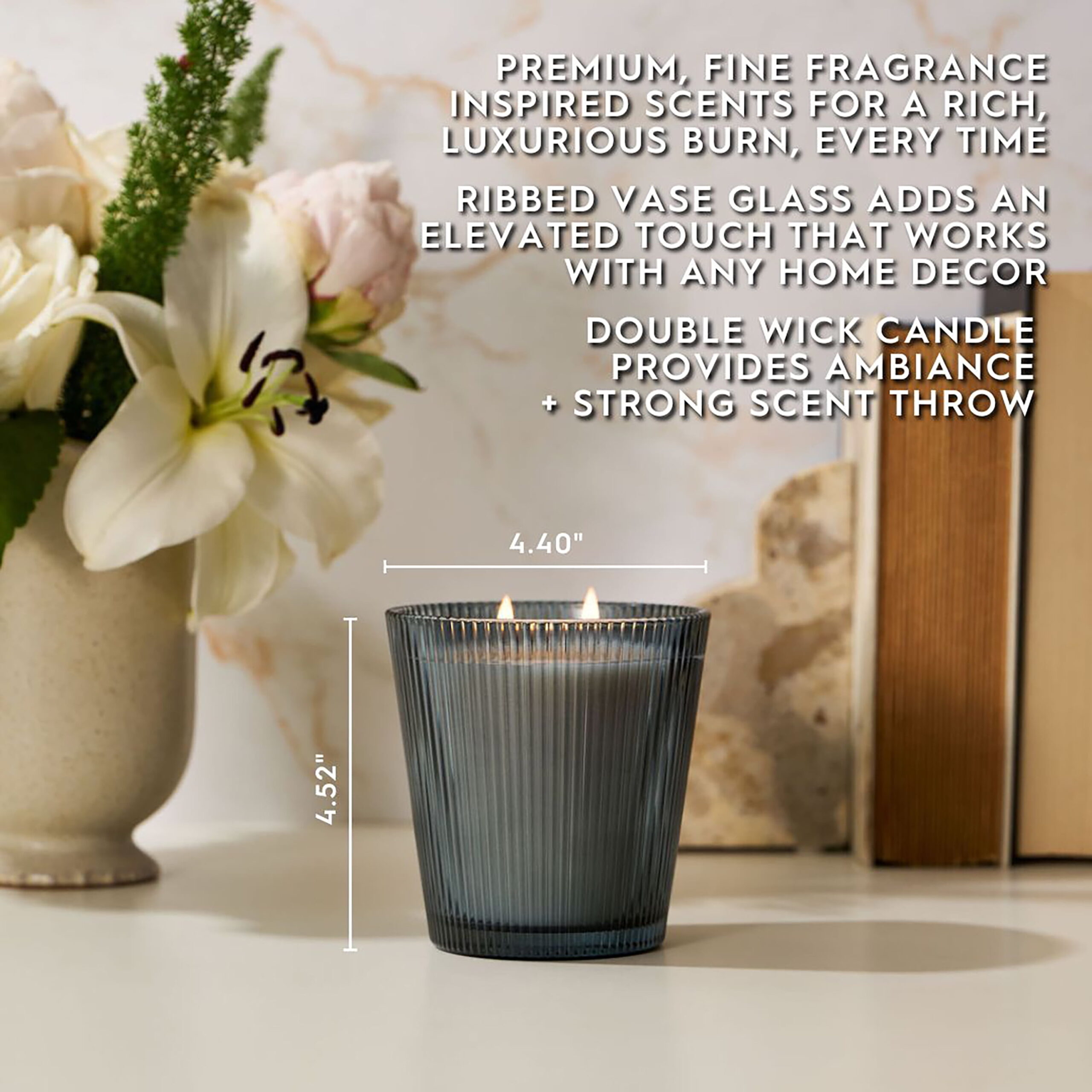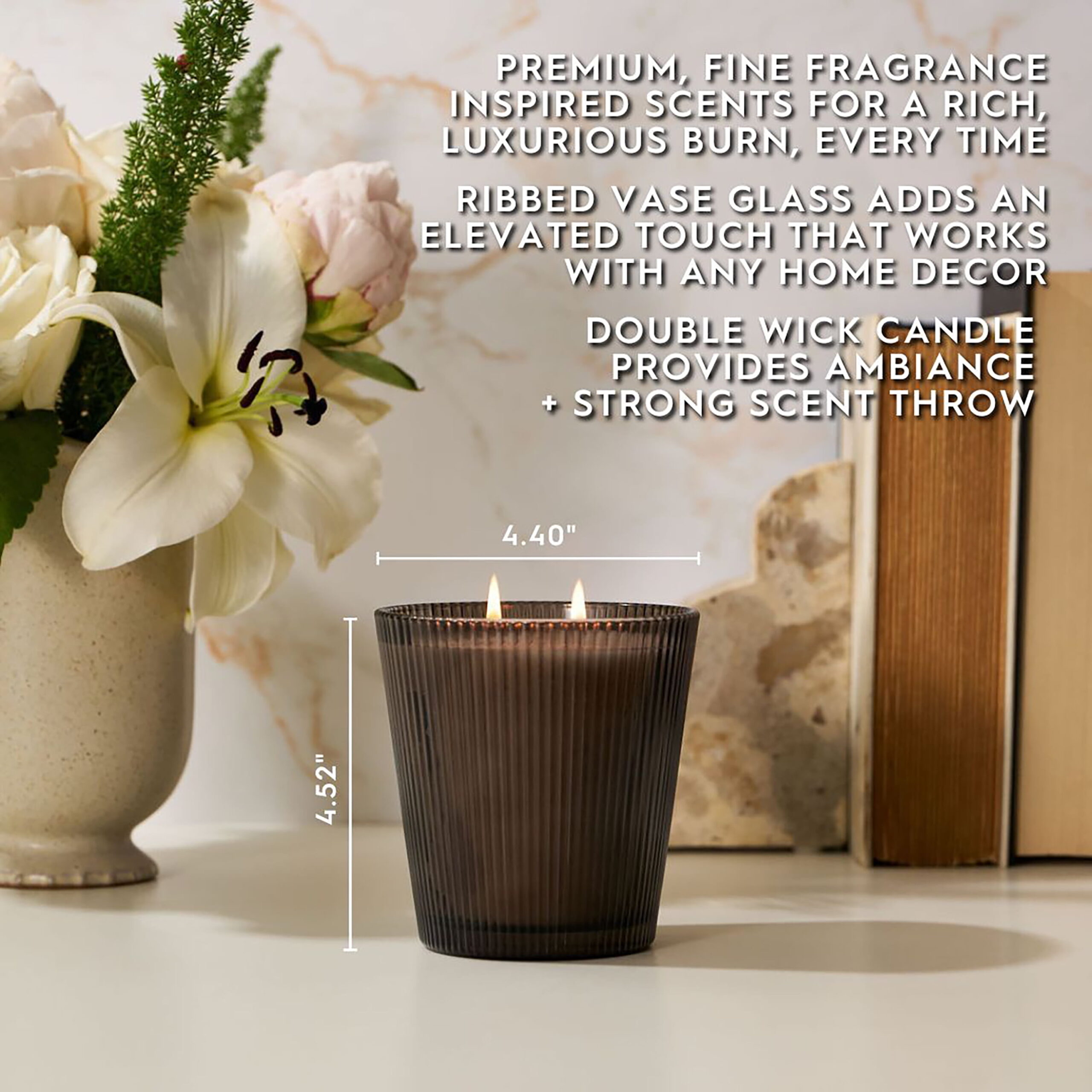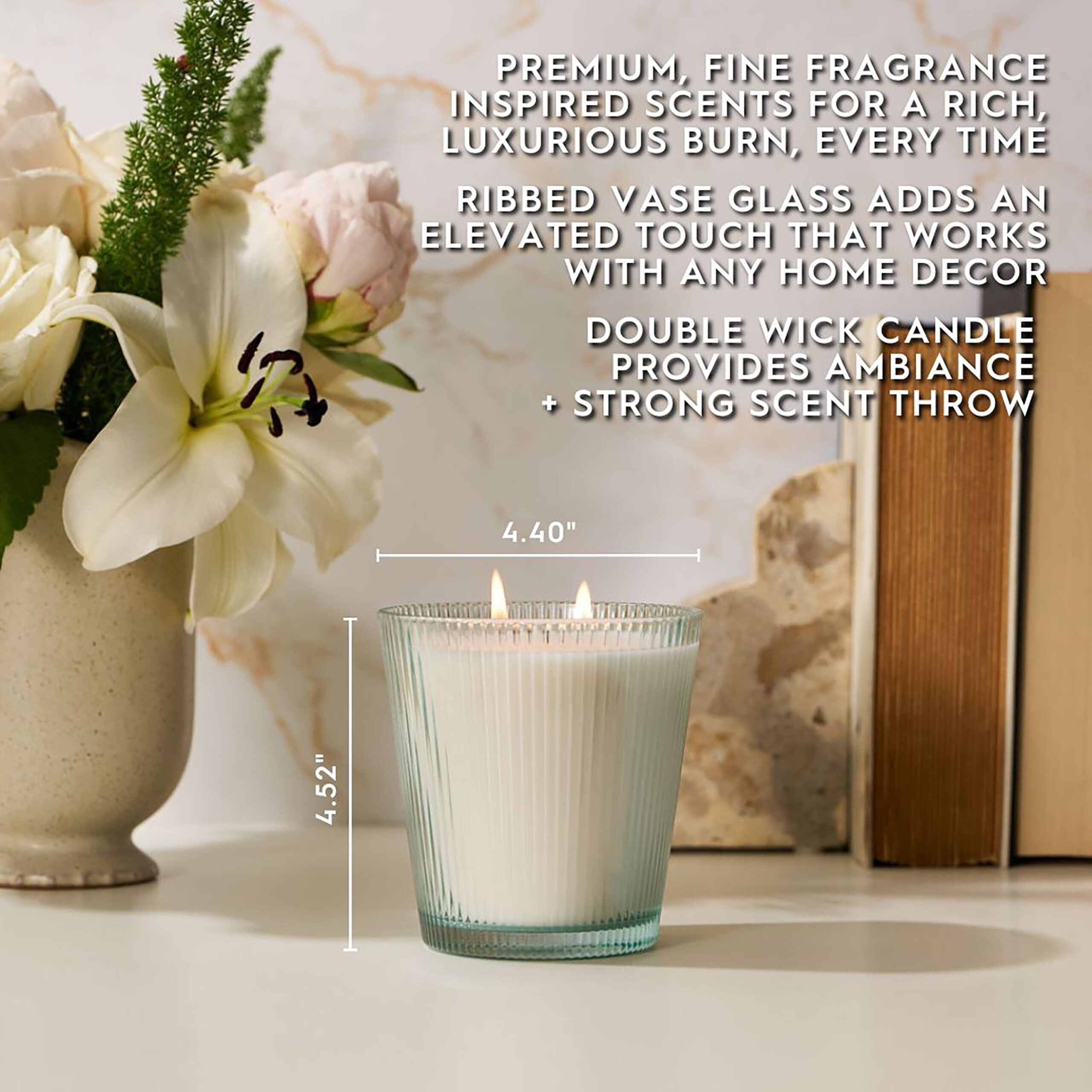 - Includes: 16oz (453.59 g) Ribbed Vase Candle
