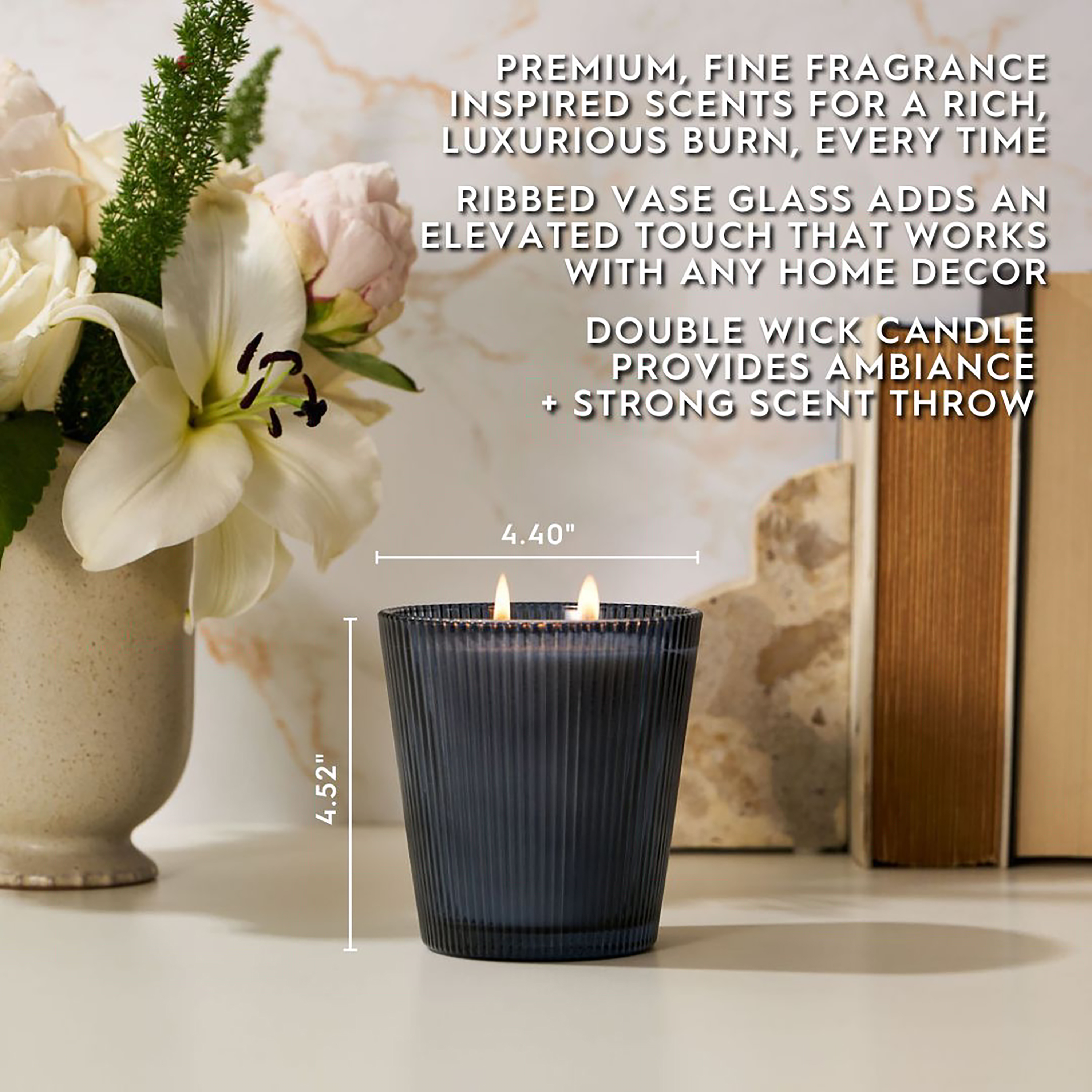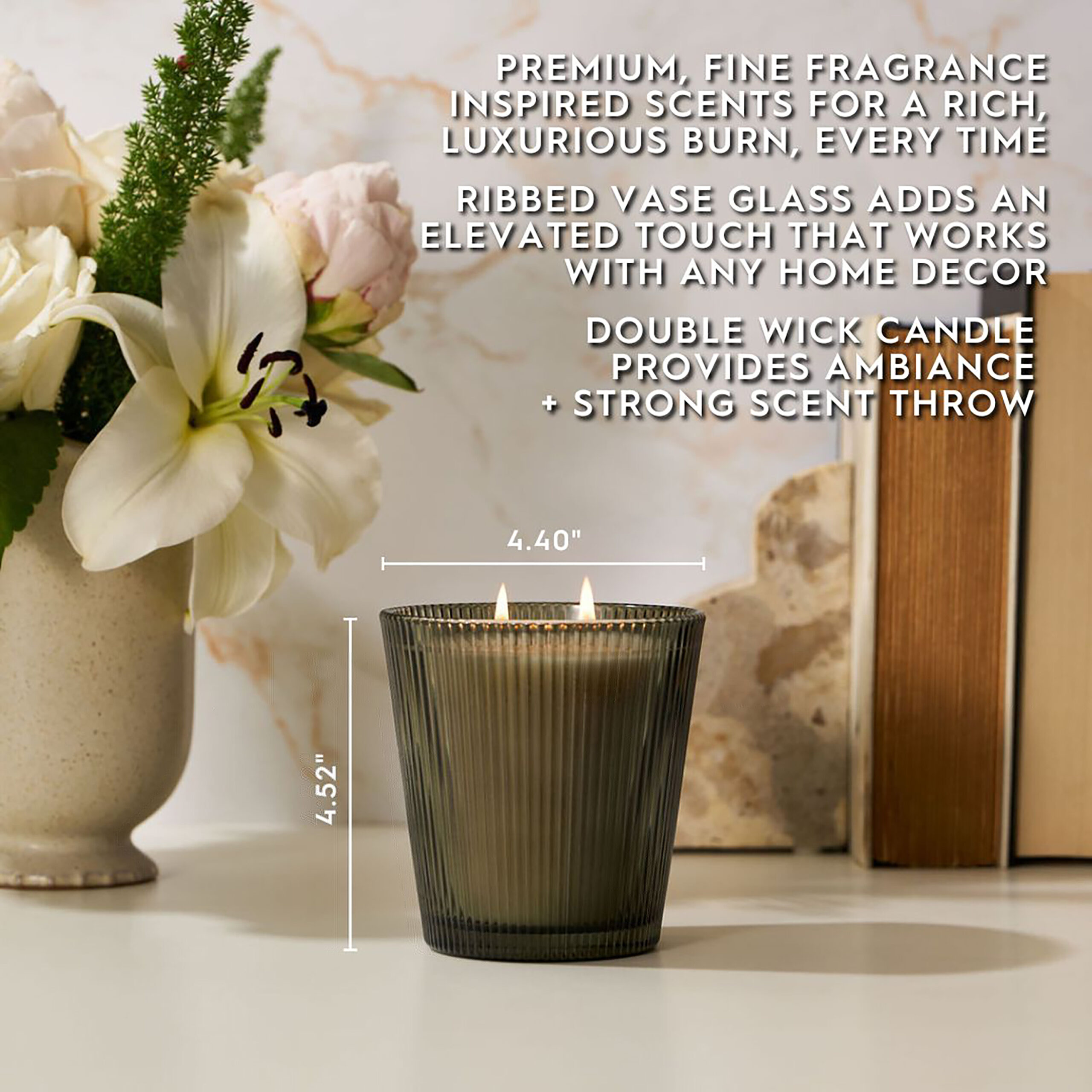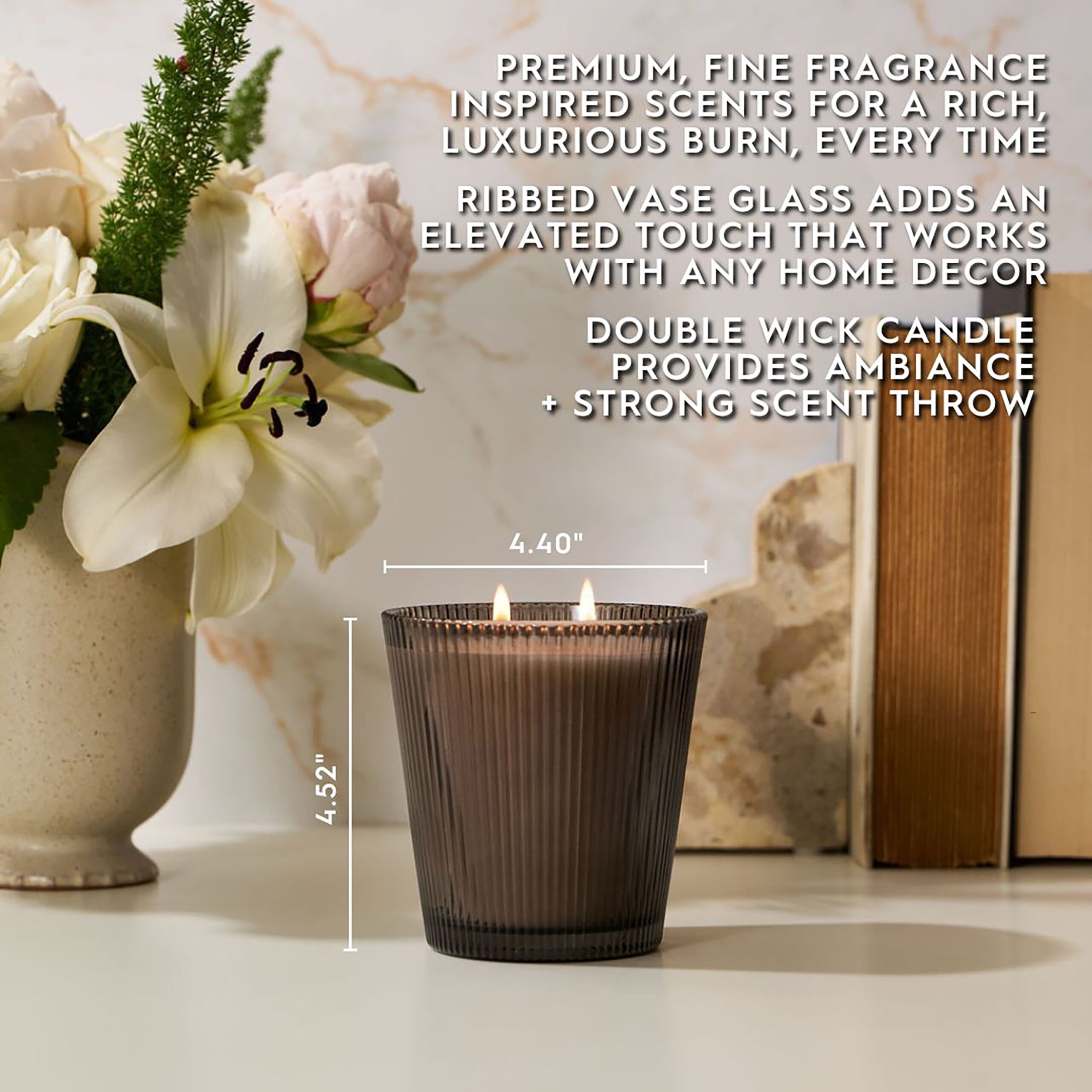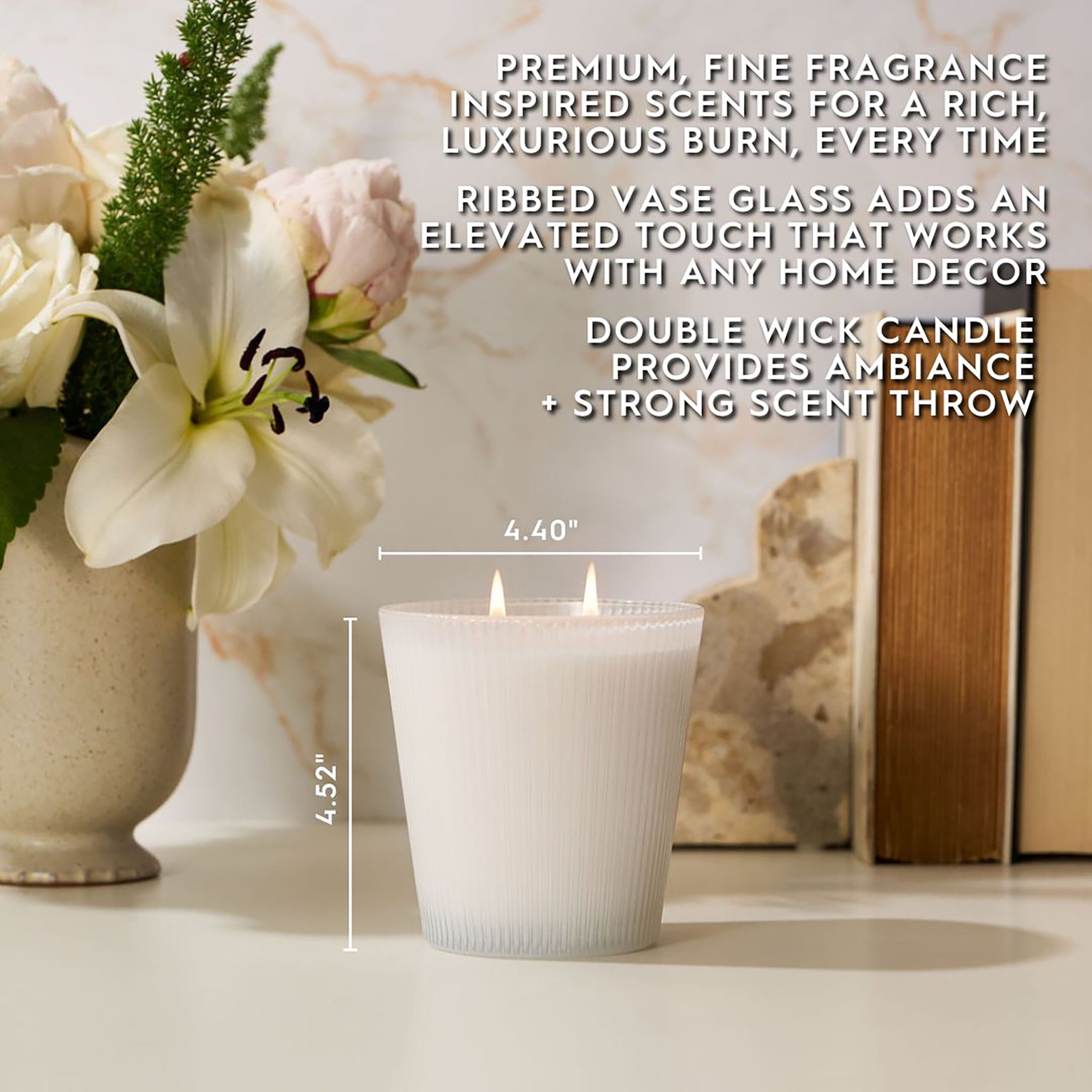 - Includes: 16oz (453.59 g) Ribbed Vase Candle