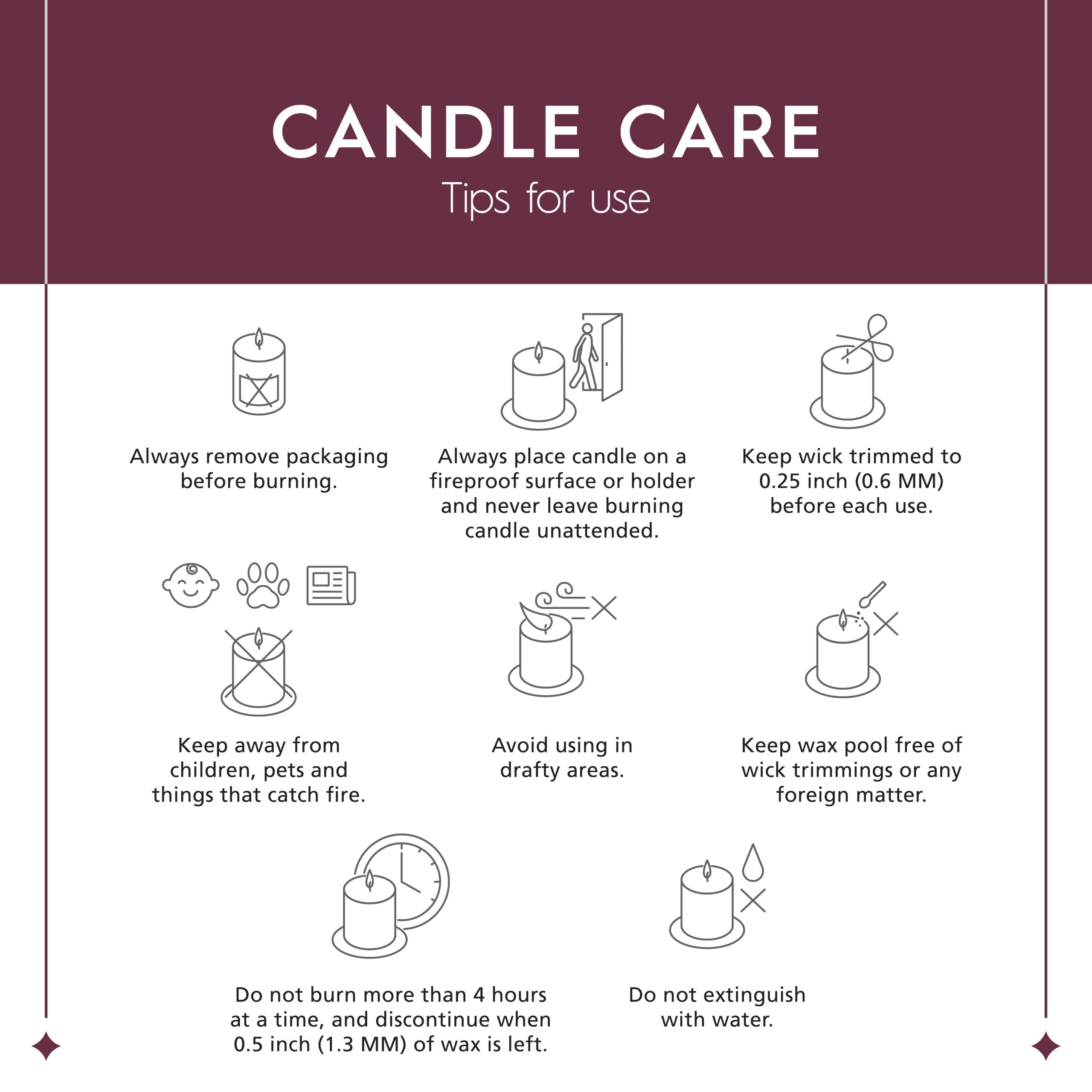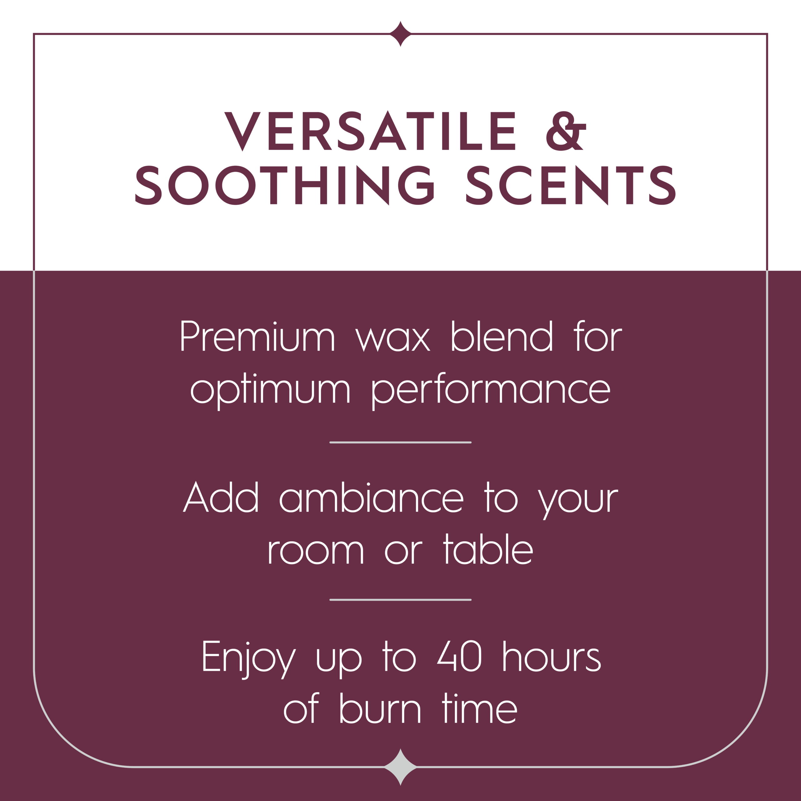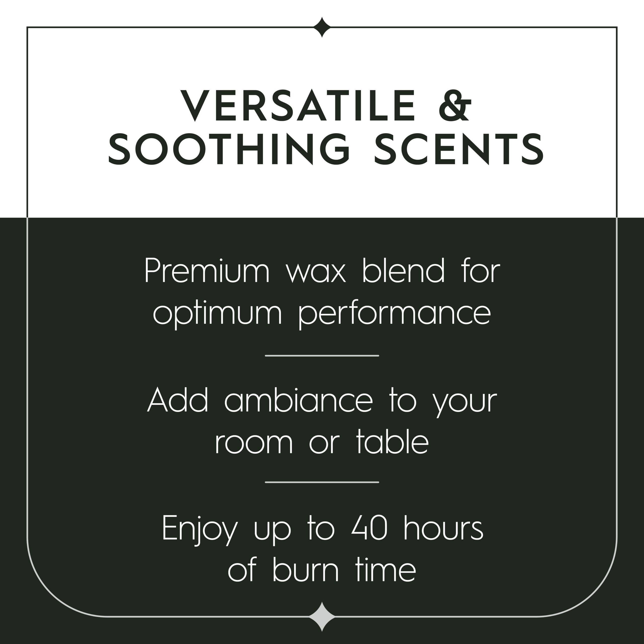 Wax Composition: Utilizes a premium wax blend, ensuring optimal performance and a clean burn.