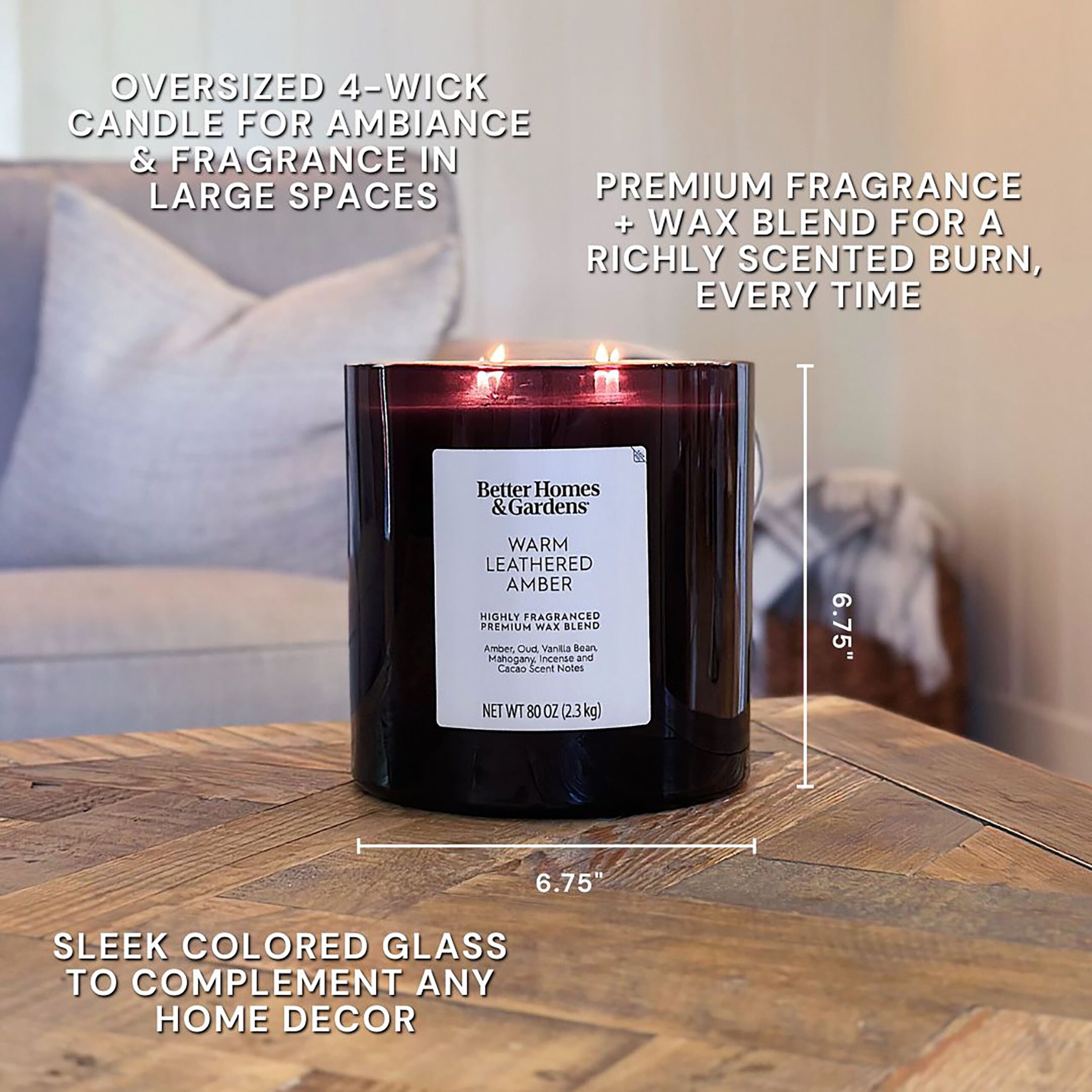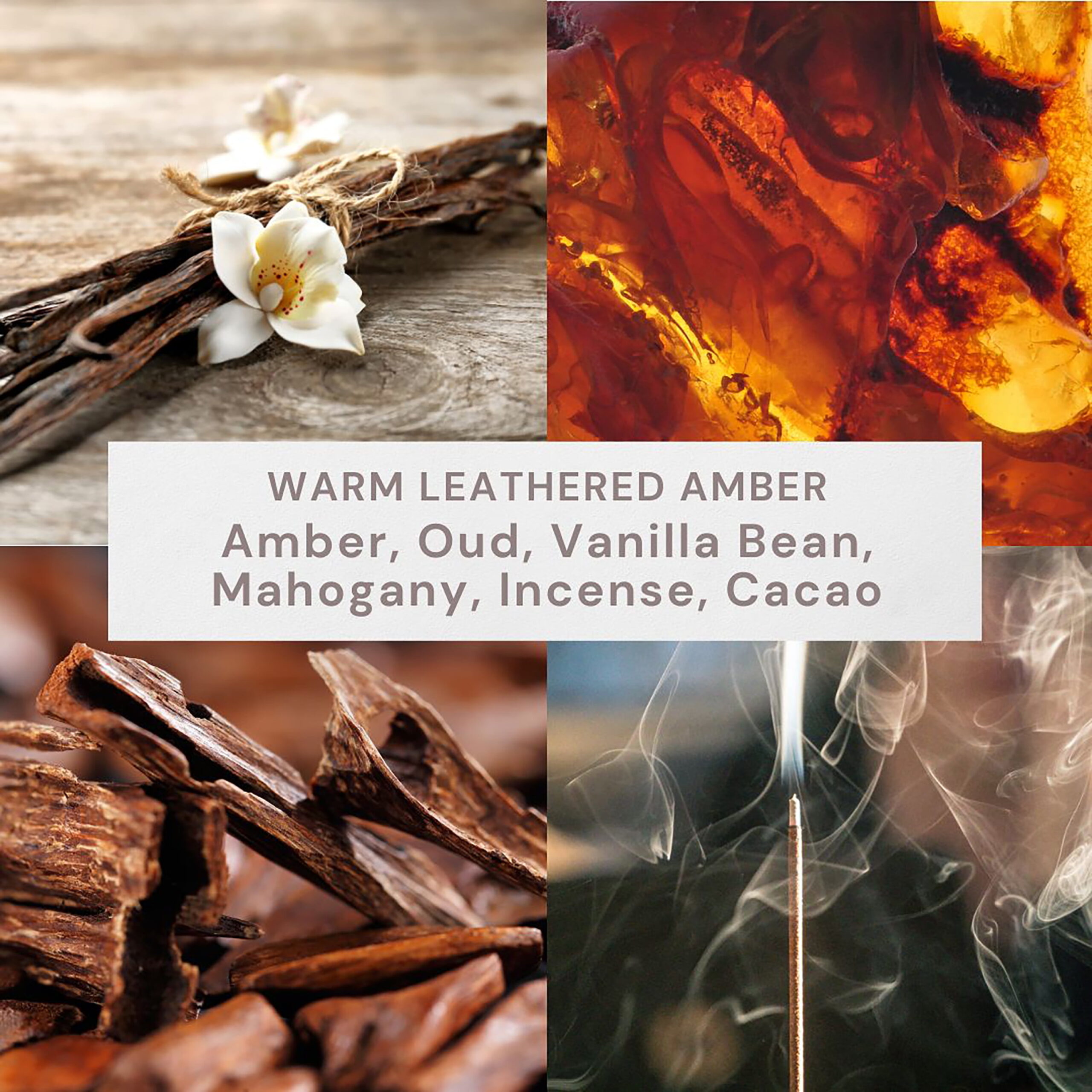 - Rich Fragrance: Features a warm, indulgent scent profile with notes of Amber, Oud, Vanilla Bean, Mahogany, Incense, and Cacao, designed to create an inviting atmosphere.