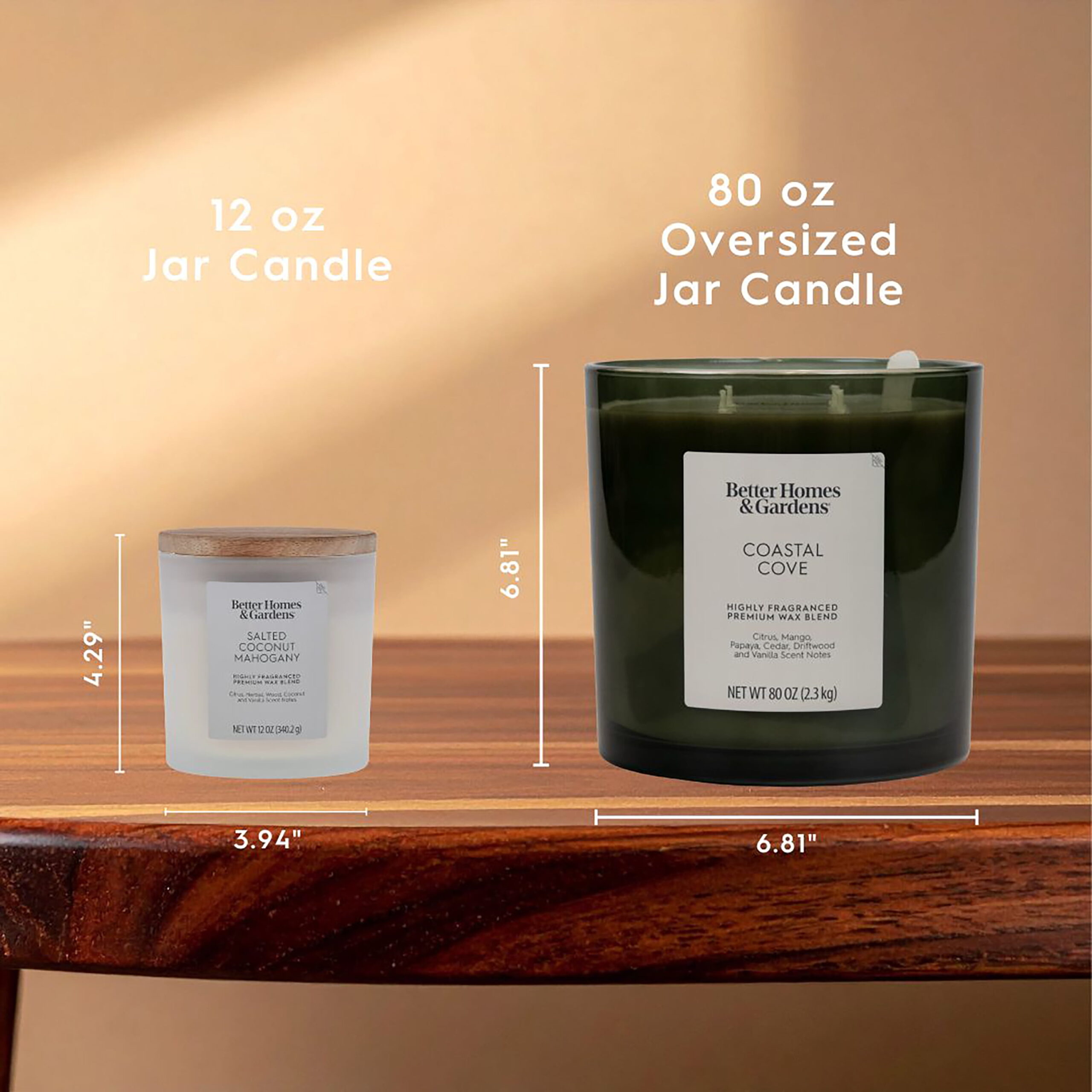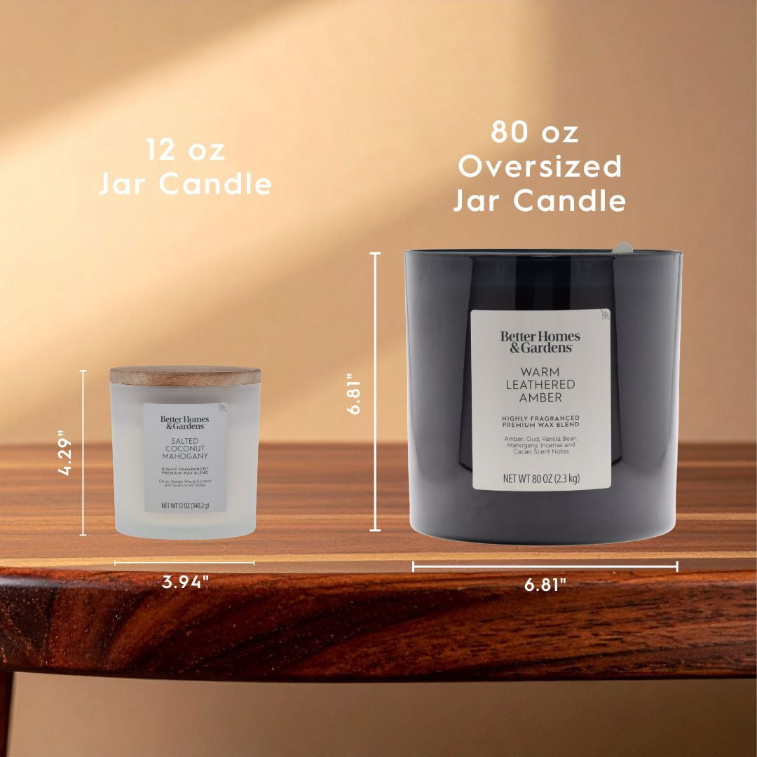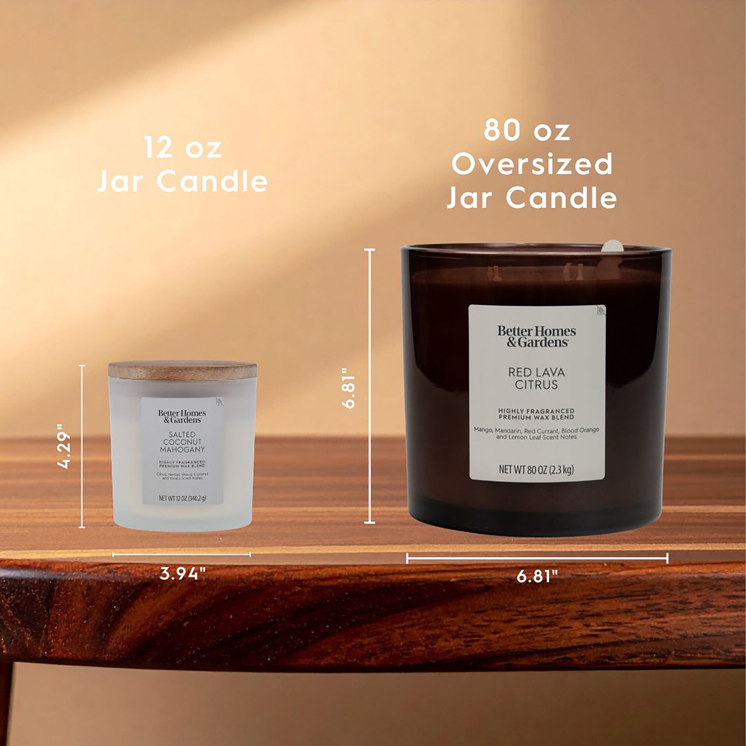 - Oversized Design: This large 80oz (2.26 kg) jar candle measures 6.81″ (w) x 6.81″ (h) and weighs 9.33 lb, making it a substantial decorative and functional item.