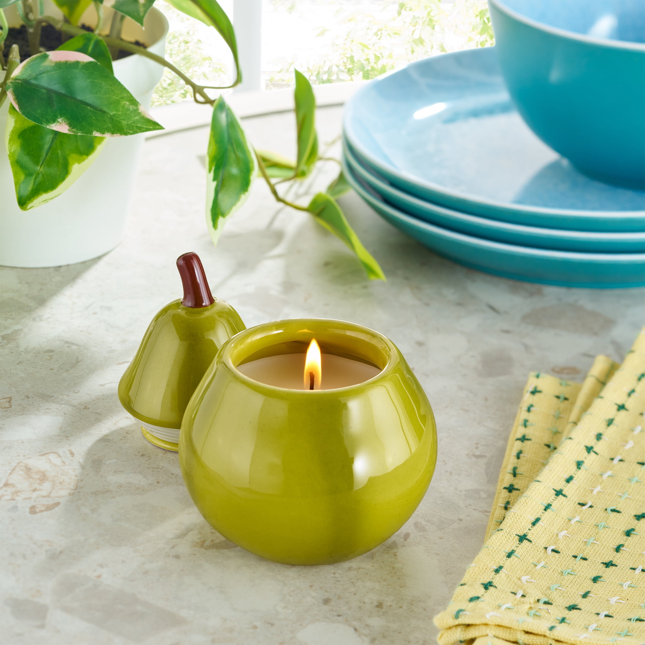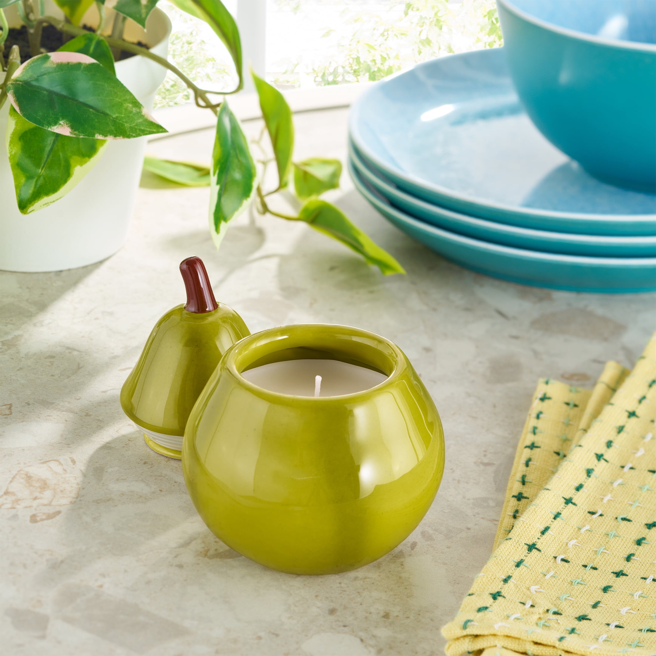 Bring a playful touch to your home with the Better Homes & Gardens Lemon Shaped Ceramic Candle. This delightful 6-ounce figural candle pairs refreshing notes of lemon and mint with a cheerful citrus-inspired design that brightens kitchens, dining spaces, and cozy nooks alike. Nestled in a glossy ceramic vessel bursting with charm, it becomes an eclectic decor piece long after the candle is finished. Let yourself unwind with its inviting glow or use a candle warmer lamp for an easy, flameless way to enjoy scented candles at home. Perfect for gifting or adding a dash of whimsy to your space, this vibrant accent fills any room with warmth and welcoming aroma.