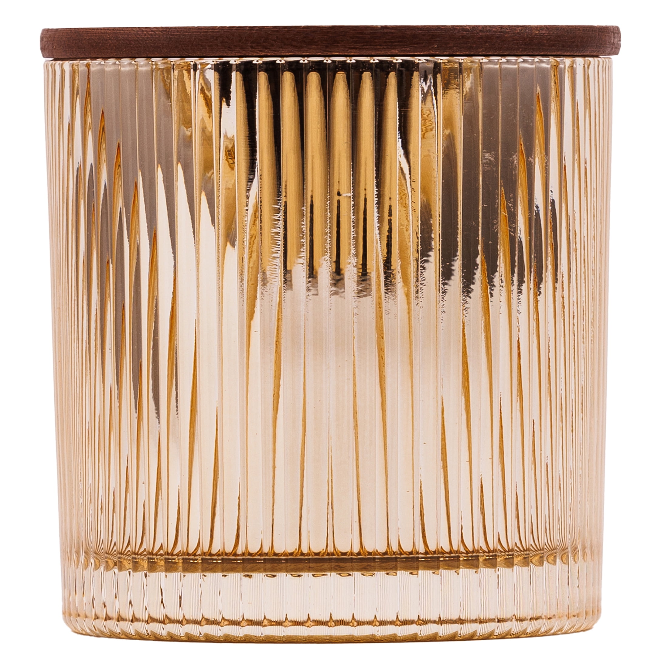 • Container Design: Housed in a ribbed and inside mercury glass jar, complemented by a natural wooden lid.