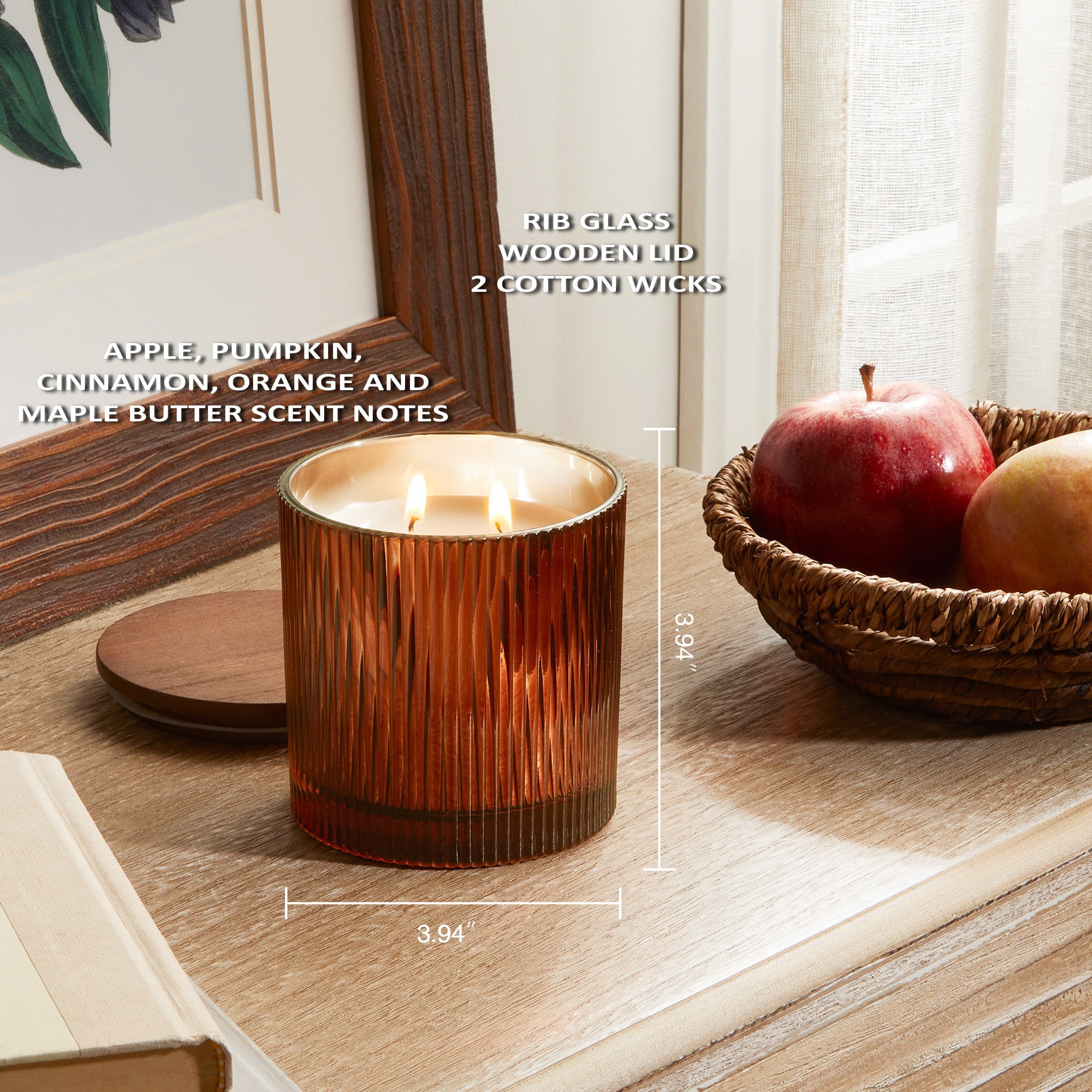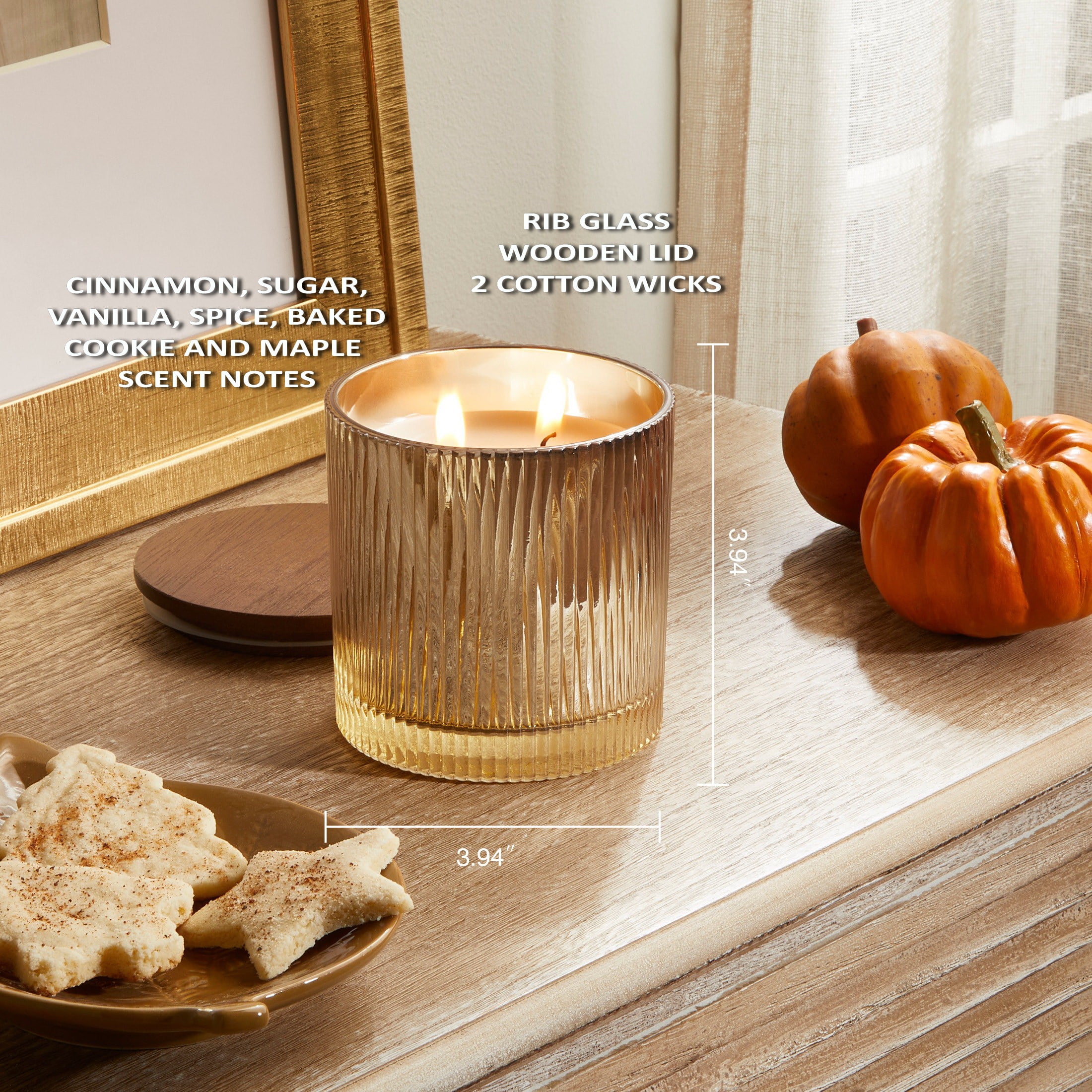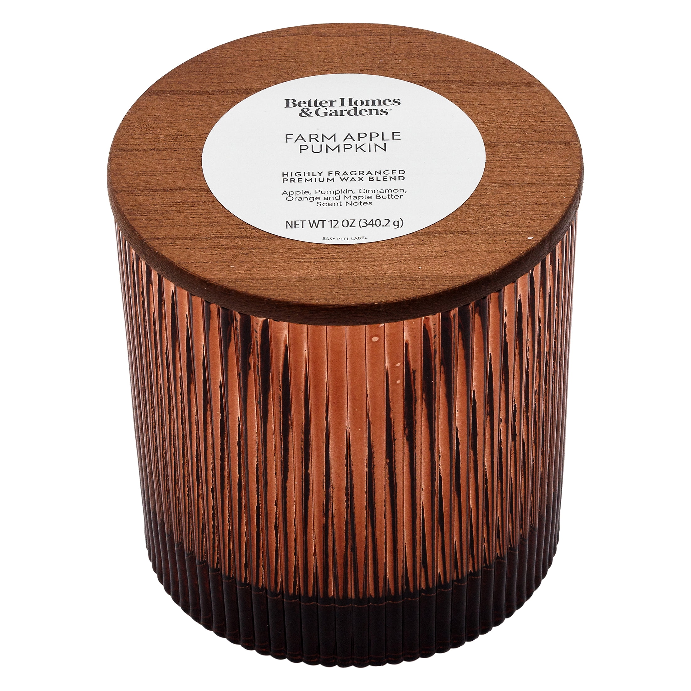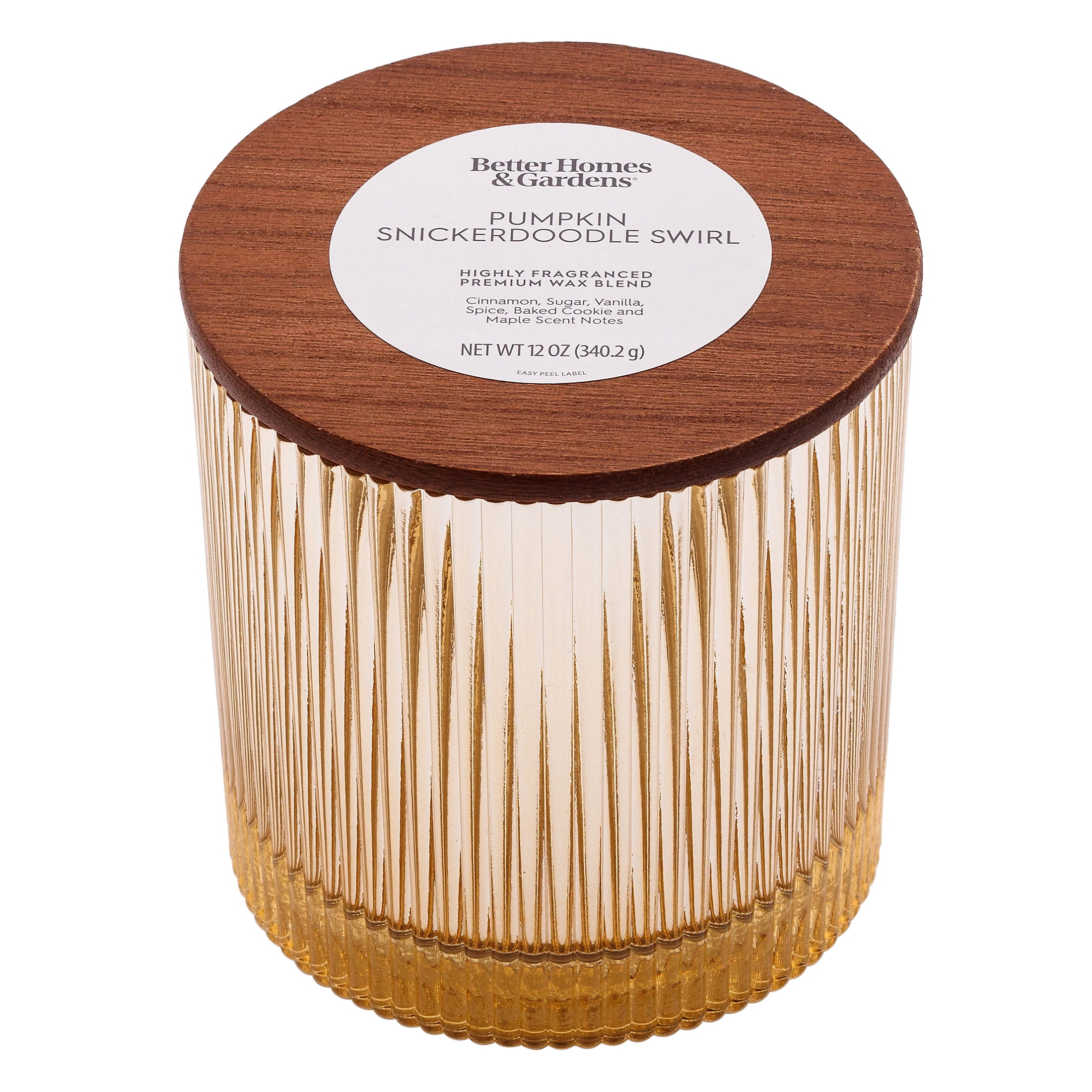 Better Homes & Gardens Pumpkin Snickerdoodle Swirl Scented Cotton 2-Wicks Ribbed Mecury Glass Jar Candle with Wooden Lid 12oz