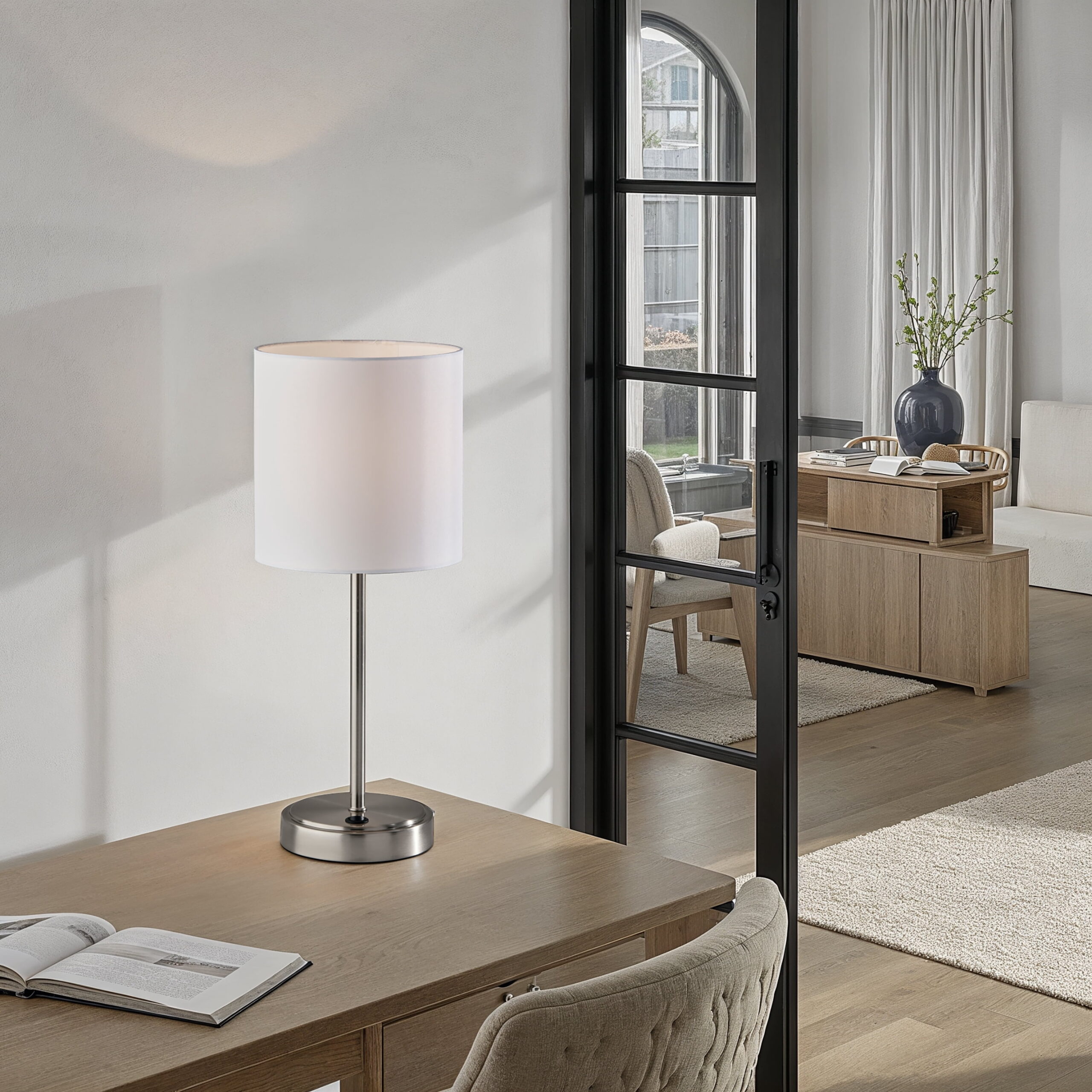 - Modern Design: This stick lamp features a modern design with a silver finish metal base and a white fabric shade, offering a sophisticated look for various settings.