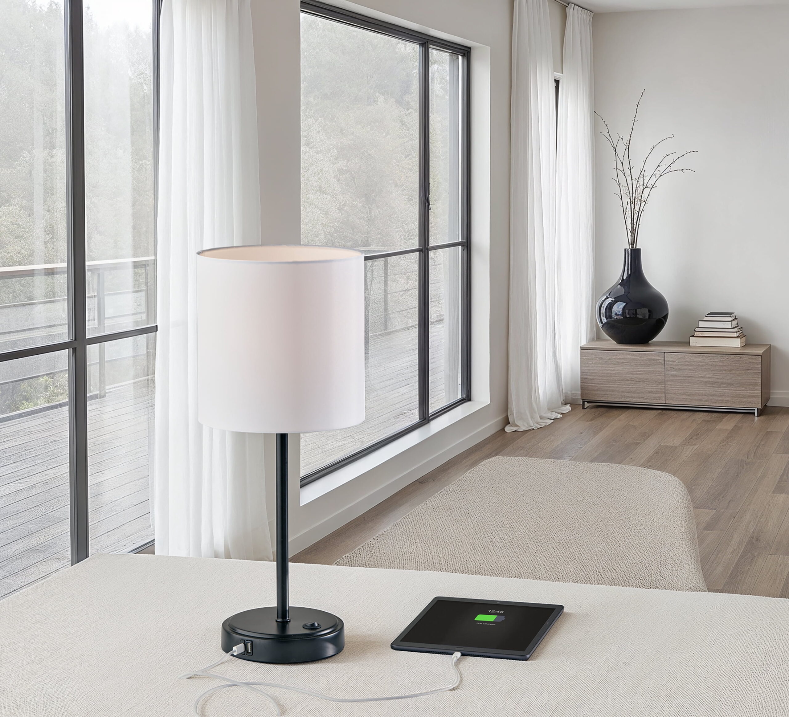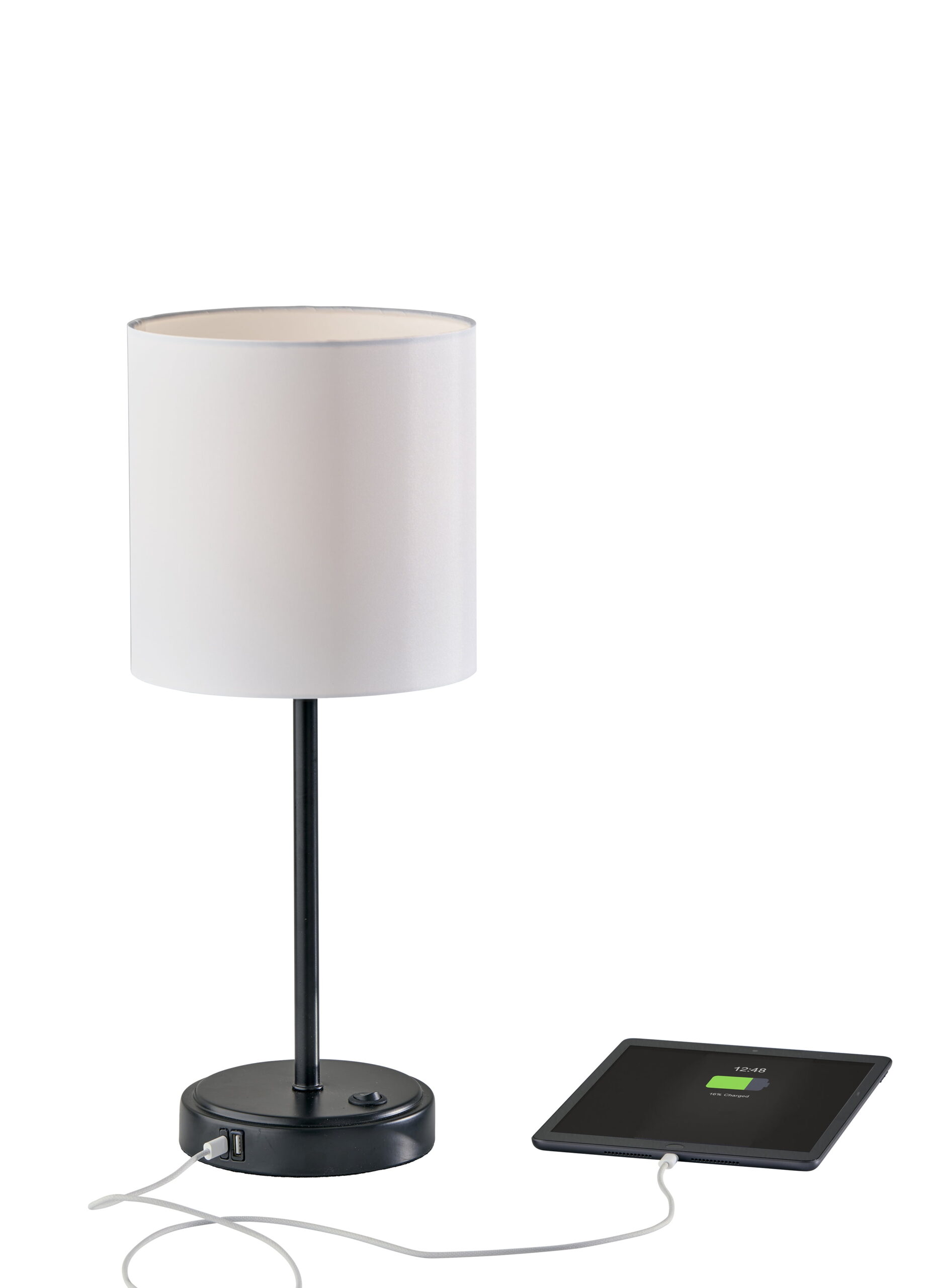 Mainstays 19″ Height Black Finish Metal Material Stick Lamp with USB and USBC Ports, Modern, Office and Dorm