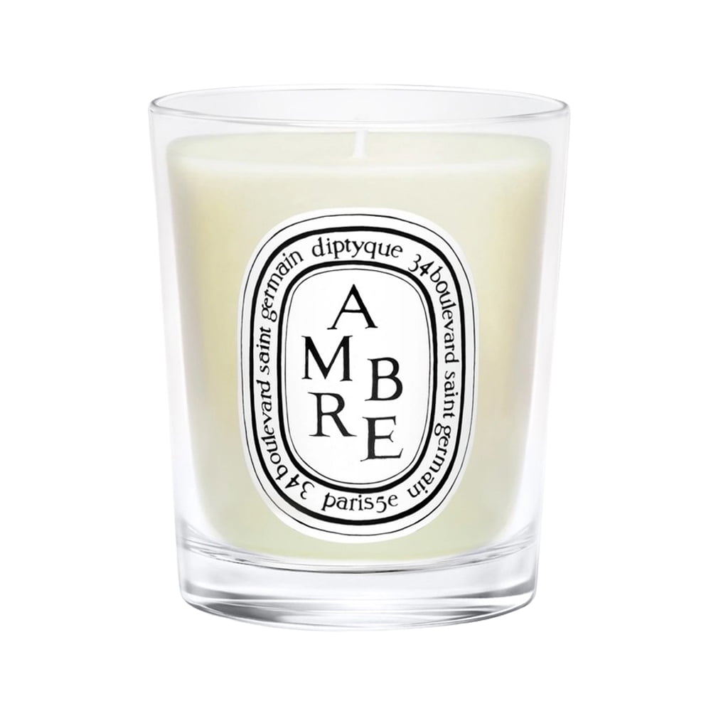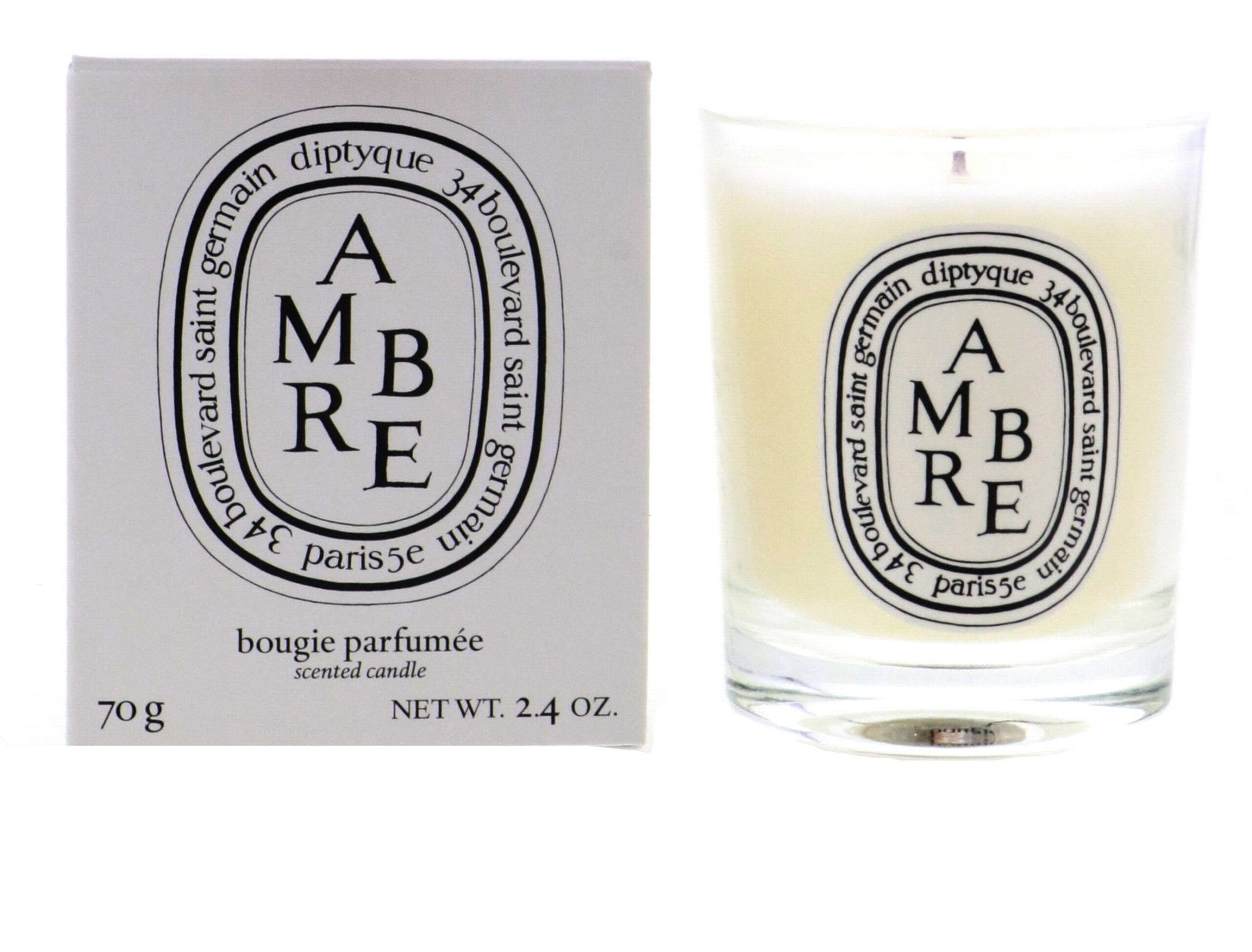 Diptyque Scented Candle – Ambre (Amber) 70g/2.4oz A luxurious, delicately scented candle Fills your home with a soft, comforting scent Promotes a feeling of well being Made of a high quality vegetable & paraffin wax blend Features a cotton, lead-free wick Burns for up to thirty hours Caution: Do not drop foreign matter or wick-trimmings into candle. Keep candle burning within sight. Keep out of reach of children & pets