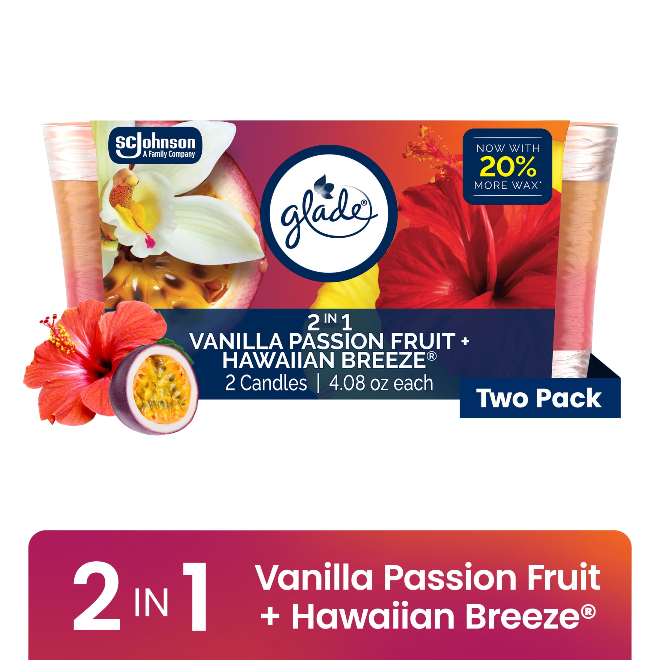 Meet your next go-to candle and awaken your senses with the room filling fragrance of the expertly crafted Glade Vanilla Passion Fruit & Hawaiian Breeze scented candle