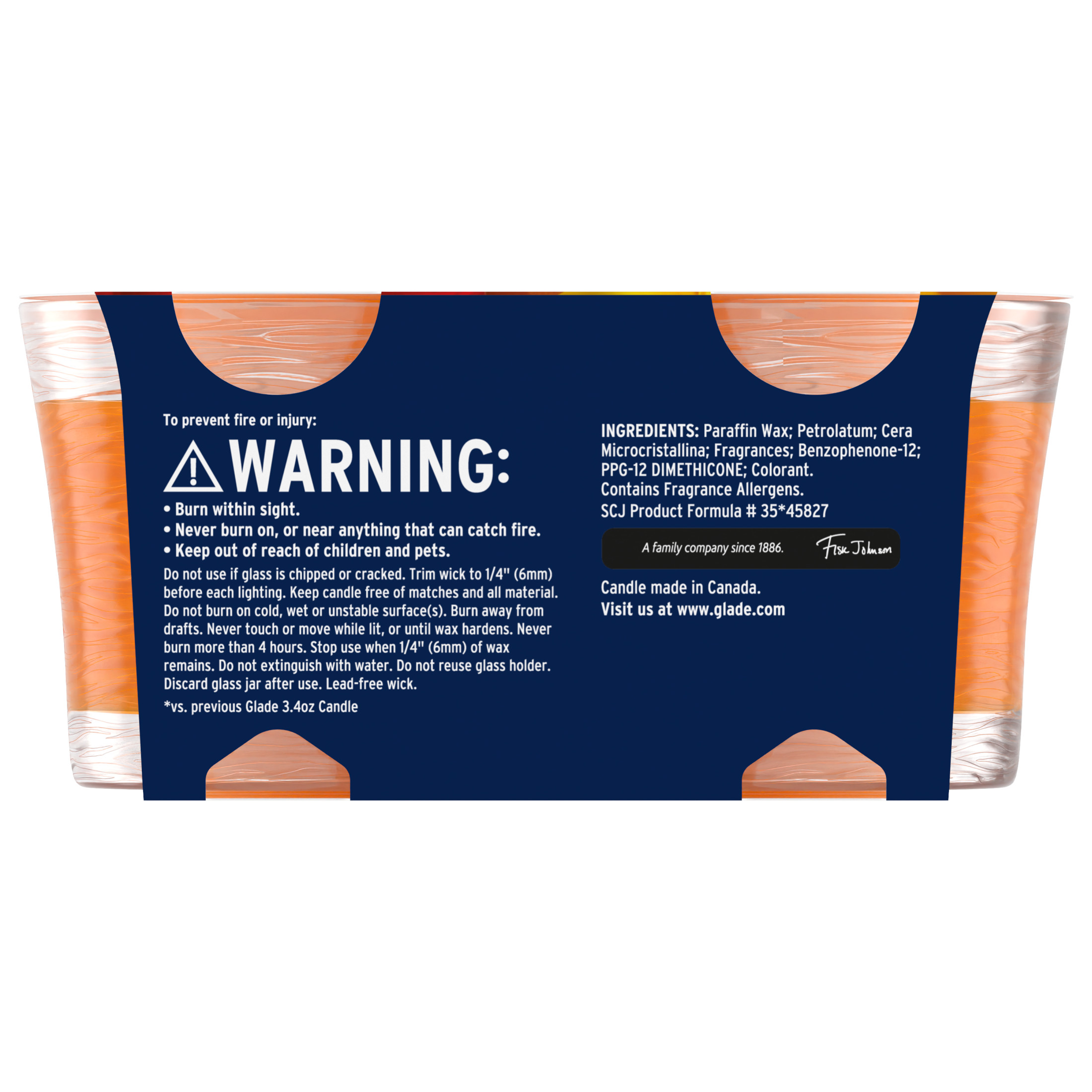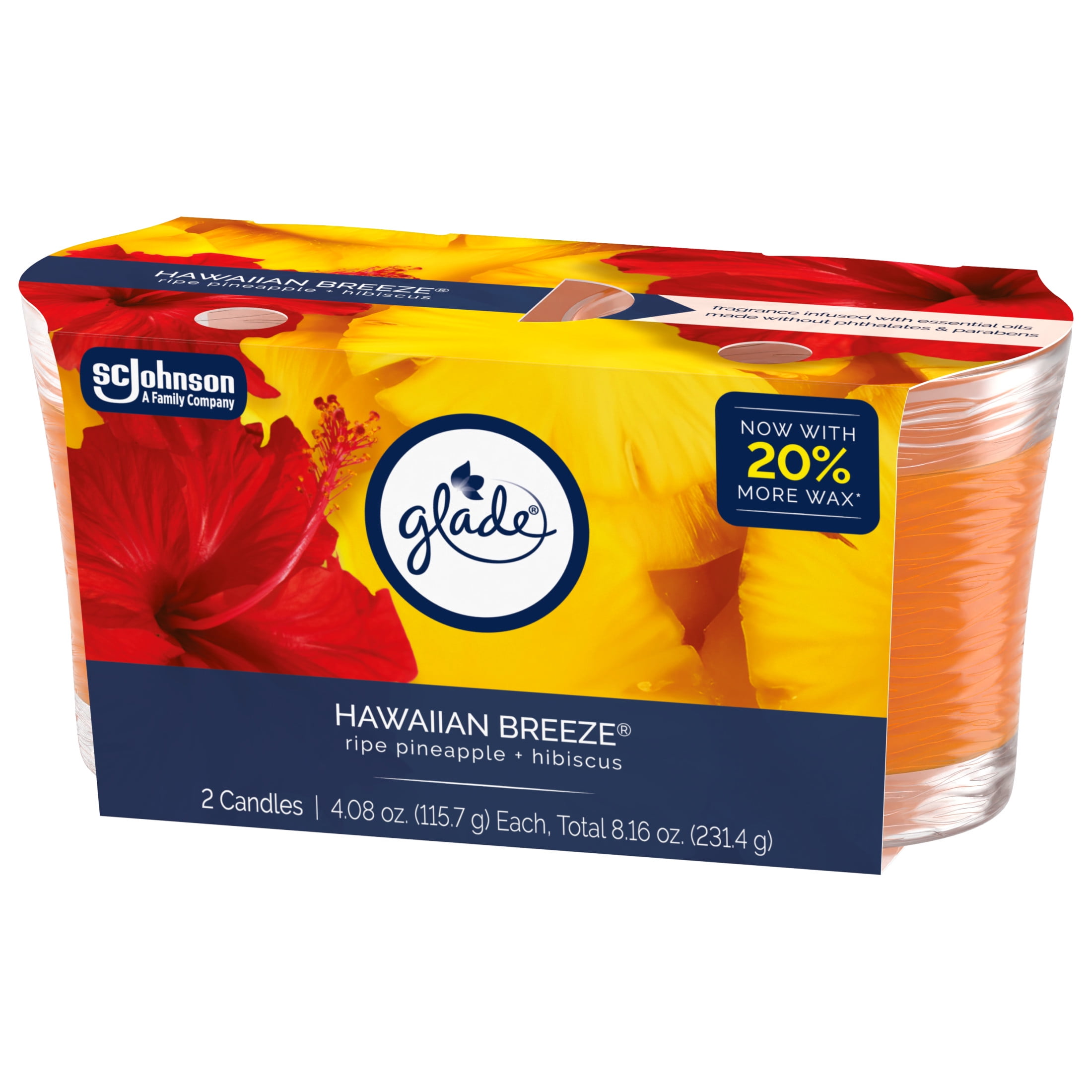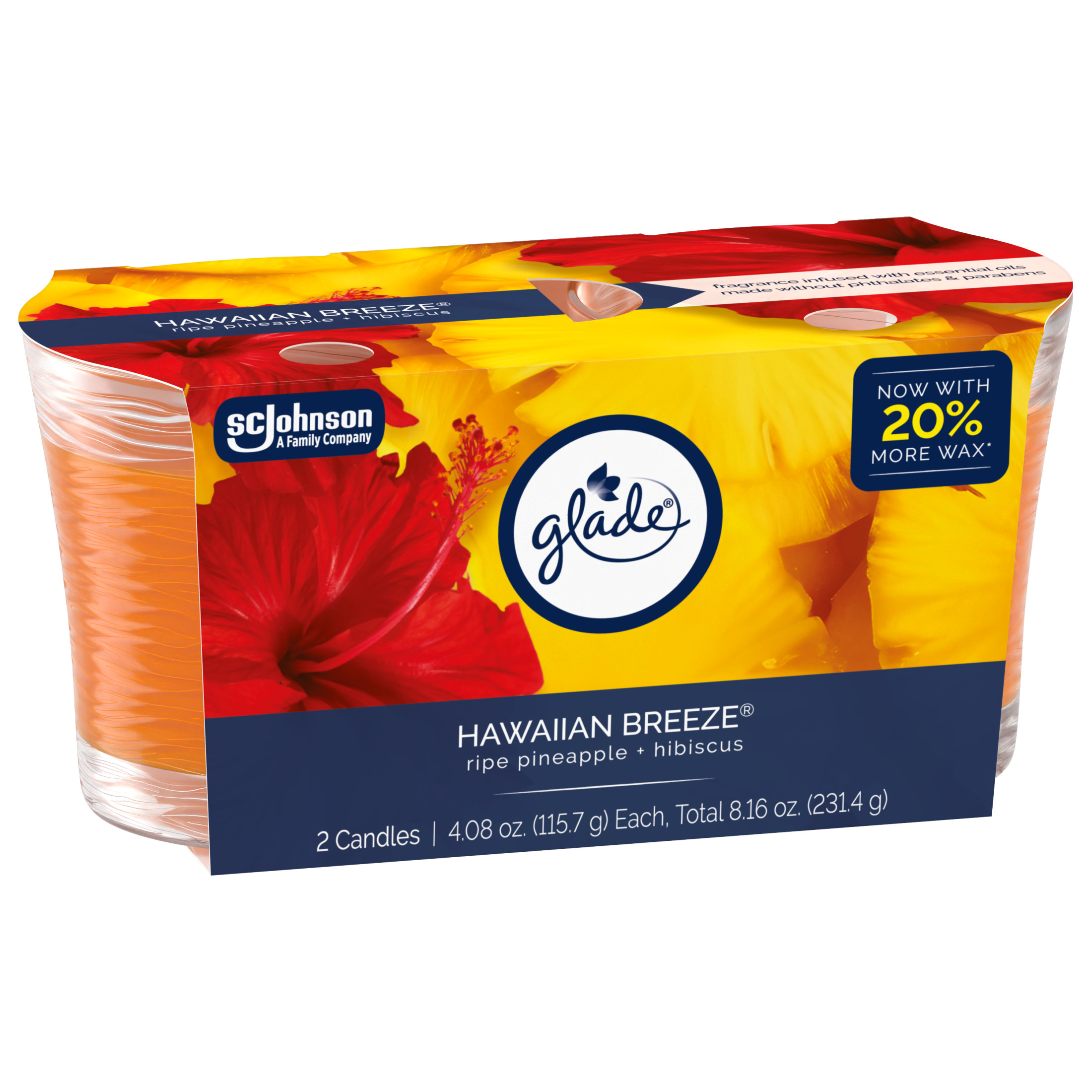 Meet your next go-to candle, and reward your ritual. The Glade Hawaiian Breeze single wick candle is just what you need to ignite your self-care routine. Surround yourself with scent that’s been expertly crafted by master perfumers. Whether it’s Me-time with a book or a long luxurious bath, these Glade jar candles will transport you to an instant vacay. The fragrance is infused with essential oils and features the relaxing notes of ripe pineapple, hibiscus, and peach nectar. You’ll definitely want to take a second smell and set a relaxing vibe. While you’re relaxing, it’s also good to know that these small scented candles are made without phthalates, parabens, formaldehyde or nitro musks. The warm glow and crafted scent quickly create a special atmosphere. So go ahead and discover the expertly crafted Glade candle collection. It delivers the scent treat you’ve been searching for. With the Glade Hawaiian Breeze candle, you’ve found your self-care soulmate._x000B__x000B_Candle burning tips: For best performance, burn two to four hours at a time. This will maximize the life of your candle. Trim the wick to 1/4 inch each time before you burn, and be sure to remove any wick debris in the candle before lighting. Do not touch, lift or move a burning candle. Wait until the wax has cooled and hardened before touching a candle. For optimal performance, keep burning candles away from drafts, vents and air currents. Stop using your Glade Jar Candle when 1/4 inch of wax remains. Be sure the candle jar is placed on a stable, heat-resistant surface. Never place flammable materials near a candle. Never burn candles unattended. Do not burn candles where they can be knocked over by children, pets or anyone else.