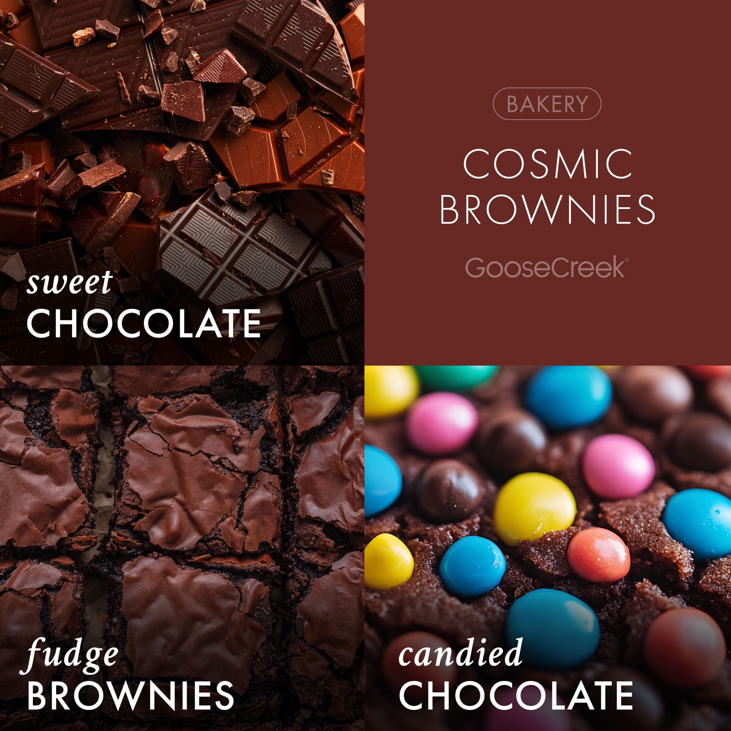 - Sweet Chocolate, Fudge Brownies, & Candied Chocolate