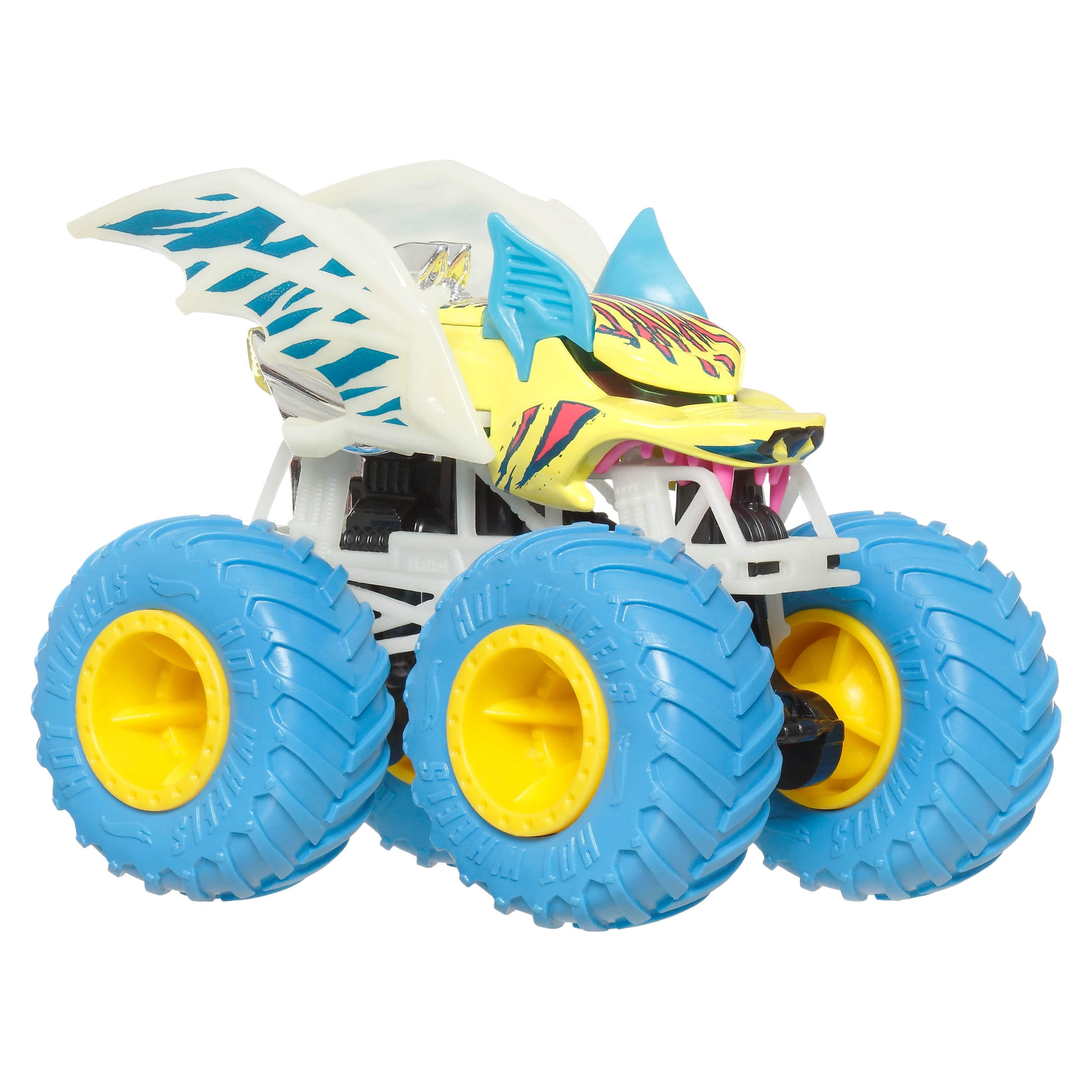 Go big day or night with a Hot Wheels Monster Truck that glows in the dark!