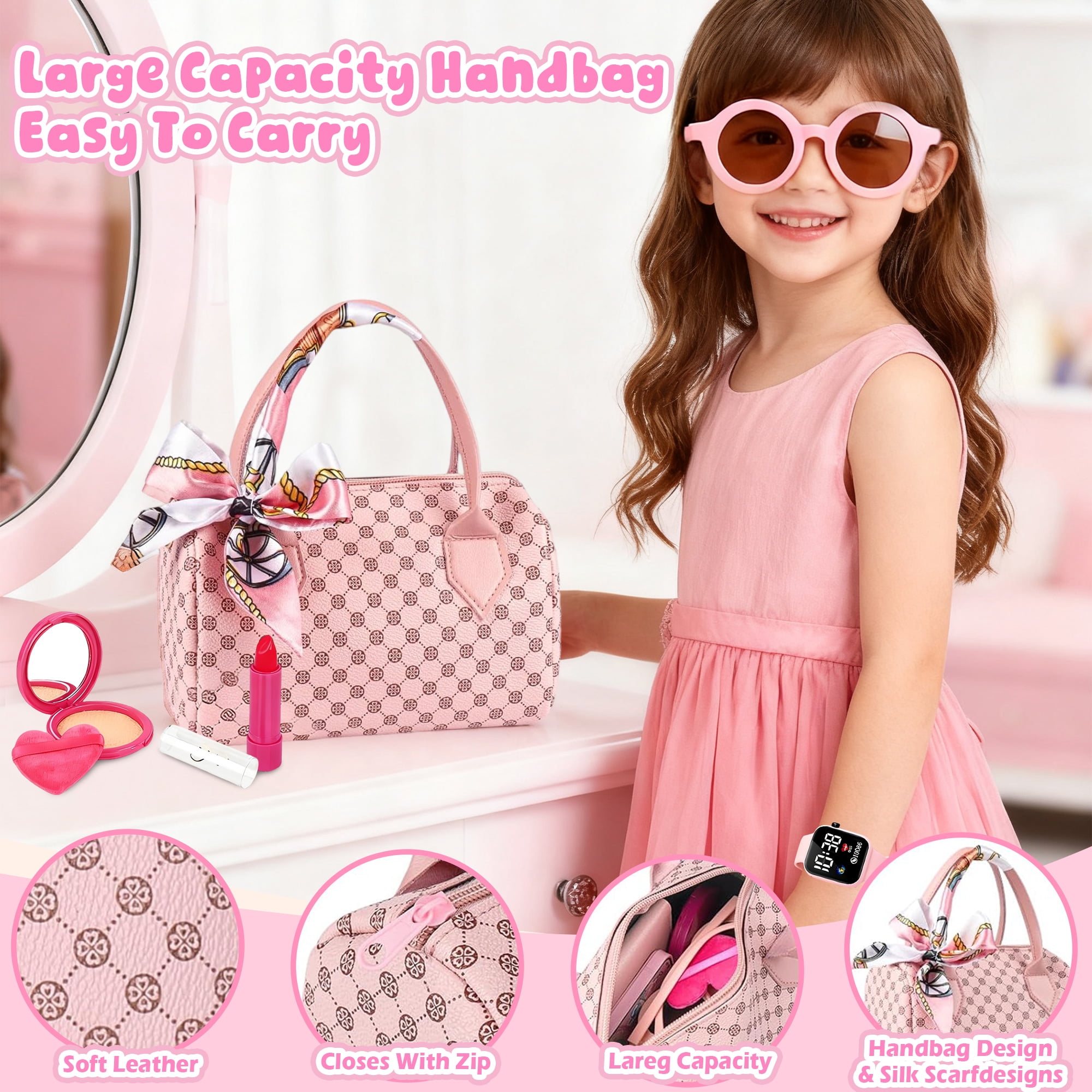 • Durable Design: The soft faux-leather purse has smooth edges and a zip closure, complemented by safe, lightweight accessories suitable for small hands.