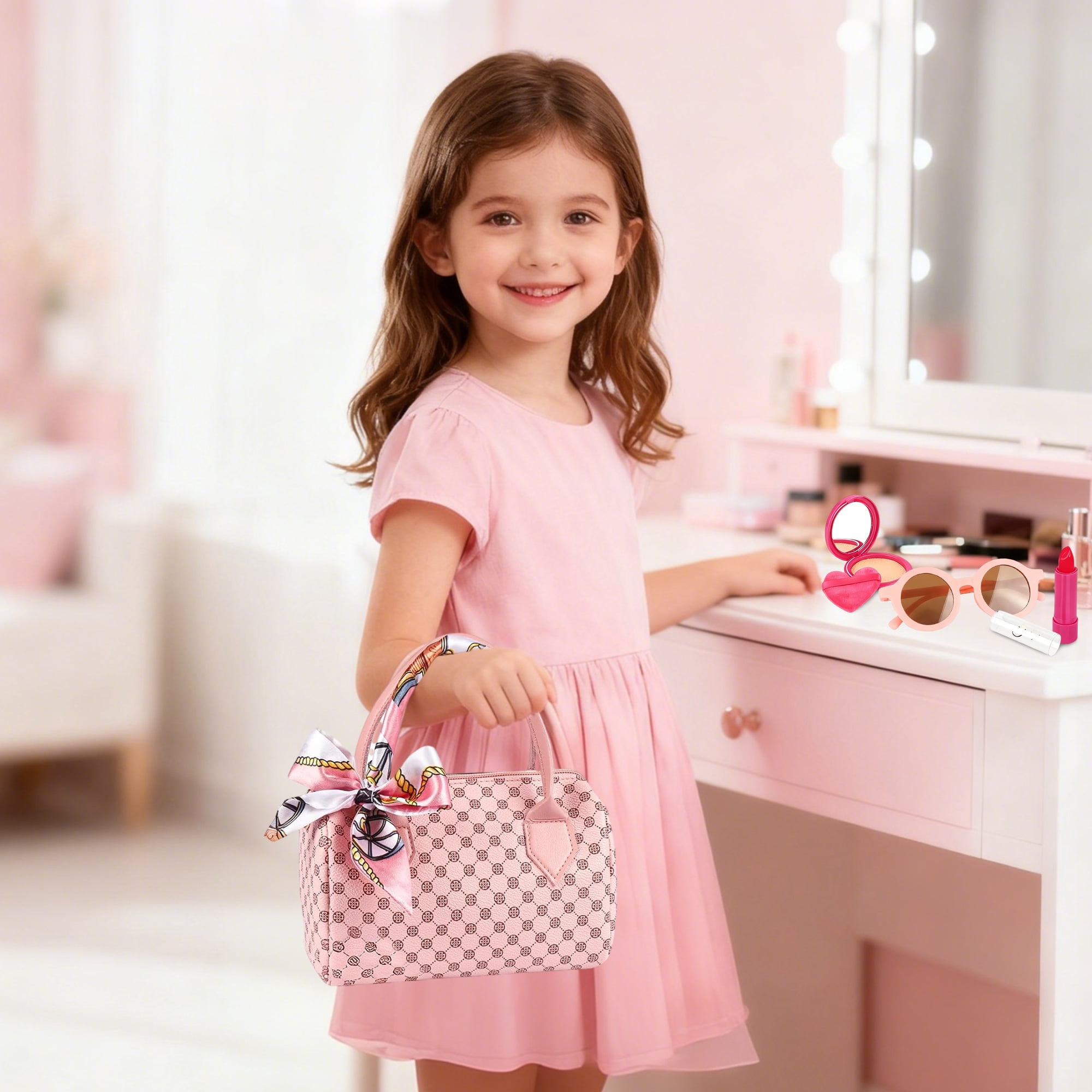 JBeeCtrl Play Purse for Girls Toddler Purse with Pretend Makeup Girls Toys 2 3 4 5 Years Old Princess Toys Pretend Play for Toddlers 3-5 Christmas Birthday Gifts for Girls 3 4 5 6