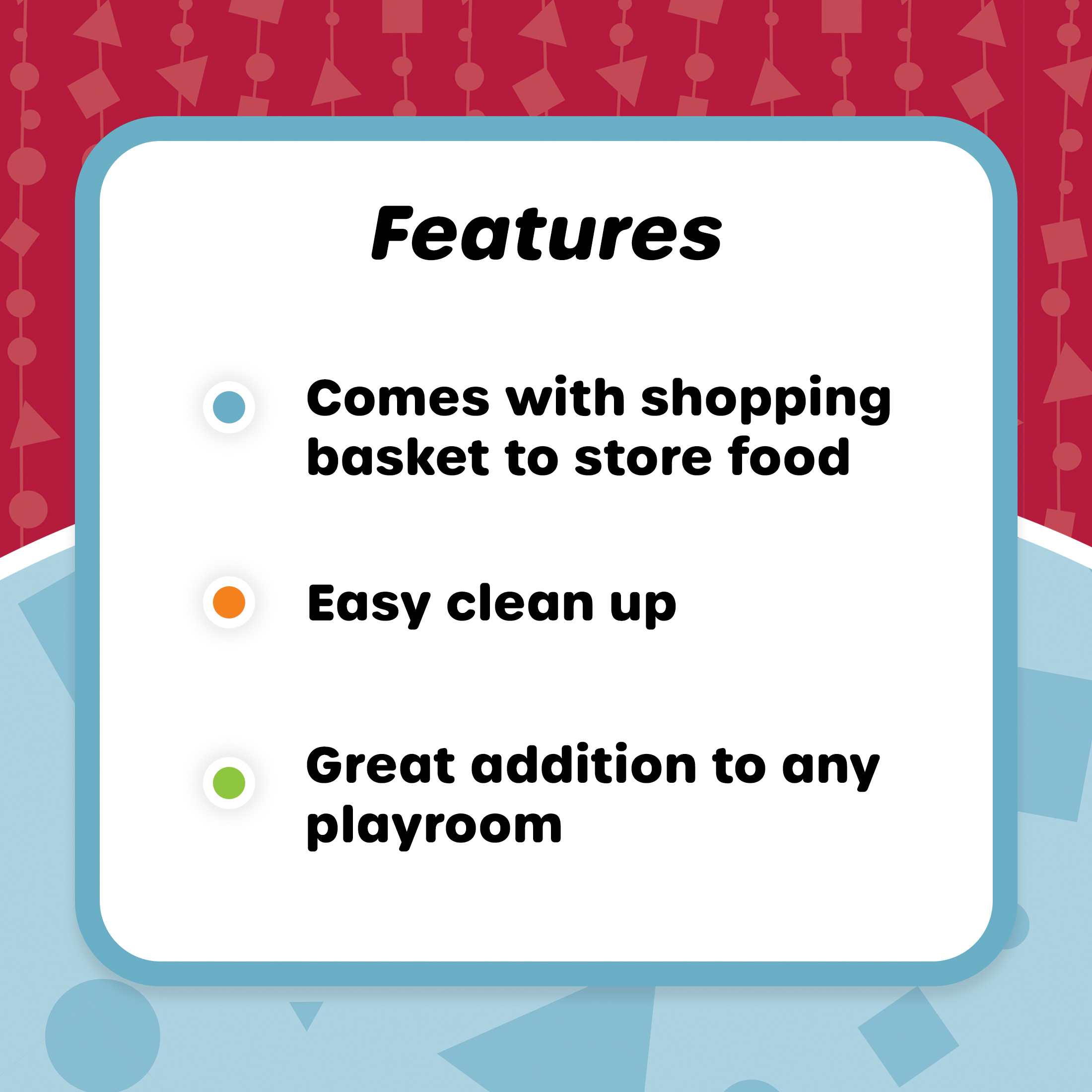 • Engaging Playtime: Encourages hours of active and engaging fun, allowing children to role-play serving meals or shopping at a supermarket.
