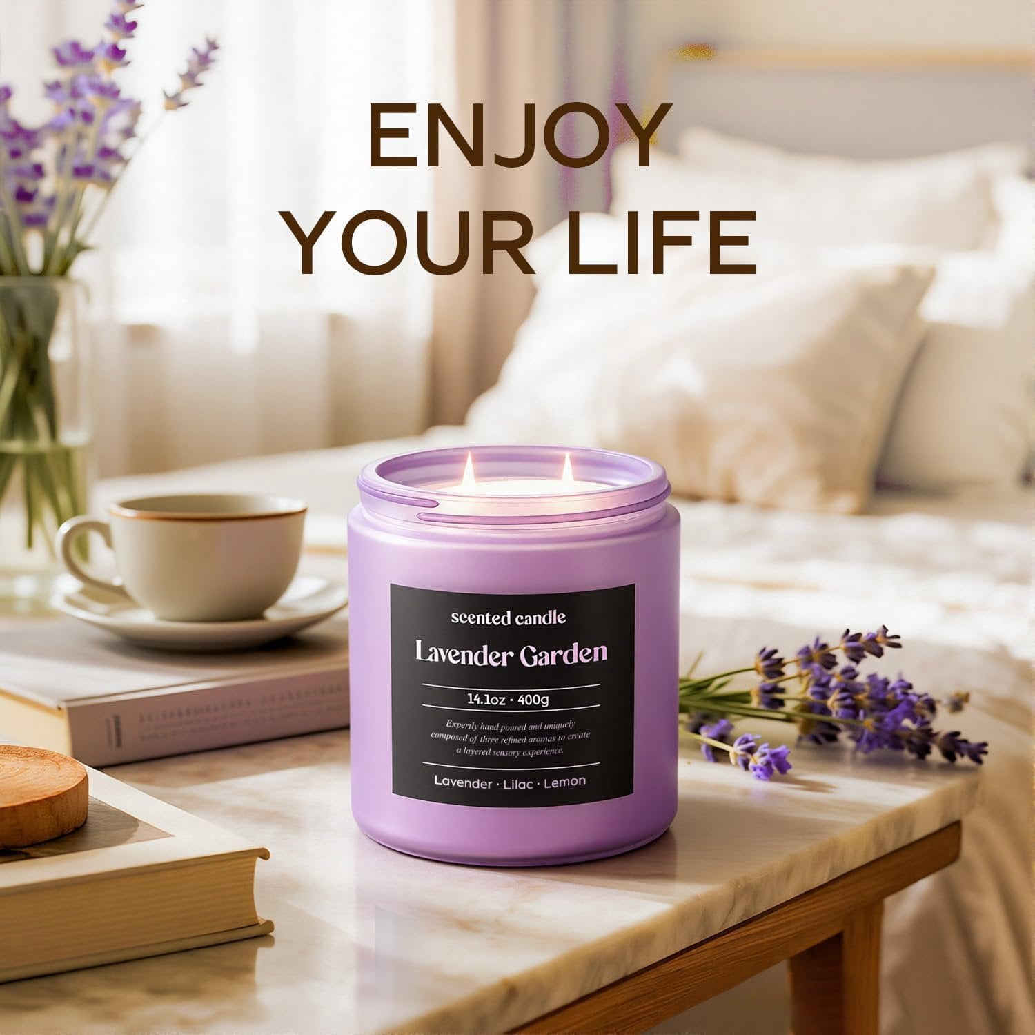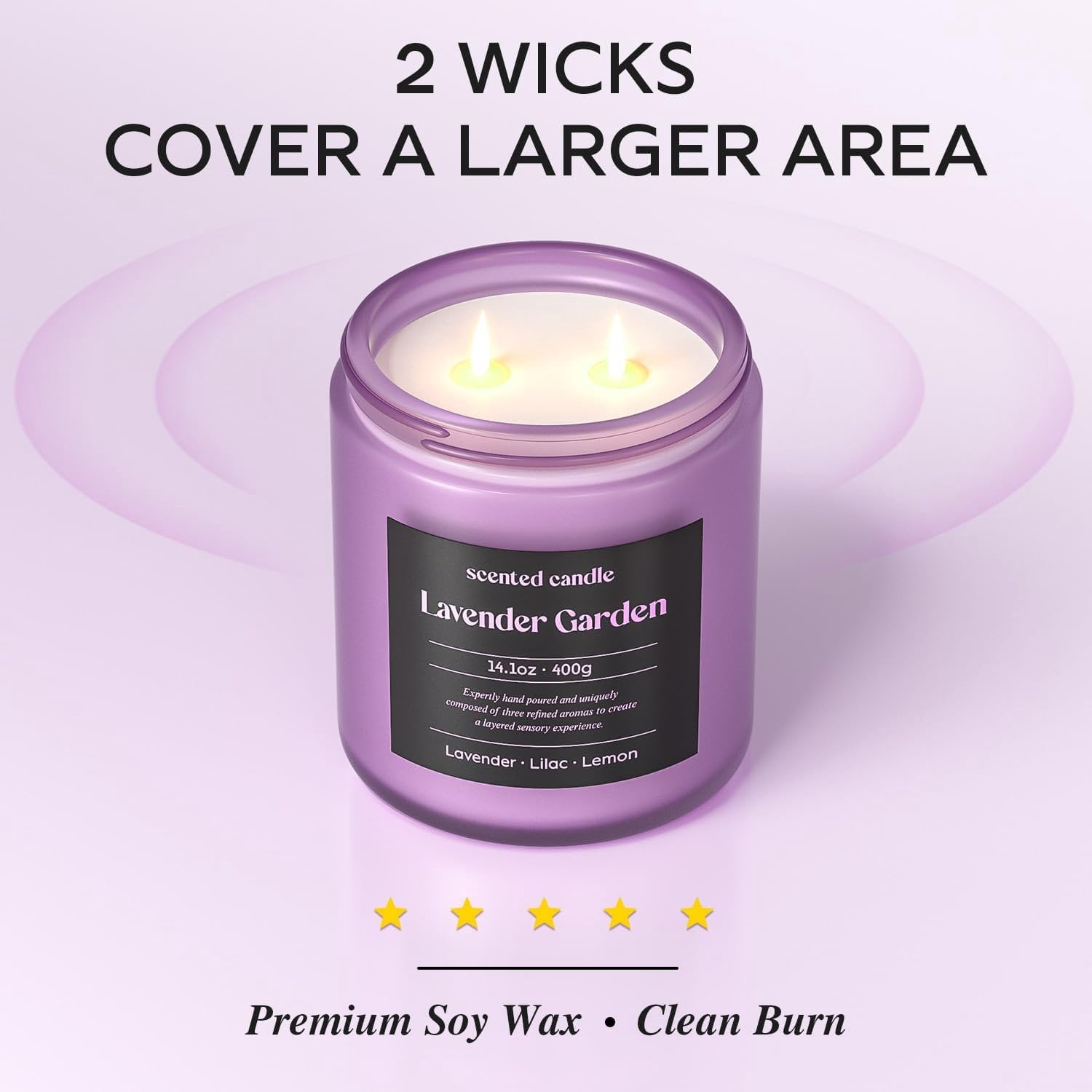 Lavender Candle, 14.1 oz Scented Candles for , 2 Wicks Blended Scents Candles for Women and Men, Birthday Gifts for Women (Lavender+Lilac+)