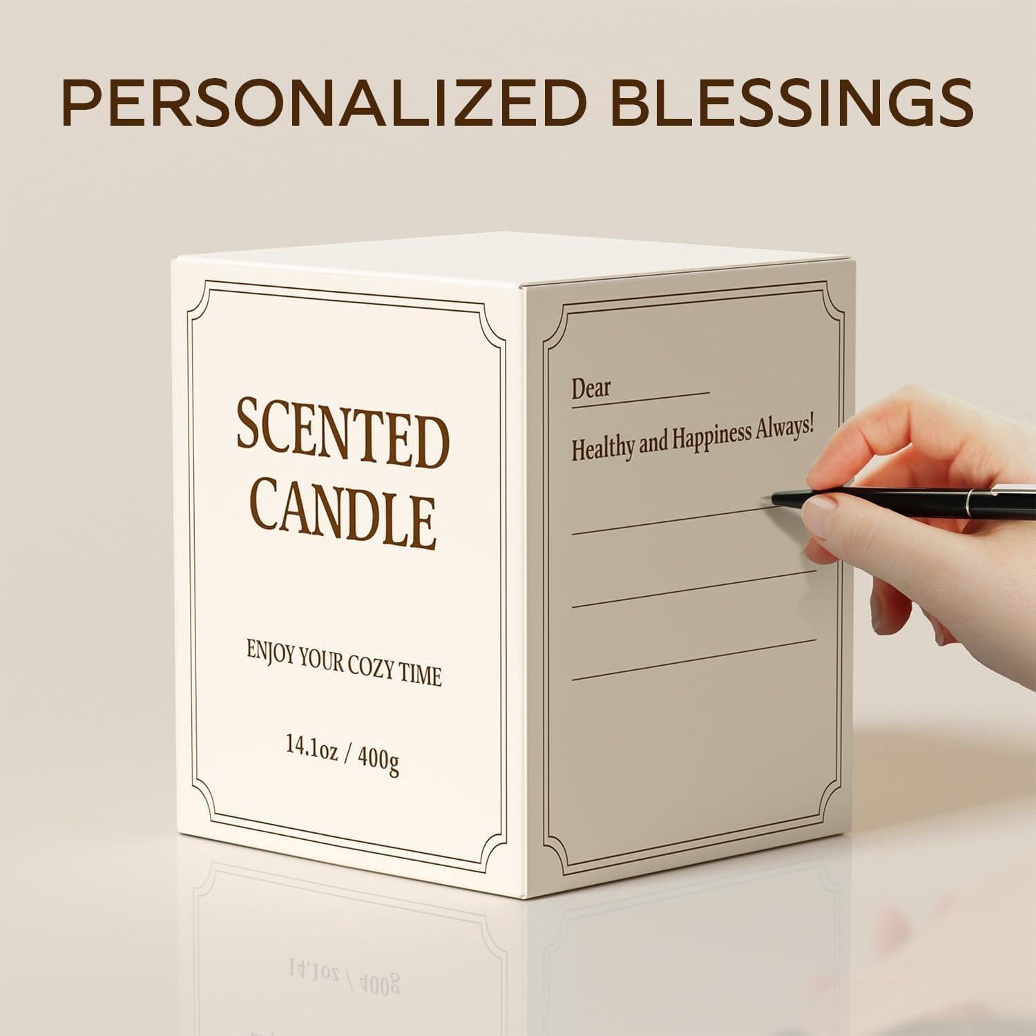 【Elegant Packaging, Personal 】Each candle comes in a beautifully designed package that reflects elegance and attention to detail, making it an ideal option for special occasions. The packaging also features a dedicated space where you can handwrite your own blessing or personal note, turning every candle into a and heartfelt present filled with warmth and love.
