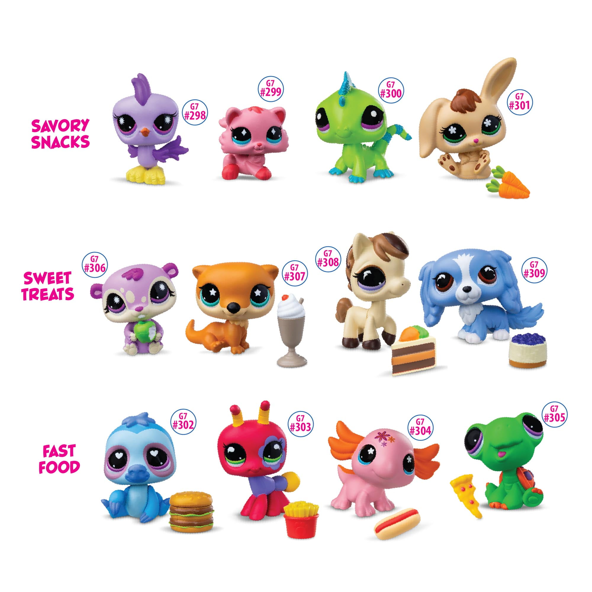 - Themed Foodie Fun: Pets are styled after three yummy themes: Sweet Treats, Savory Snacks, or Fast Food.