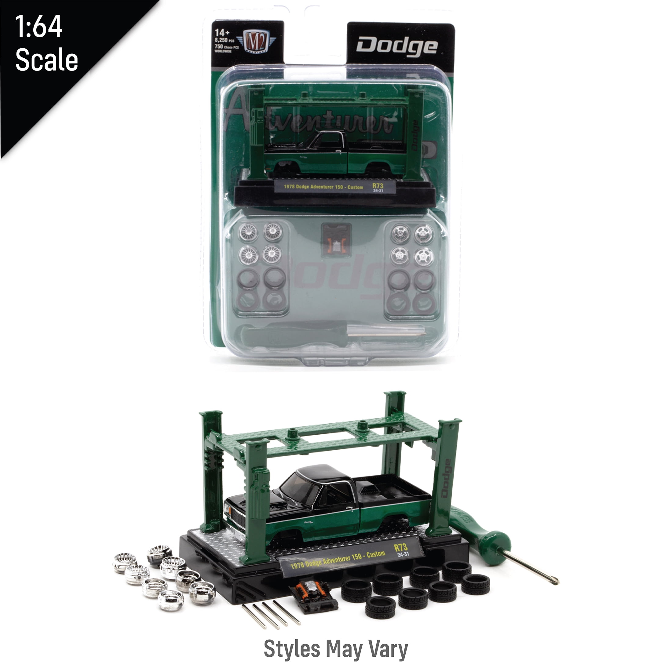 - Detailed Replicas: Includes licensed replicas from Dodge, Ford, GM, and Nissan with about 30 parts, including a detailed interior, jeweled headlights, and taillights.