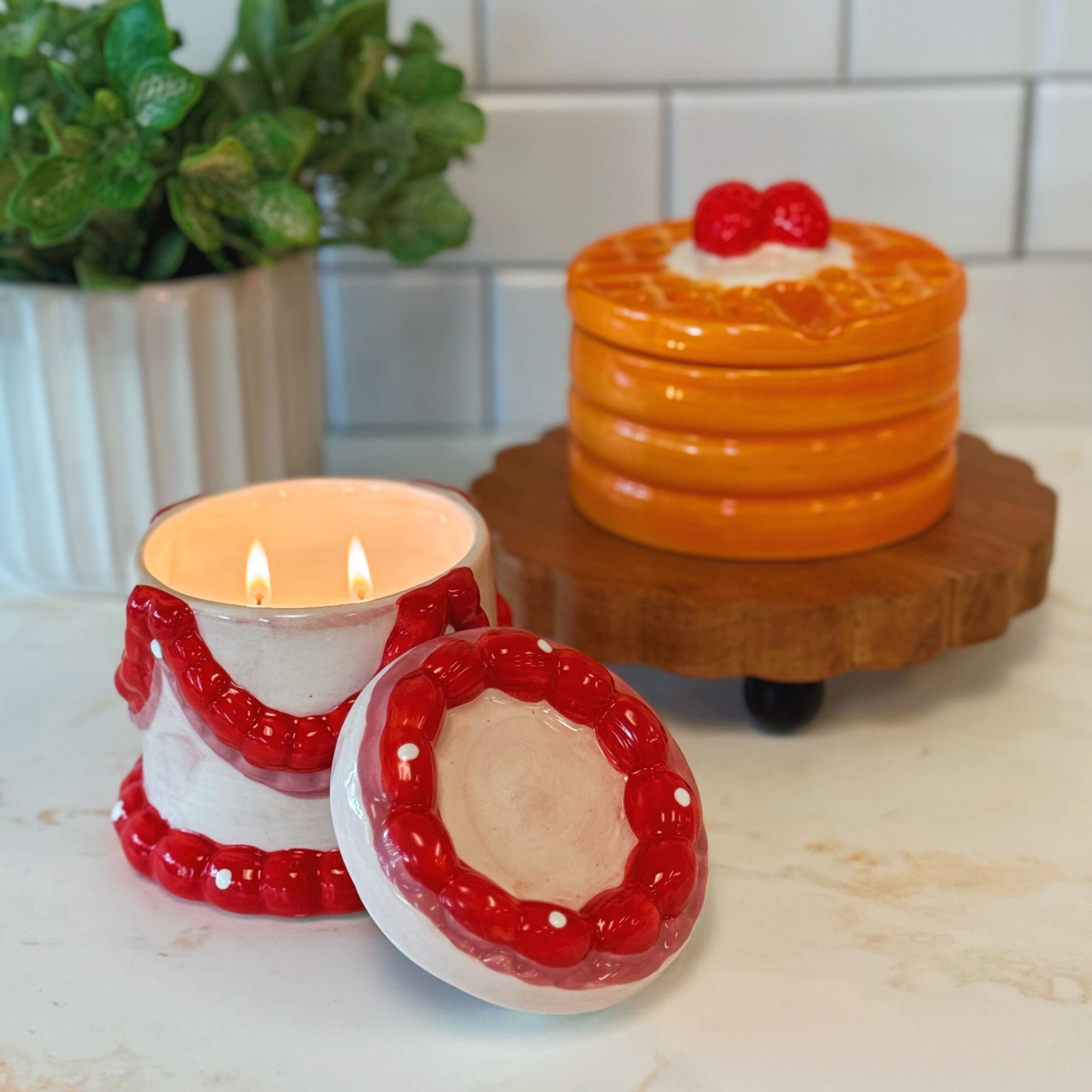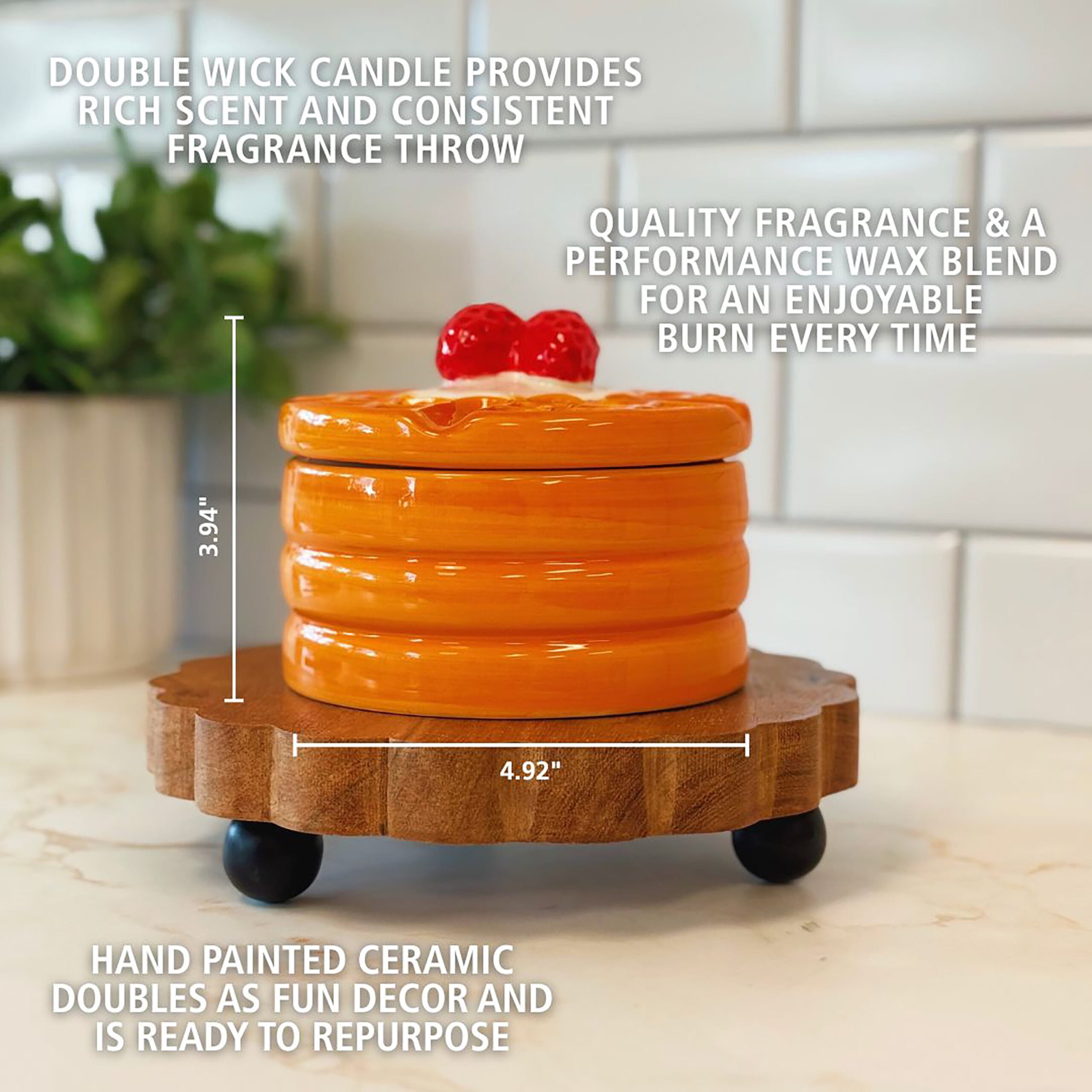 • Includes: 12 oz Ceramic Waffle Shape Candle