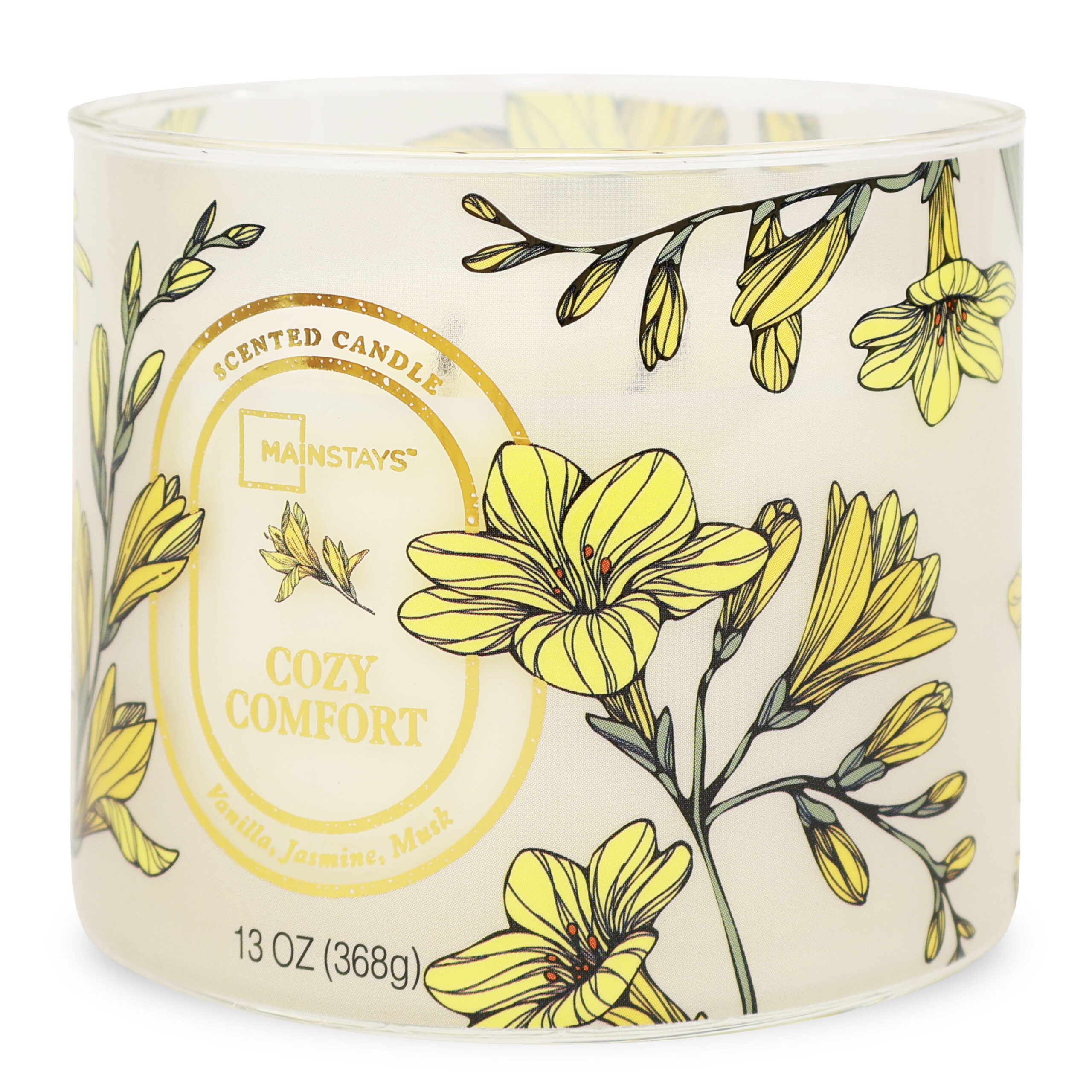 Mainstays 3-Wick Floral Scene Scented Jar Candle, Cozy Comfort, 13oz