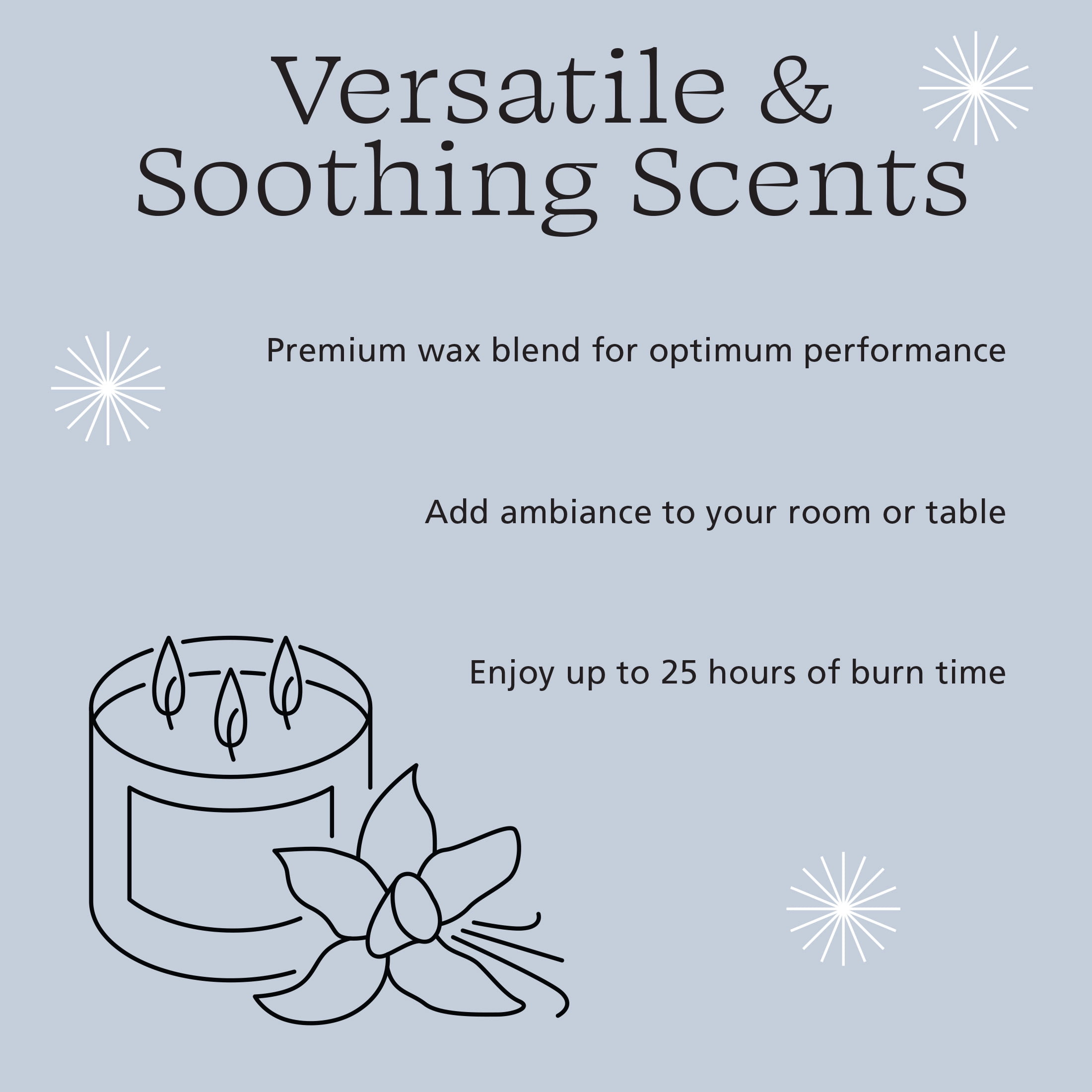 - Long-Lasting: Burns for up to 25 hours, providing extended enjoyment.
