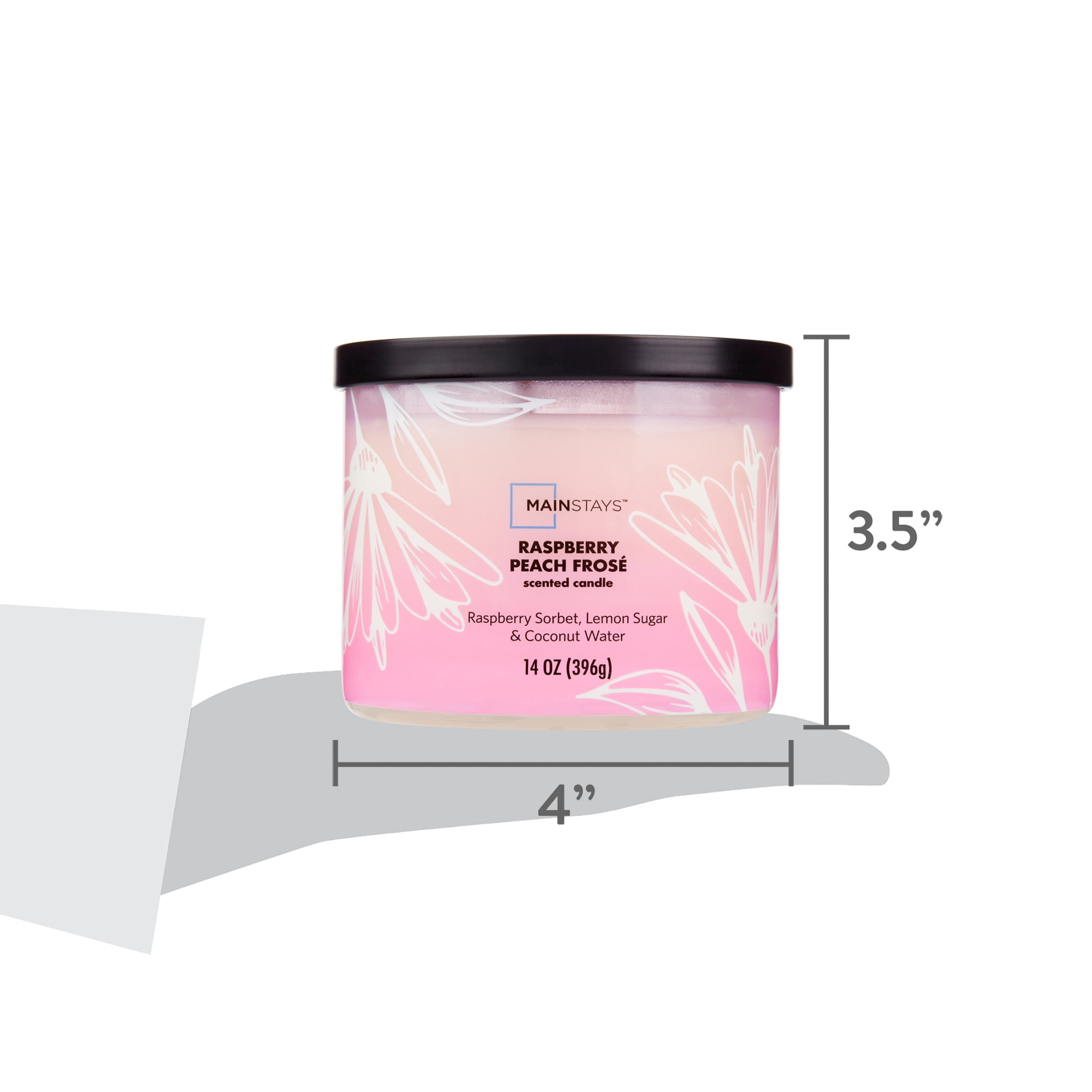 Bring home a touch of fruity freshness with the Mainstays 3-Wick Ombre Wrap Raspberry Peach Candle. This candle fills your space with a sweet, refreshing blend of raspberry sorbet, juicy peach, lemon sugar, and coconut water. Its ombre pink wrap design adds a stylish accent that looks just as good unlit as it does glowing. With three wicks, it burns evenly to create a welcoming atmosphere, whether you’re hosting friends or simply relaxing. The Mainstays 3-Wick Ombre Wrap Raspberry Peach Candle makes any room feel warm, inviting, and beautifully fragrant.