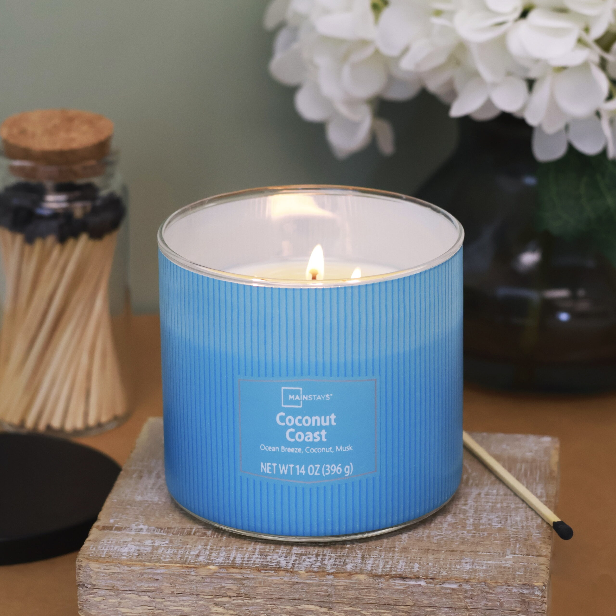 Mainstays 3-Wick Textured wrapped candle, Coconut Coast Fragrance, 14oz