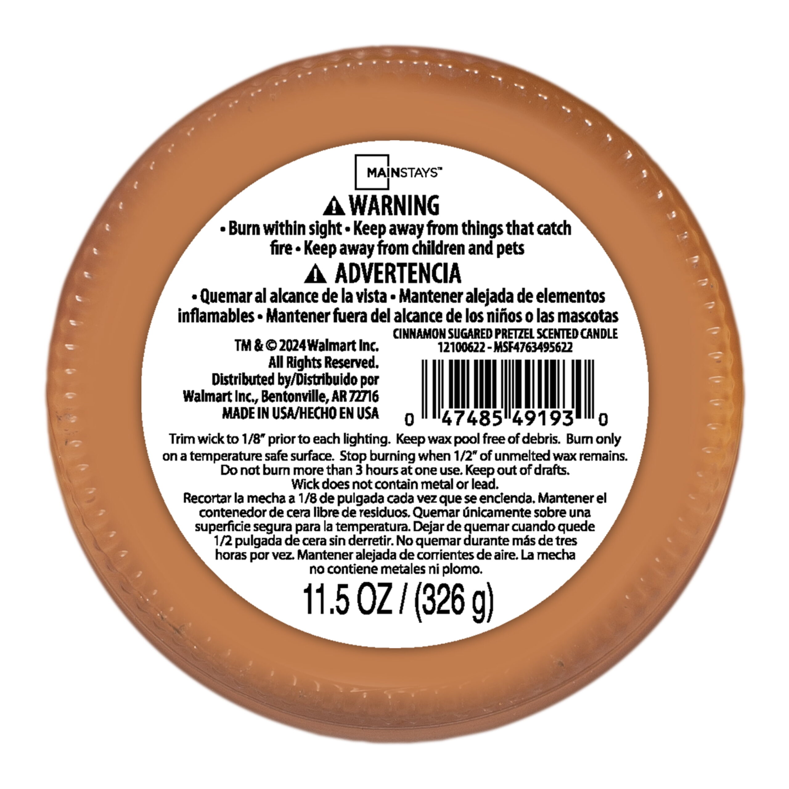 Mainstays Cinnamon Sugared Pretzel Scented 3 Wick Candle, 11.5 oz.