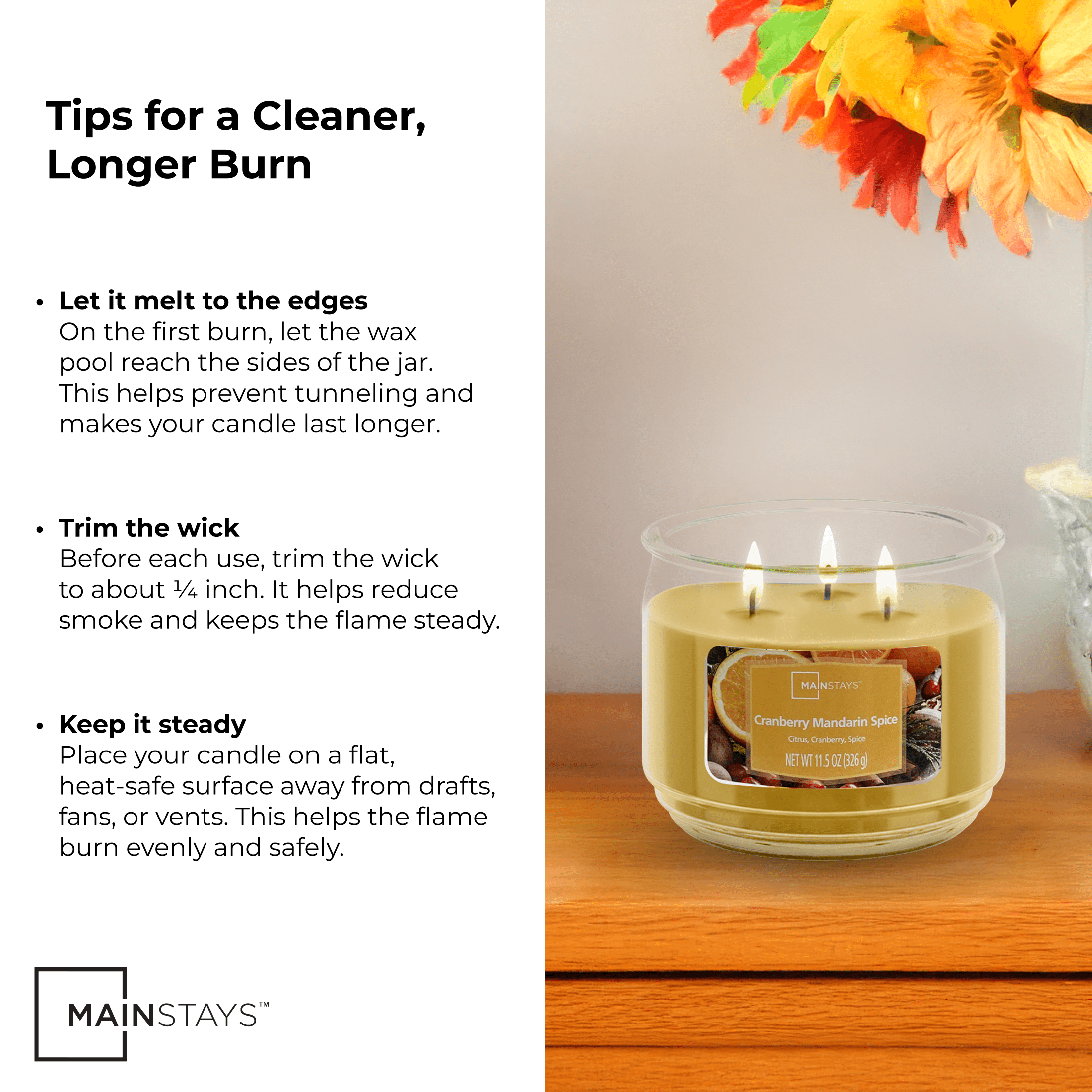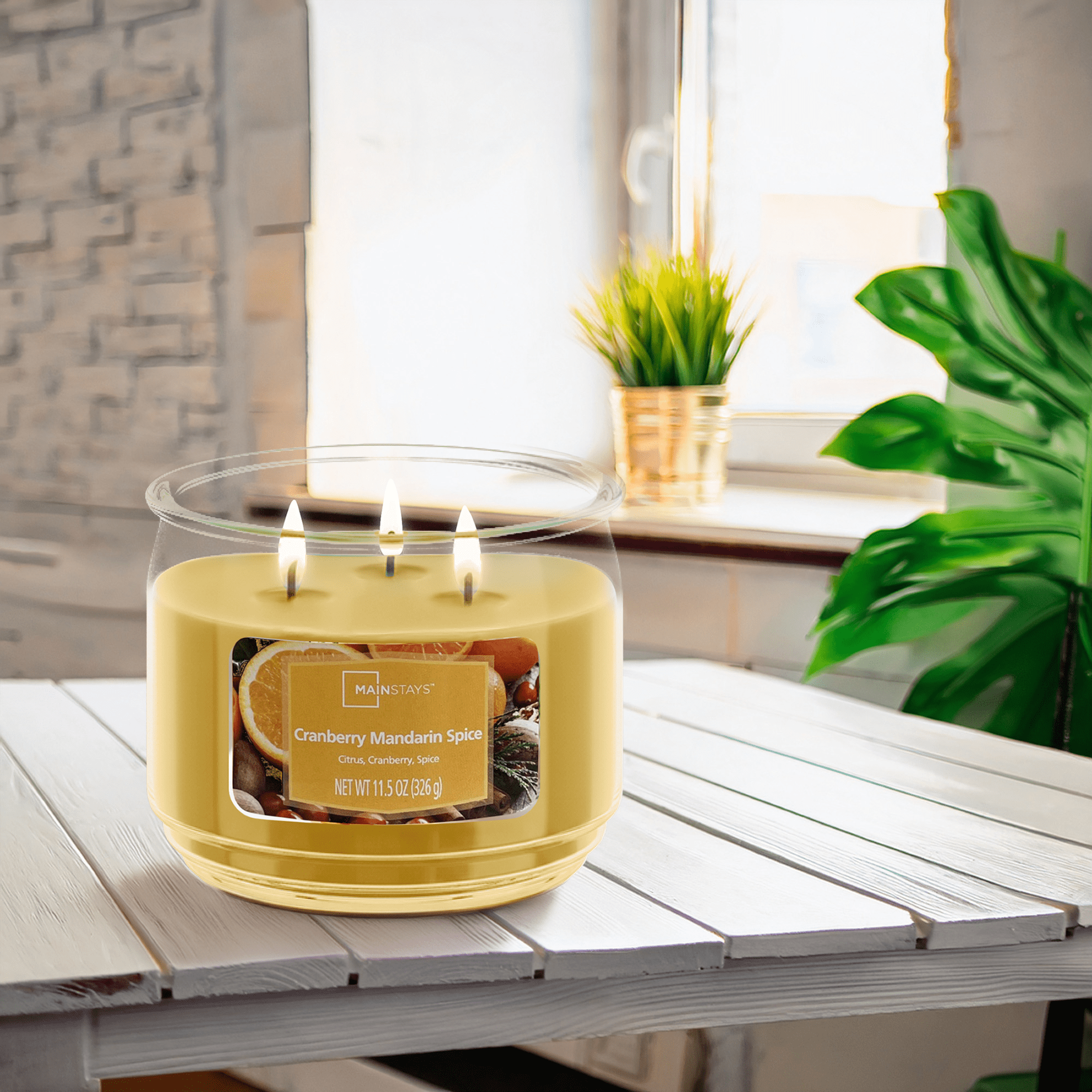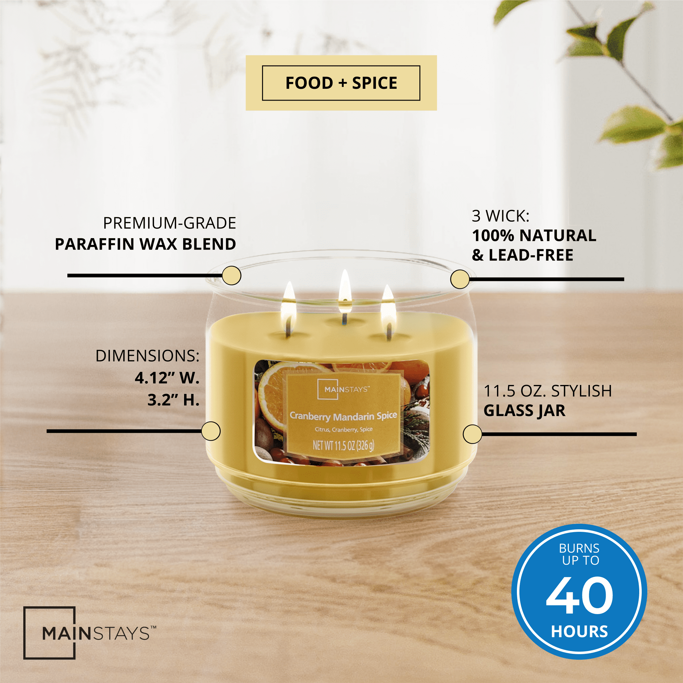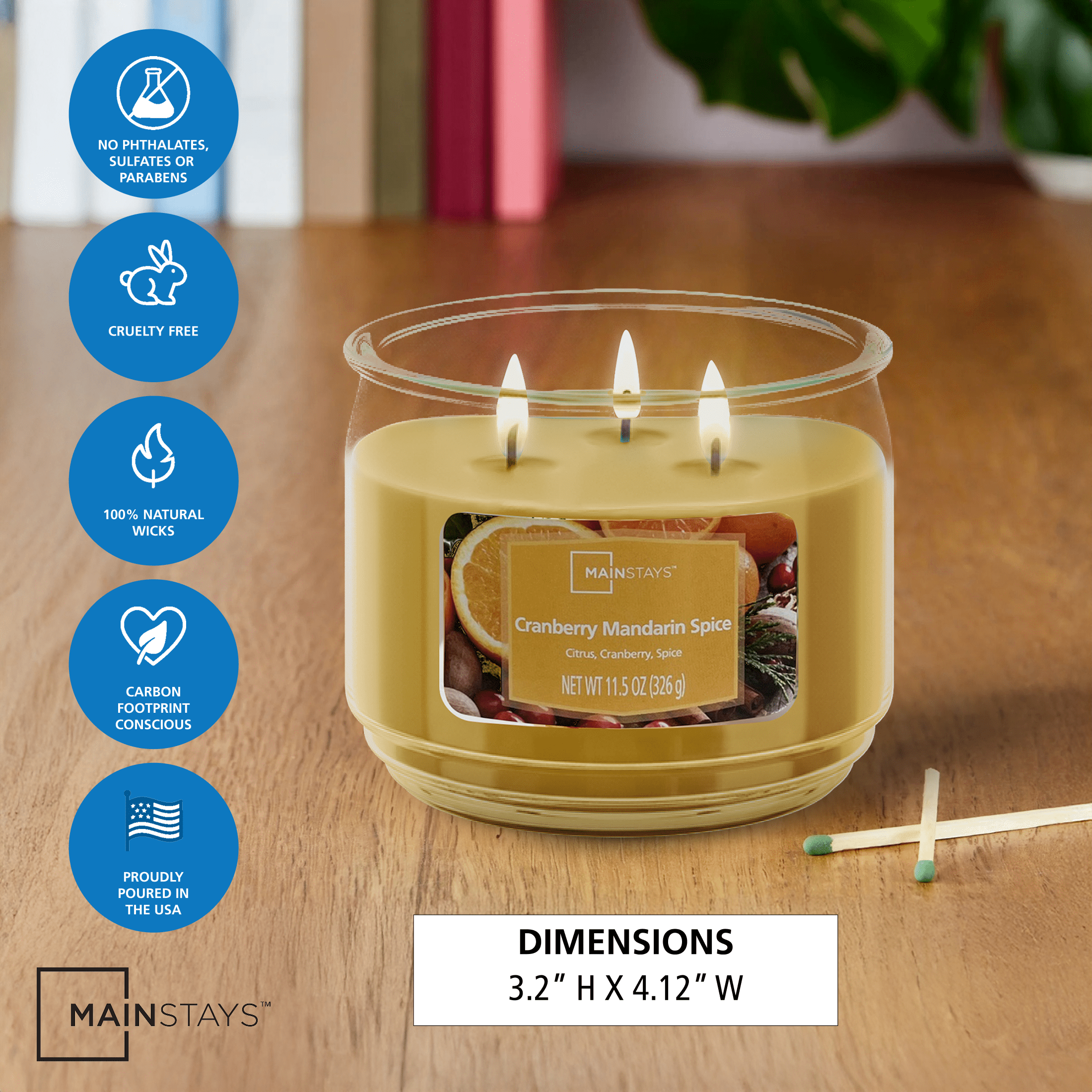 Mainstays Cranberry Mandarin Spice Scented 3-Wick Glass Jar Candle, 11.5 oz
