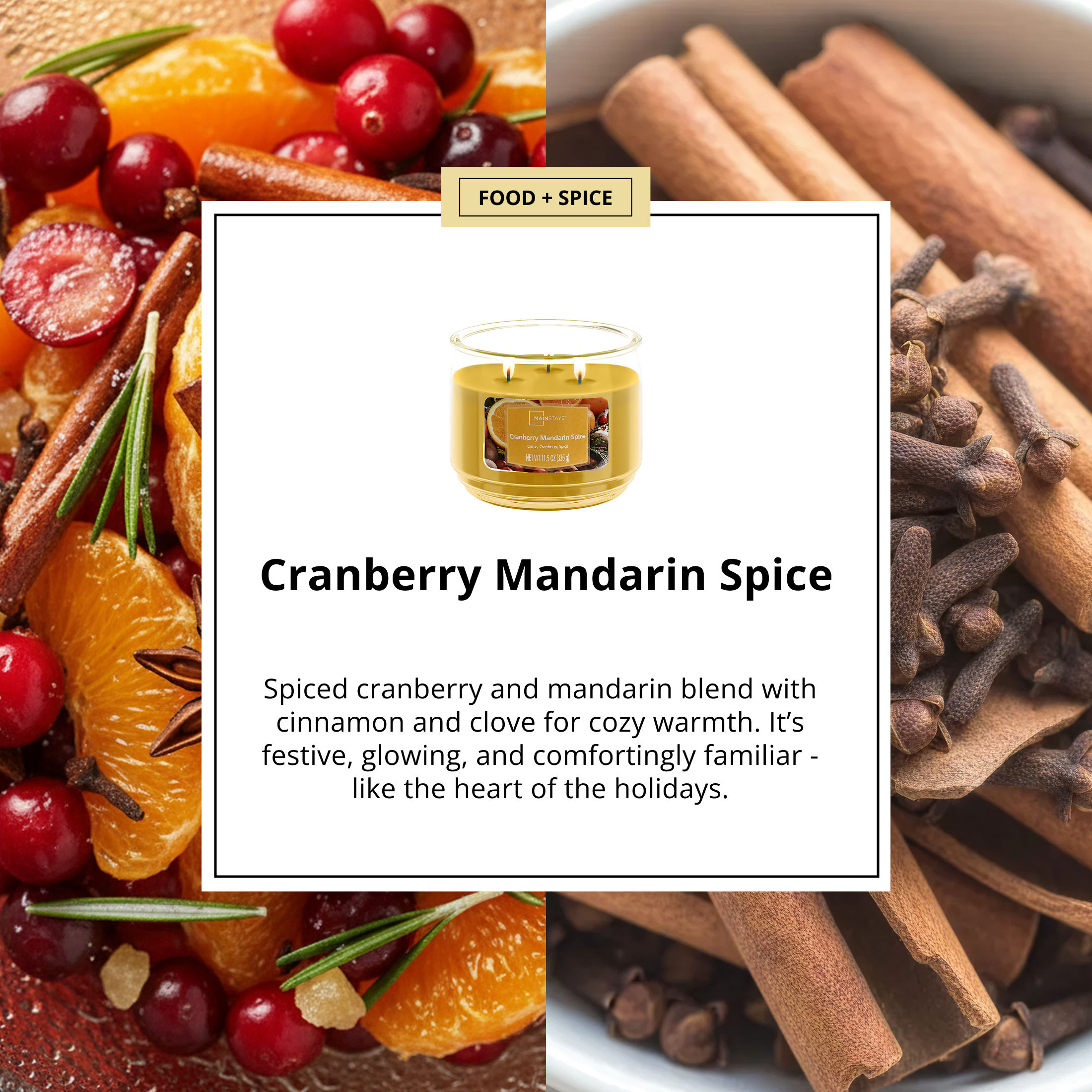 Festive Fragrance: Features a vibrant Cranberry Mandarin Spice aroma, blending mandarin, sweet orange, Satsuma, frosted mint, blushed fig, and sugar cane for a layered, seasonal scent.