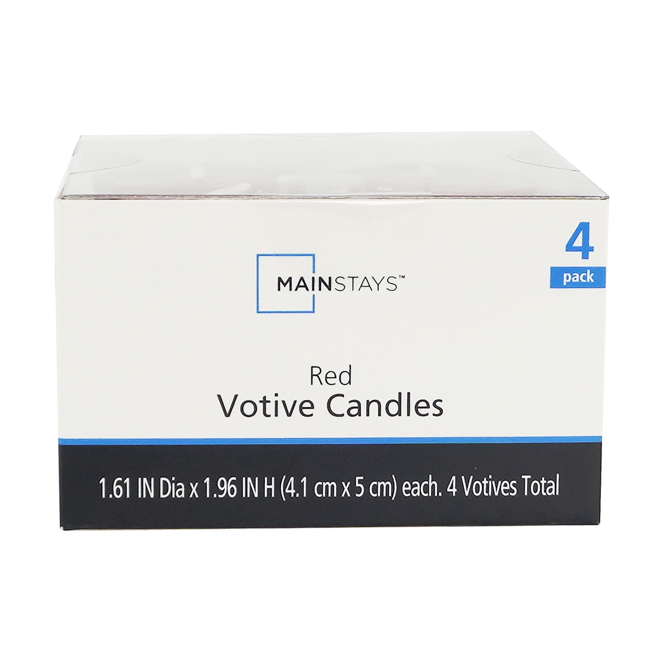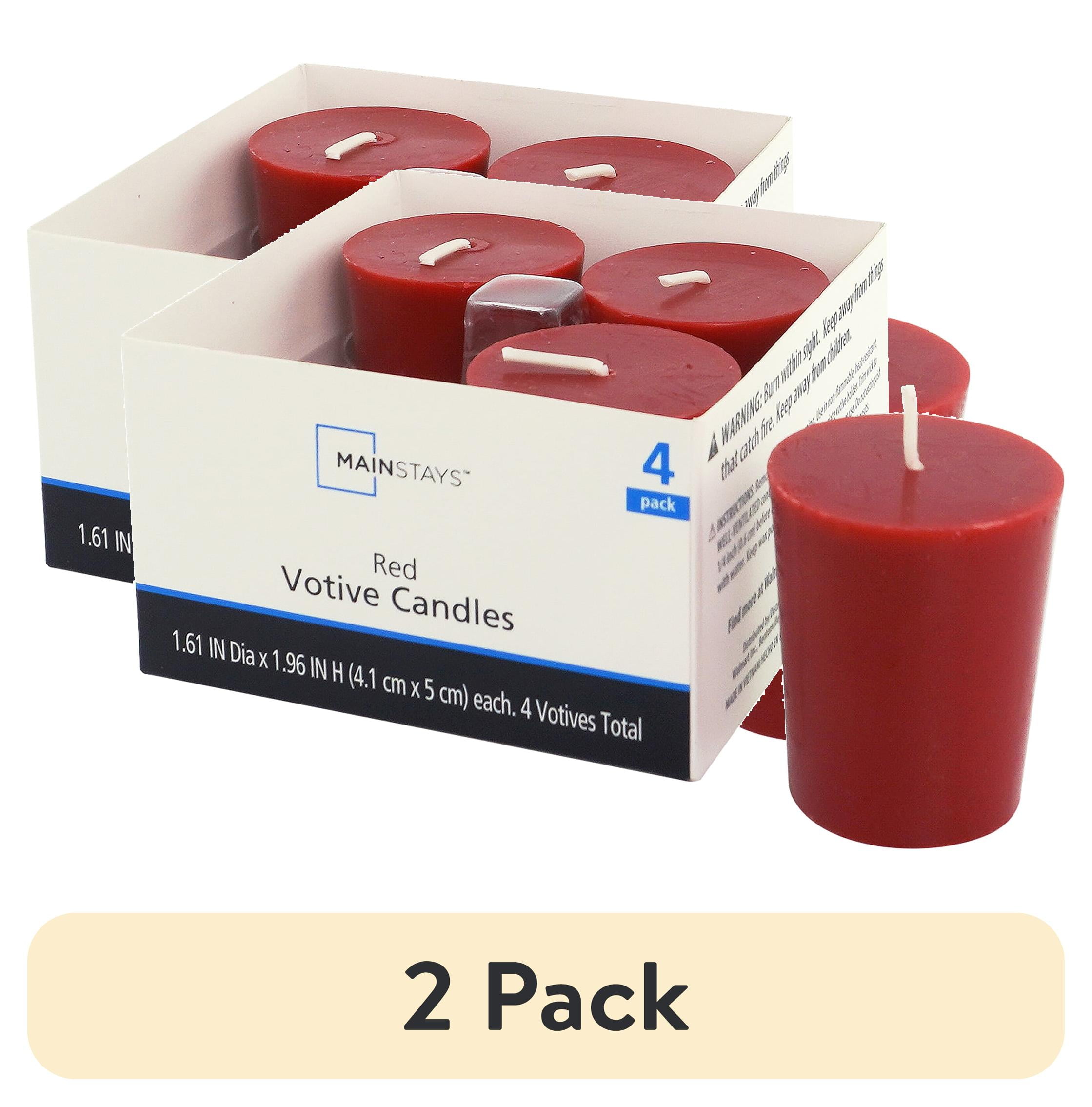 Brighten any space with Mainstays Votive Candles. These red candles are perfect for special occasions such as weddings, parties, and brightening your home décor. Use them as centerpieces, party favors, or window decorations. They’re also perfectly sized for all kinds of decorations and even arts and crafts. Made from high-quality wax, these unscented candles provide a clean and consistent burn. Pair them with other unscented Mainstays Candles, like mottled pillars and tapers, for a coordinated and organized look. Always use with a glass tray or candle holder, and keep away from children, pets, and flammable objects. Enjoy the warm glow of Mainstays Votive Candles.