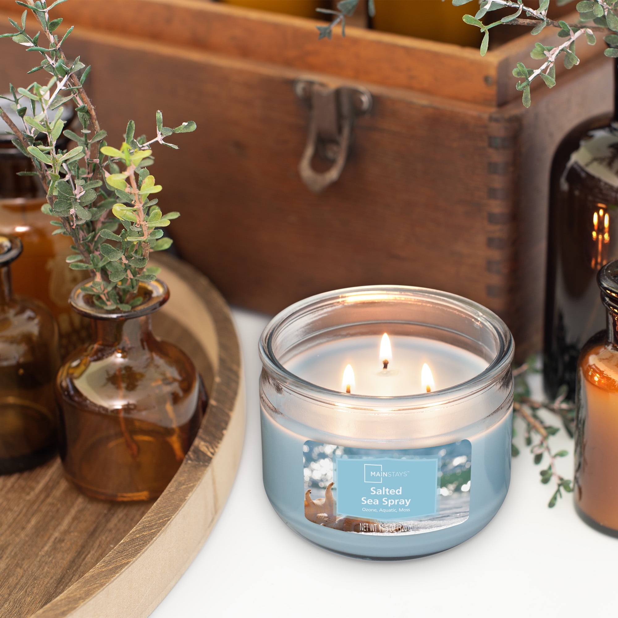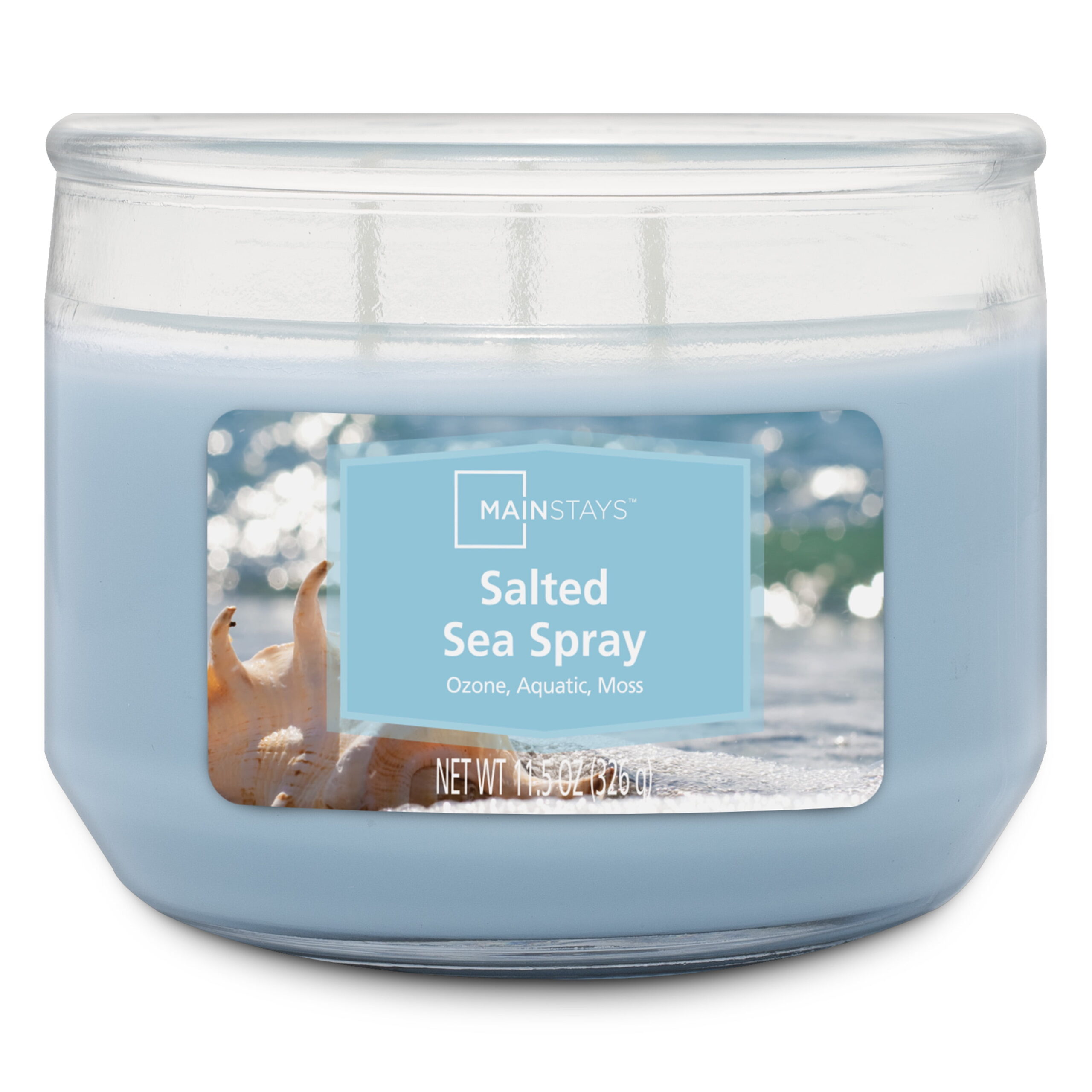Mainstays Salted Sea Spray Scented 3 Wick Candle, 11.5 oz. Salted Sea Spray scented candles offer a captivating and invigorating olfactory journey that transports you to the rugged beauty of a windswept coastline, capturing the essence of crisp sea air, salty ocean waves, and the earthy allure of coastal moss. These candles are thoughtfully crafted, featuring prominent notes of ozone, aquatic, and moss that blend harmoniously to create a refreshing and immersive fragrance. At the heart of this fragrance is the bracing and mineral note of ozone. This central note infuses the candle with the clean, airy, and slightly metallic aroma of ocean breezes. It conjures images of an expansive seascape, where the salt-tinged air fills your lungs, providing an invigorating and rejuvenating foundation for the scent journey. Complementing the ozone note is the aquatic and marine scent of the sea. Aquatic notes introduce a refreshing and briny quality to the fragrance, reminiscent of the crashing waves and foamy surf. This note enhances the overall aroma, creating a sense of tranquility and connection to the sea, as if you were standing on the shore, gazing out at the endless horizon. Moss, with its earthy and grounding character, is another essential component of Salted Sea Spray candles. Moss anchors the fragrance with a subtle depth and a touch of coastal authenticity, offering a sense of rugged beauty and coastal wilderness. It adds a hint of complexity and natural elegance to the overall aroma, making it feel like an authentic and immersive coastal experience. Together, these notes create a harmonious symphony of aromas that transport you to a windswept shoreline, where the scent of salted sea spray, oceanic freshness, and coastal moss merge seamlessly. Lighting a Salted Sea Spray scented candle fills your space with the refreshing and invigorating ambiance of a coastal escape. The flickering flame casts a soft and inviting glow, perfect for setting the mood during relaxation, enhancing your mindfulness practice, or simply immersing yourself in the rejuvenating and immersive embrace of ozone, aquatic, and moss. Whether enjoyed alone or shared with loved ones, they provide a sensory journey that envelops you in the refreshing and immersive ambiance of a windswept coastline, making them a cherished addition to your space, a portal to the invigorating and timeless beauty of the sea.day life.