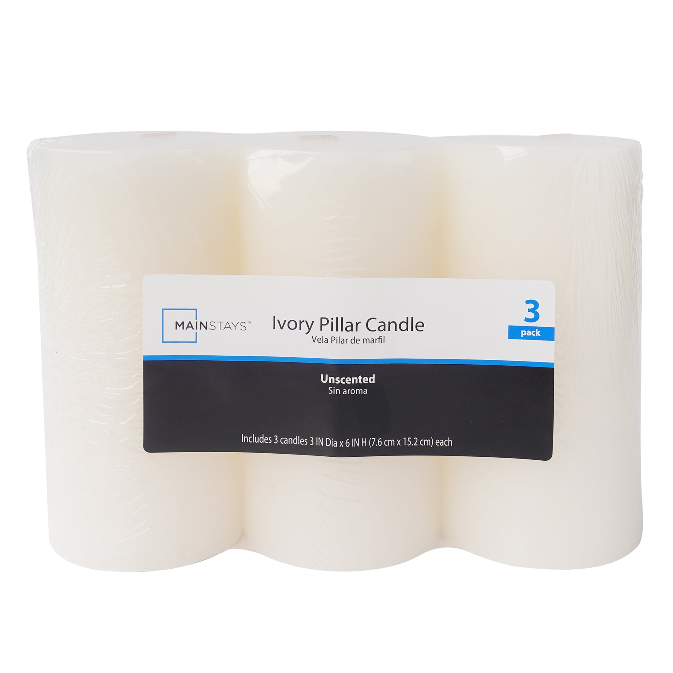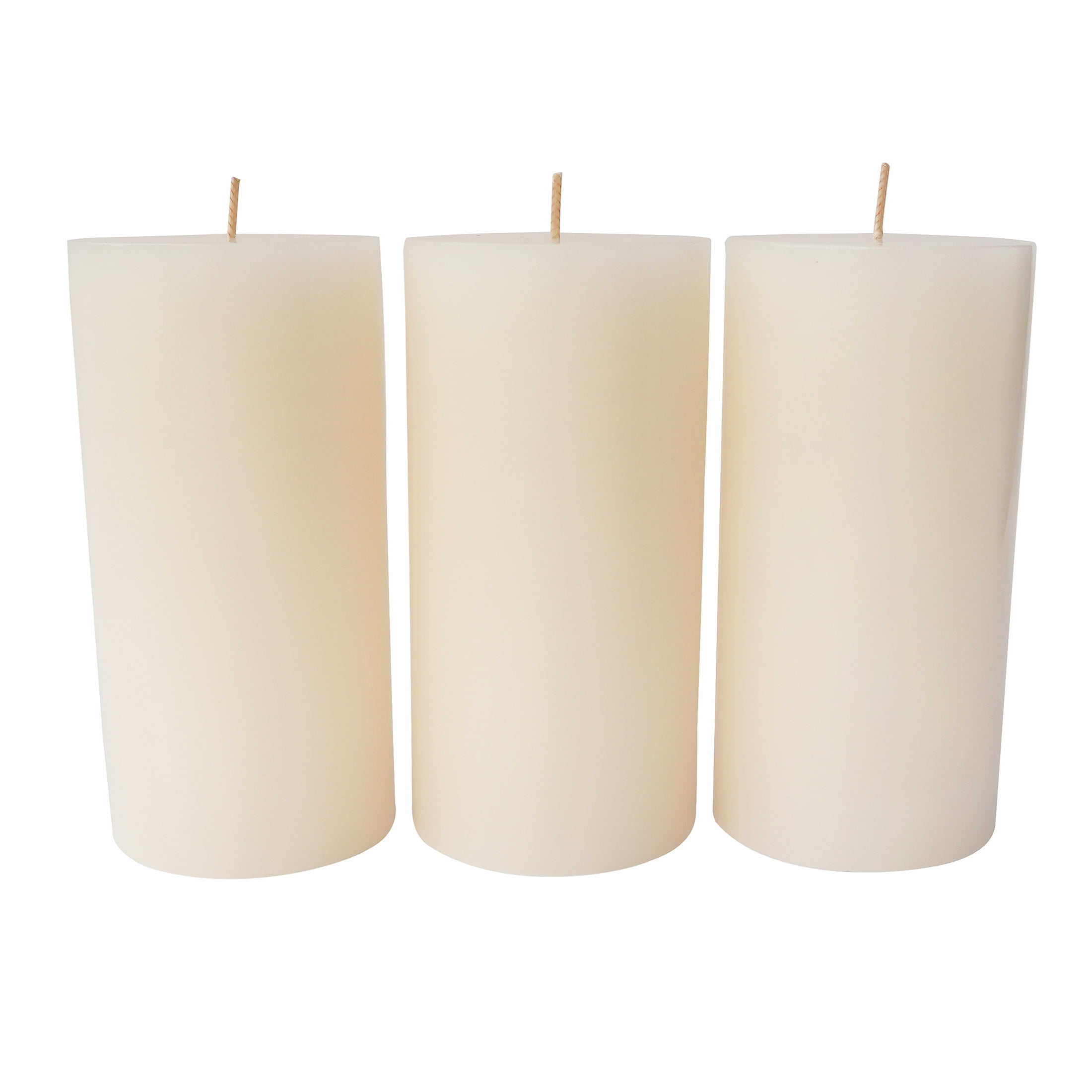 Pack of Three: Includes three unscented ivory pillar candles.