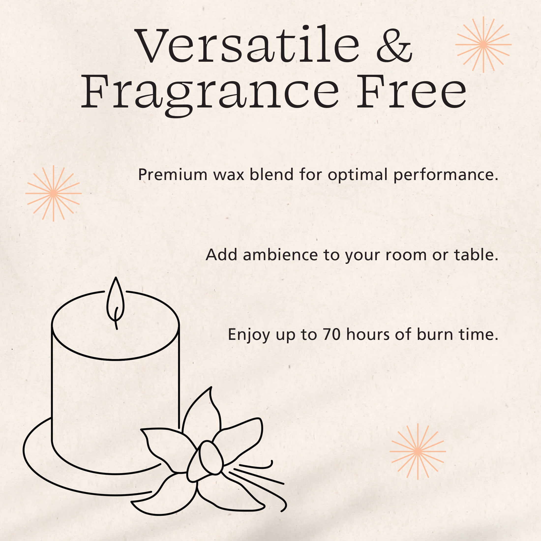 Long Burn Time: Lead-free wick burns for up to 70 hours.