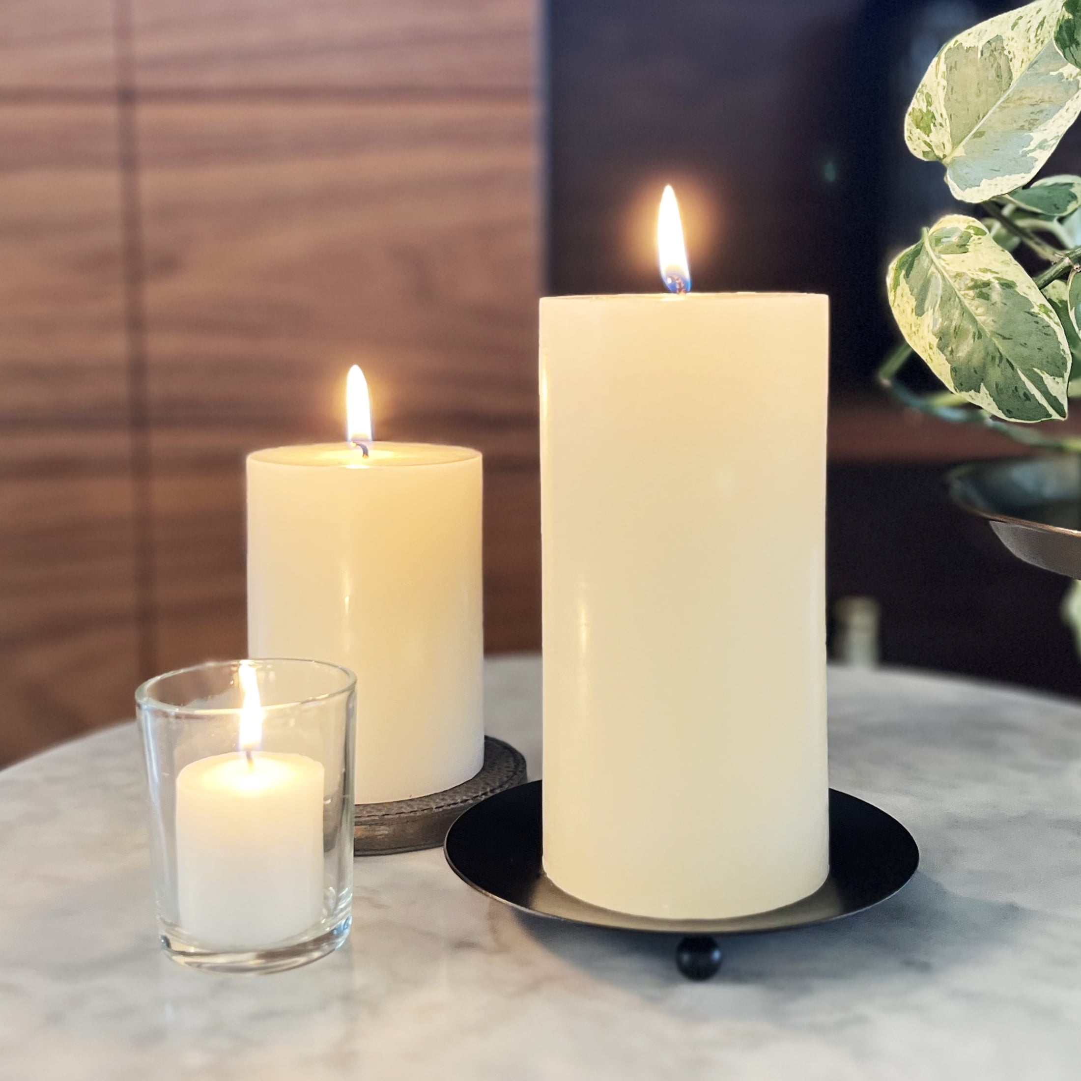 • Unscented Ivory: Unscented ivory pillar candle perfect for any occasion