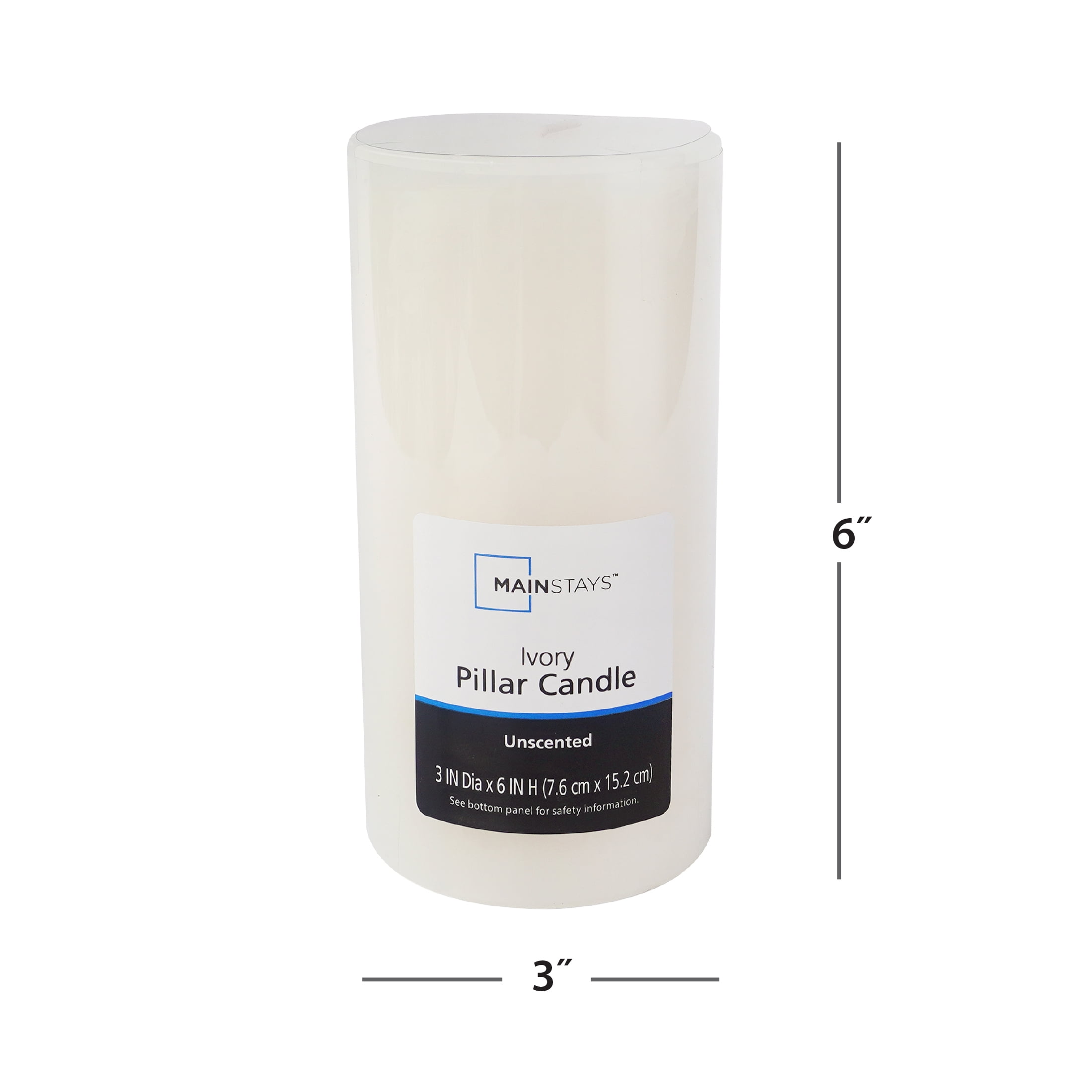 Mainstays Single Wick 3″ x 6″ Pillar Candle, Unscented, Ivory