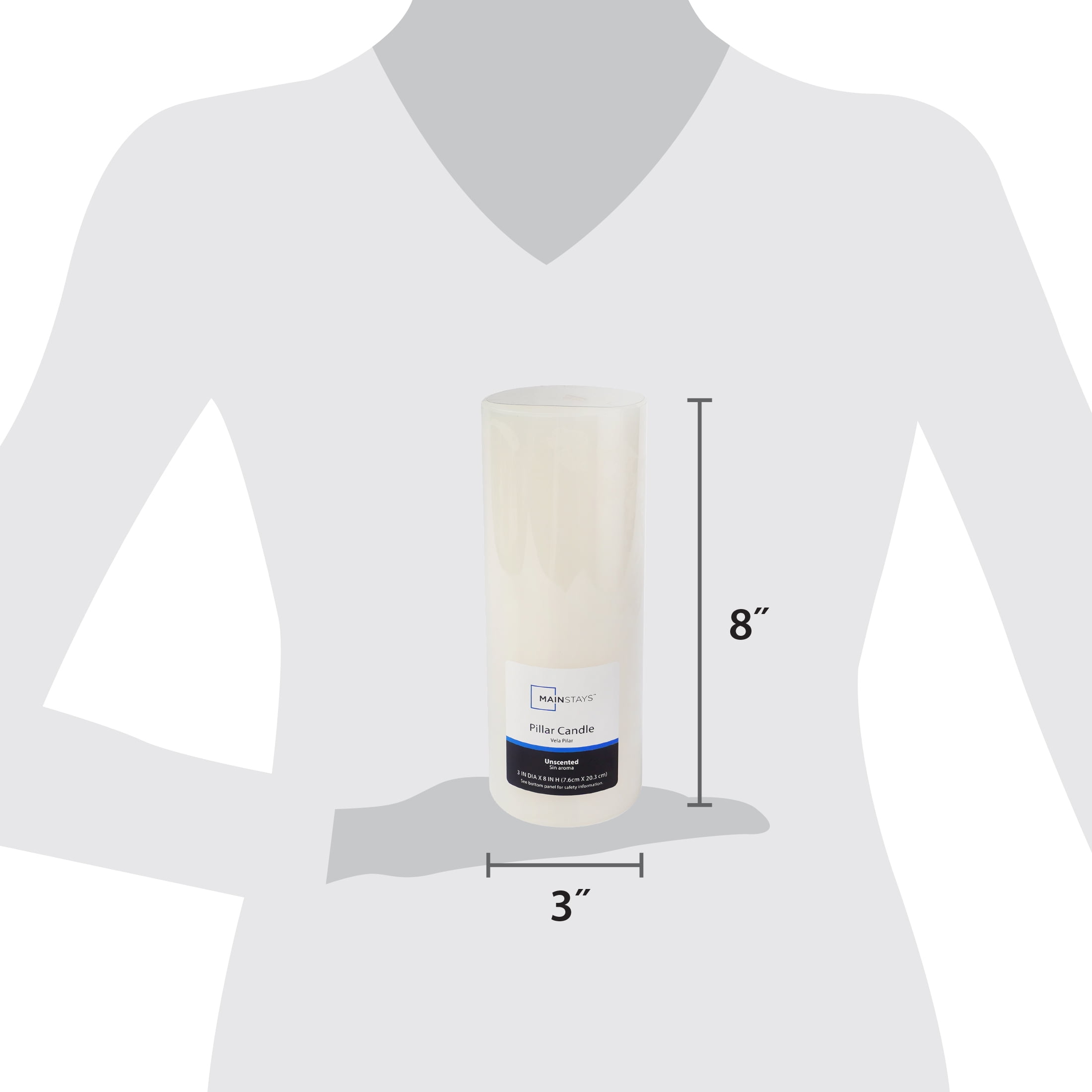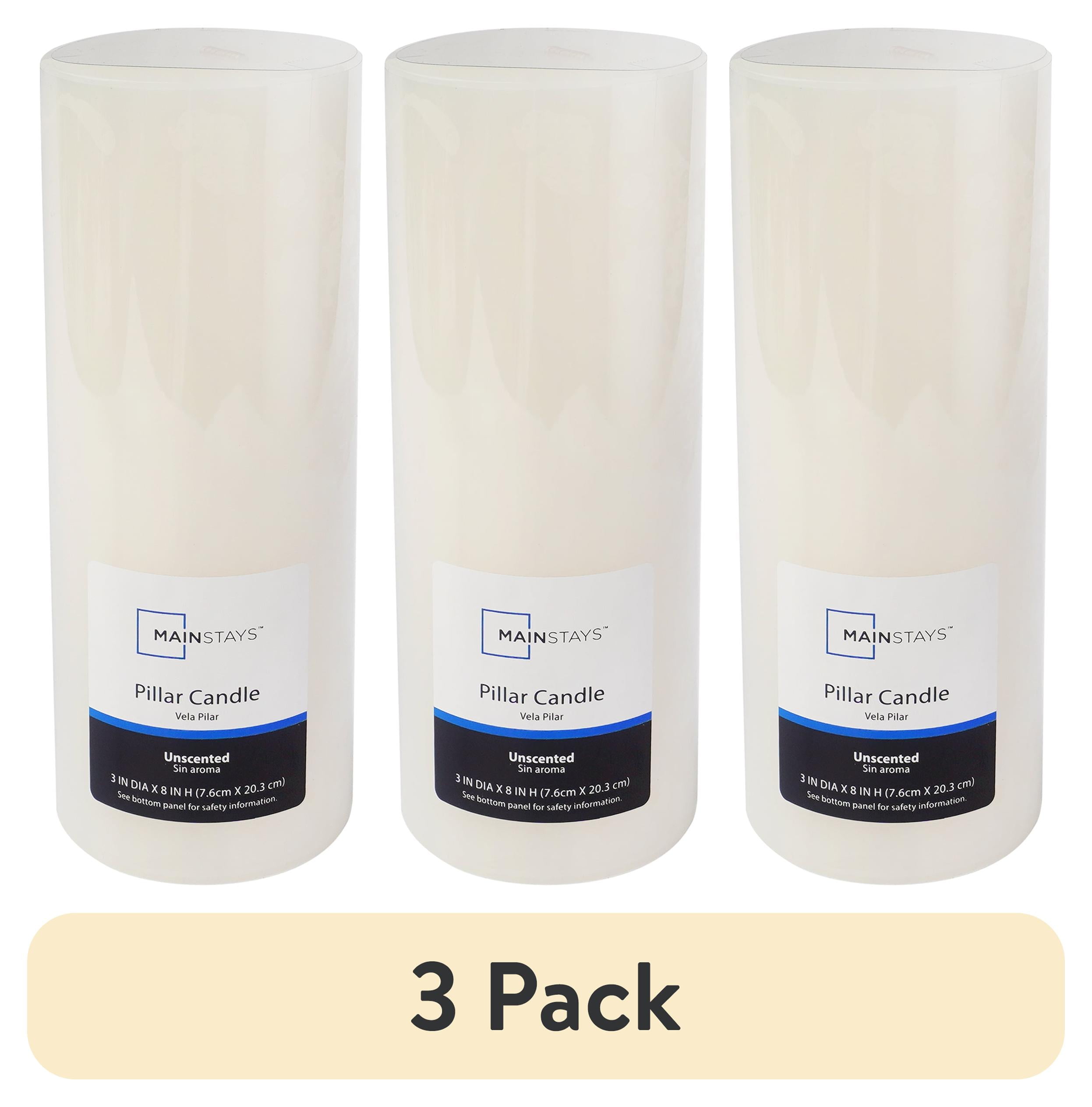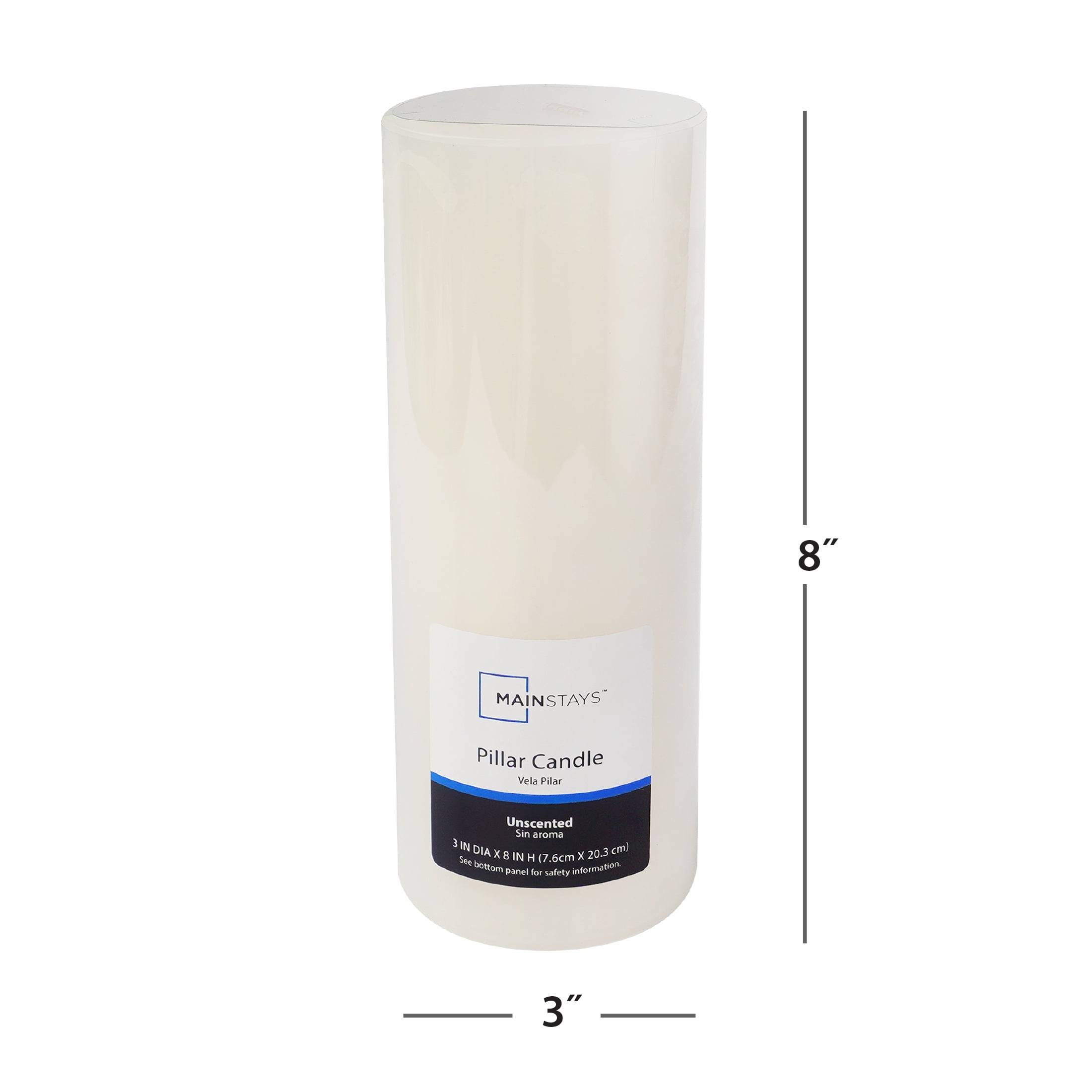 The Mainstays Unscented Pillar Candle offers a warm, ambient glow for any occasion. This ivory candle is perfect for everyday use, power outages, weddings, parties, and more. Made with a high-quality wax that ensures a clean and consistent burn, this candle is a versatile addition to your home. Pair it with other Mainstays unscented candles like filled votives, tapers, and different pillar sizes for a beautiful display. Always burn the candle within sight and place it on a heat-resistant holder. Trim the wick to 1/4 inch before each use, and avoid burning for more than 4 hours at a time. Add classic elegance to your home decor with the Mainstays Unscented Pillar Candle.