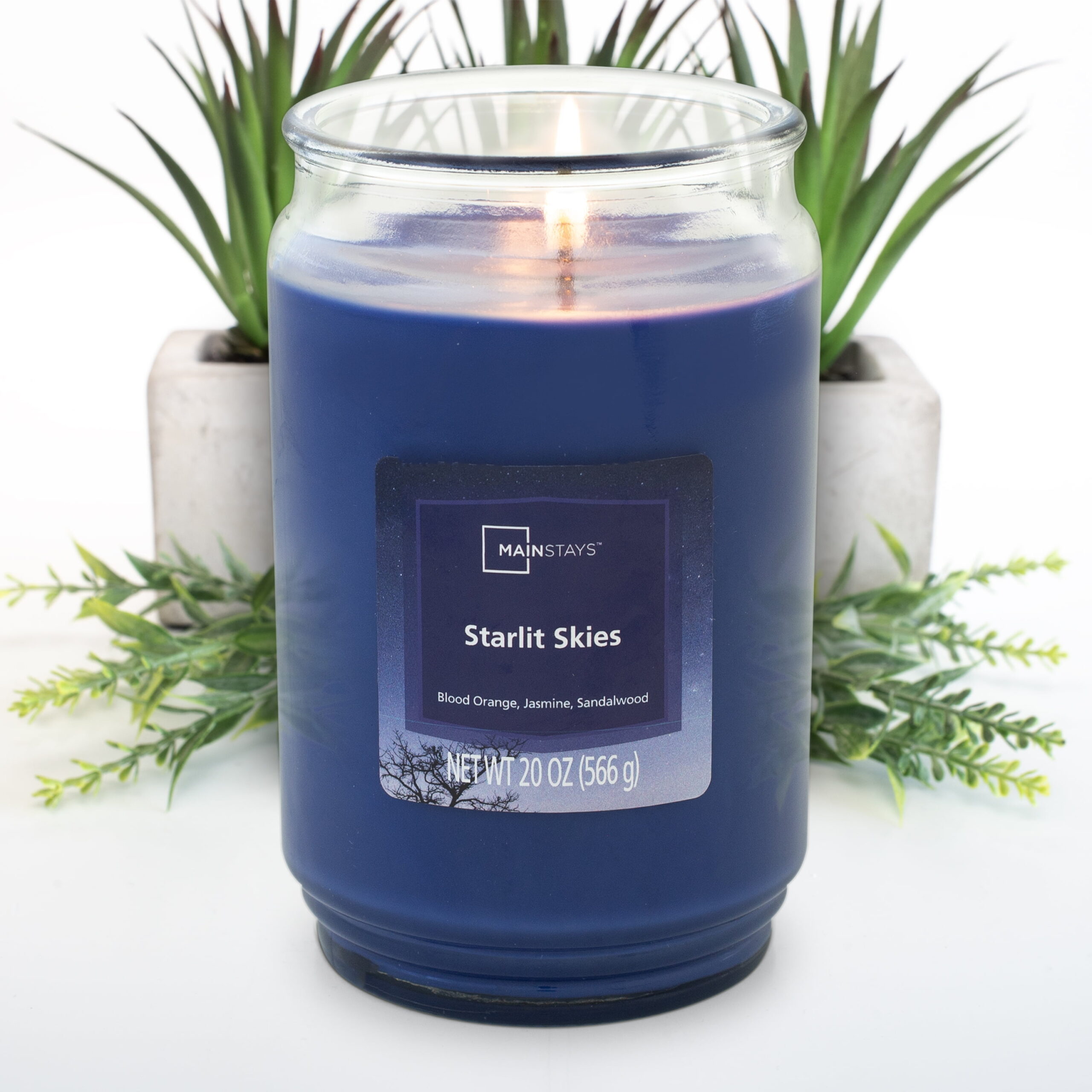Mainstays 20 oz Starlit Skies scented candles offer a captivating and enchanting olfactory experience that transports you to a serene night under a canopy of twinkling stars. These candles are thoughtfully crafted, featuring prominent notes of blood orange, jasmine, and sandalwood that blend harmoniously to create a celestial and dreamy fragrance.