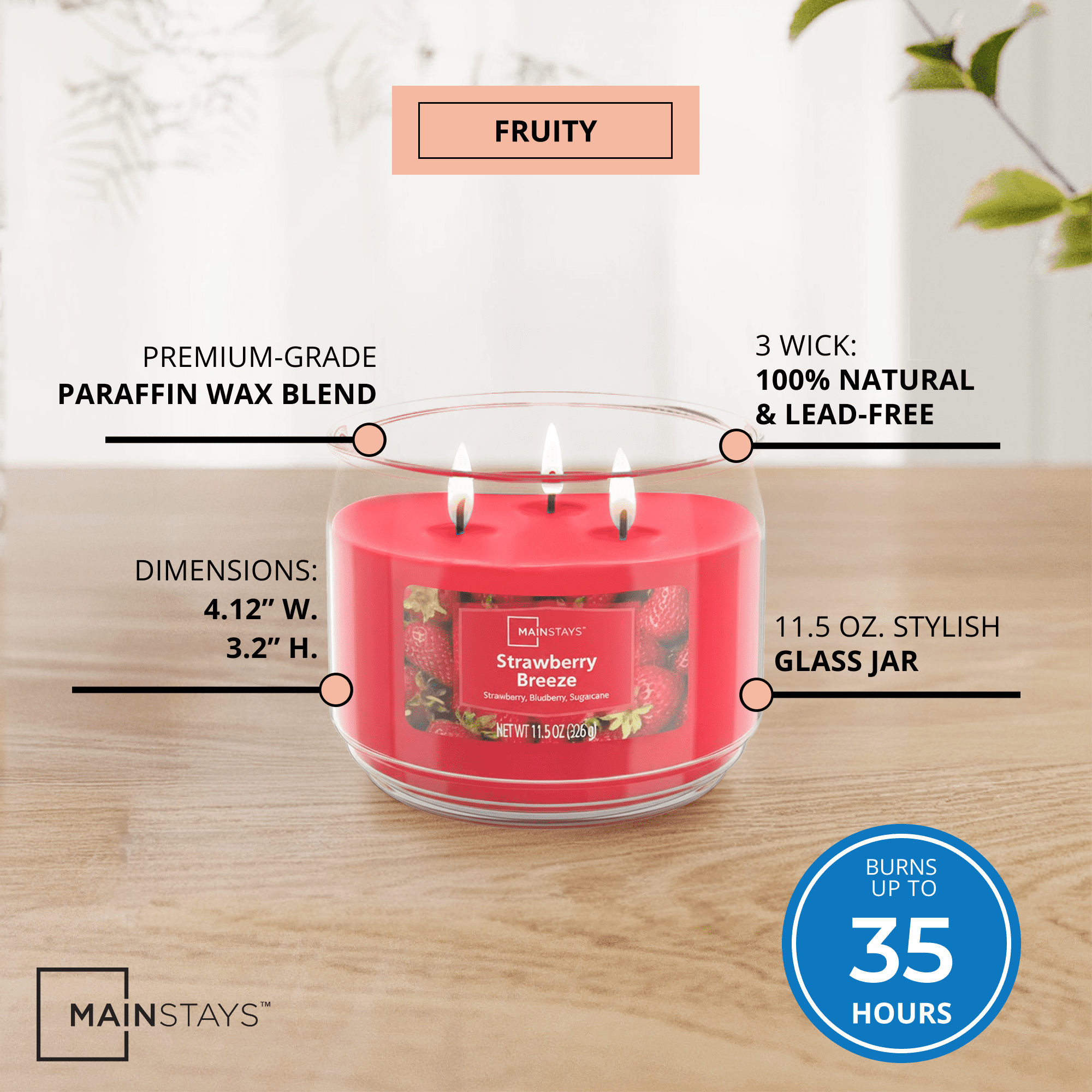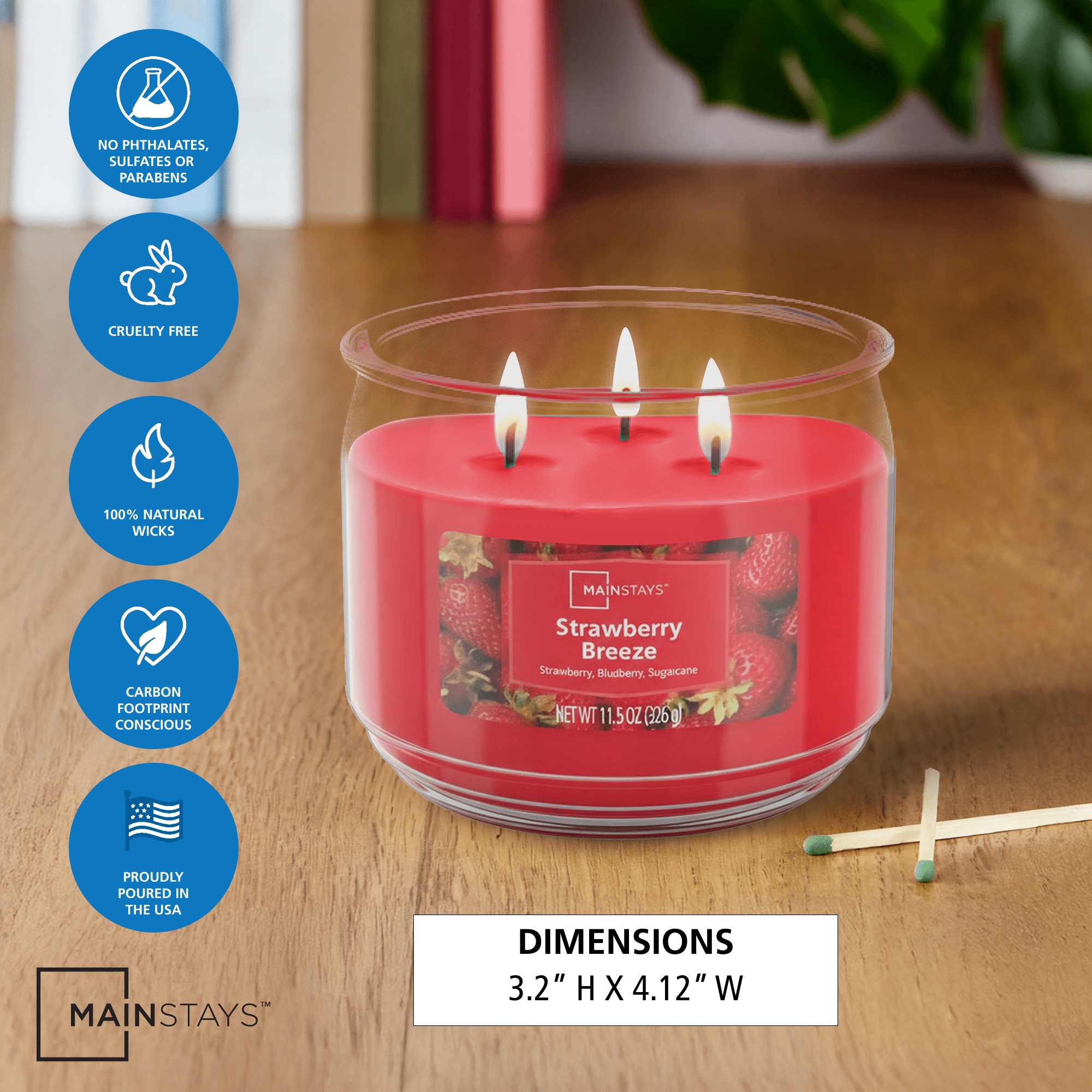 Mainstays Strawberry Scented 3-Wick Glass Jar Candle, 11.5 oz