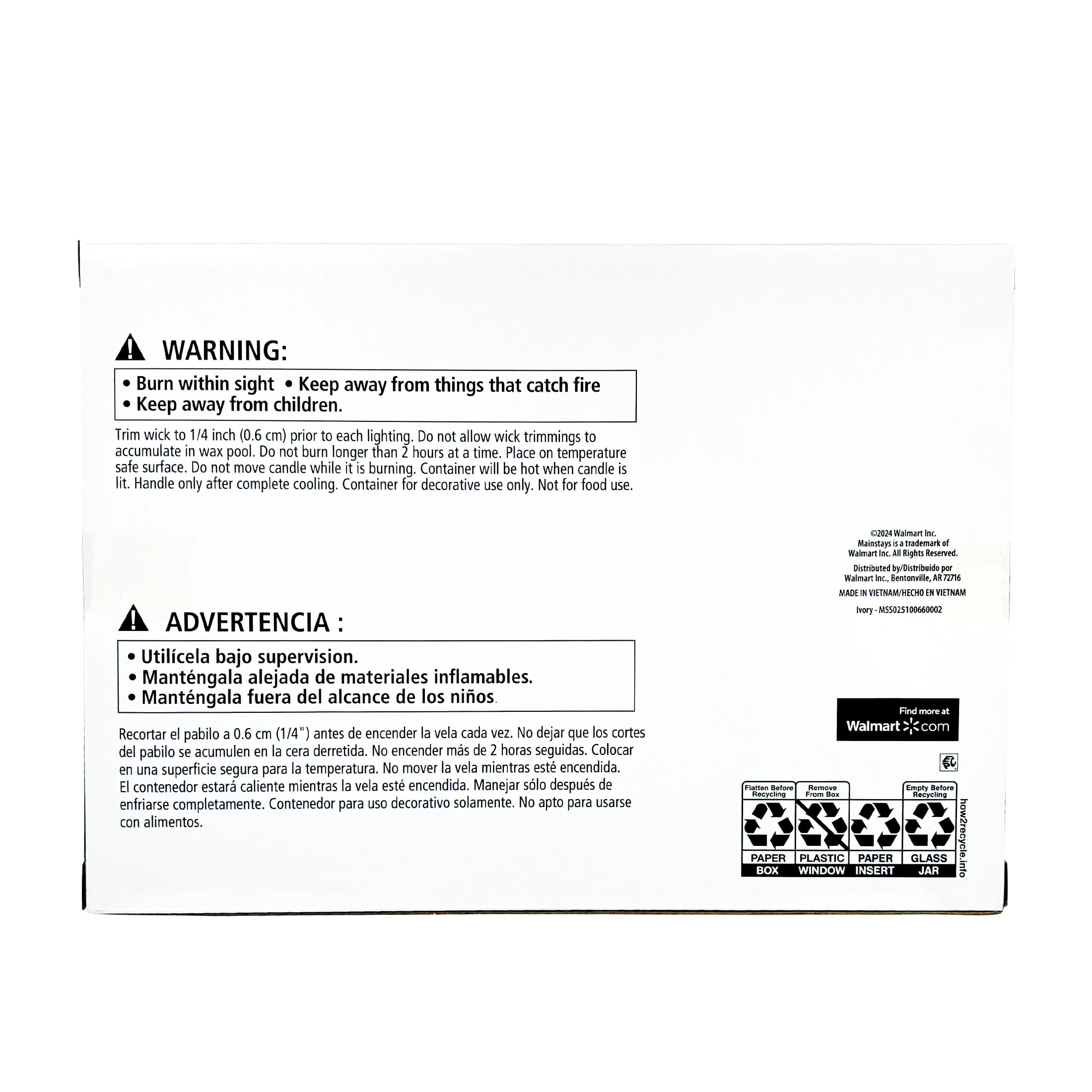 Usage Instructions: Trim wick to 1/4 inch before lighting; avoid burning for more than 4 hours at a time.