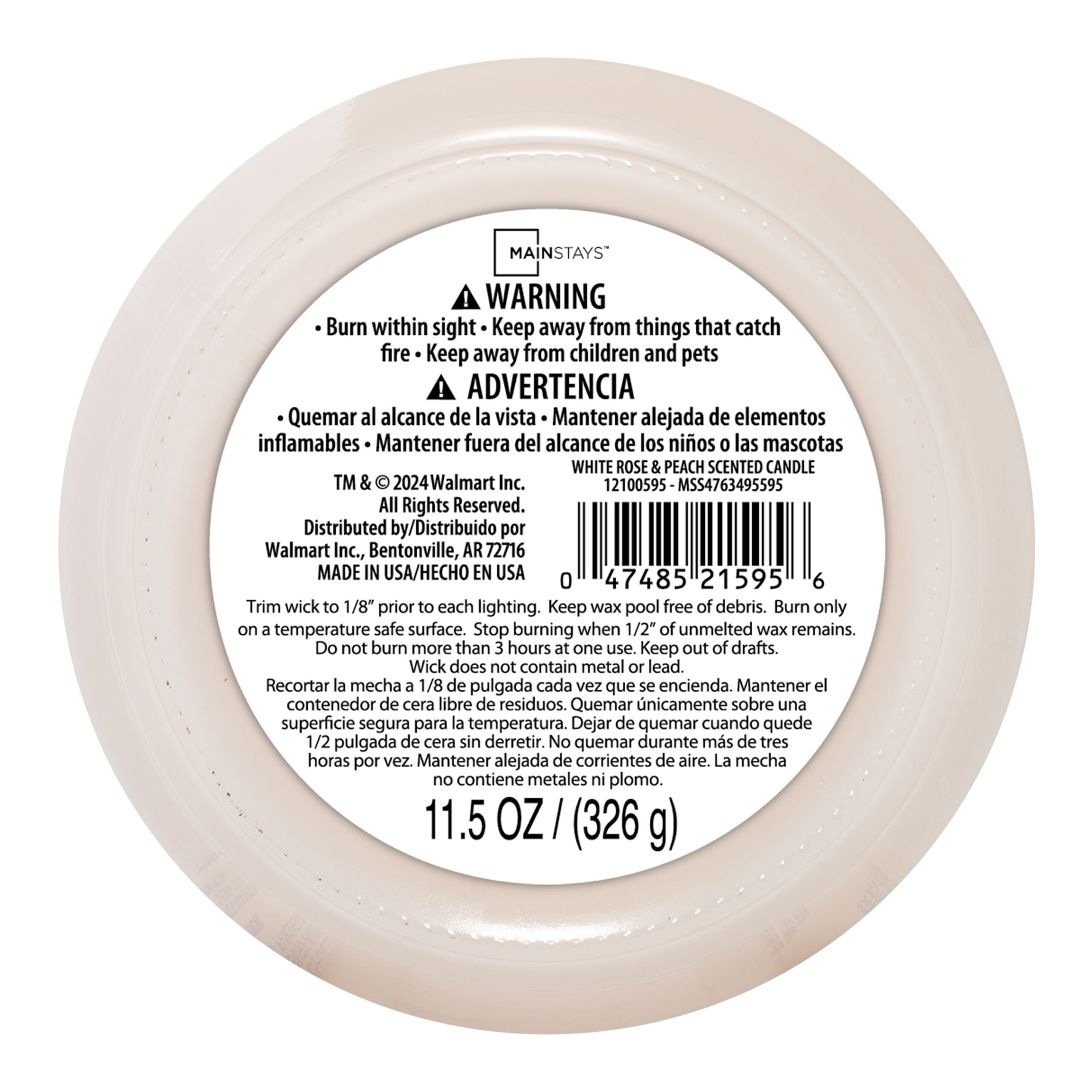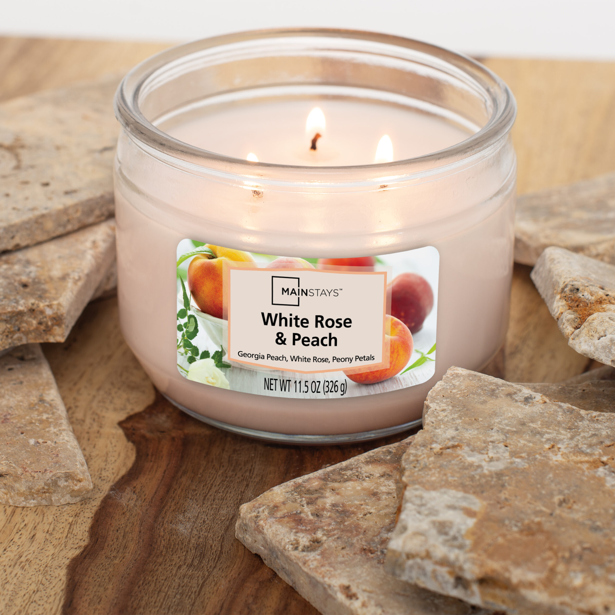 Mainstays White Rose & Peach 3 Wick Candle, 11.5 oz
